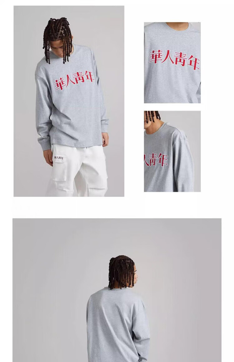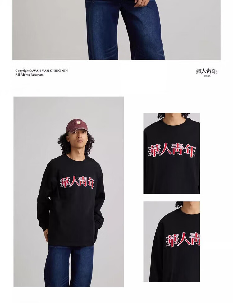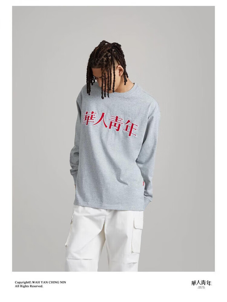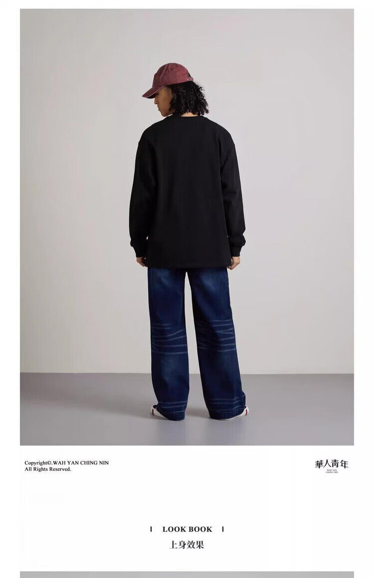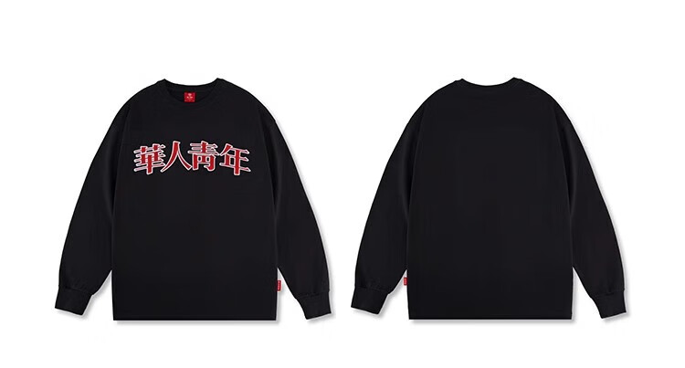 華人青年经典贴布绣基础长袖T恤打底衫潮牌纯棉春秋男女情侣上衣男女同款 黑色 【贴布刺绣】 2XL 建议【160-190斤】