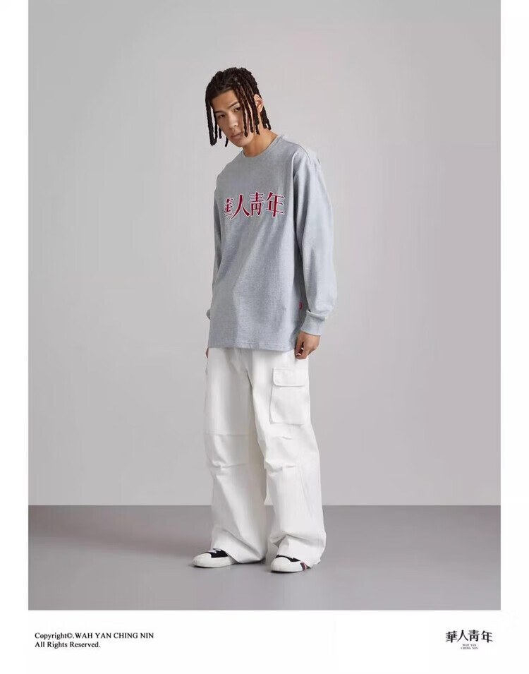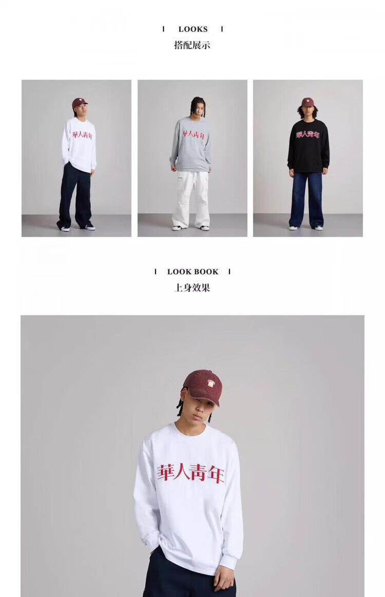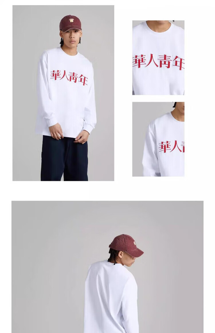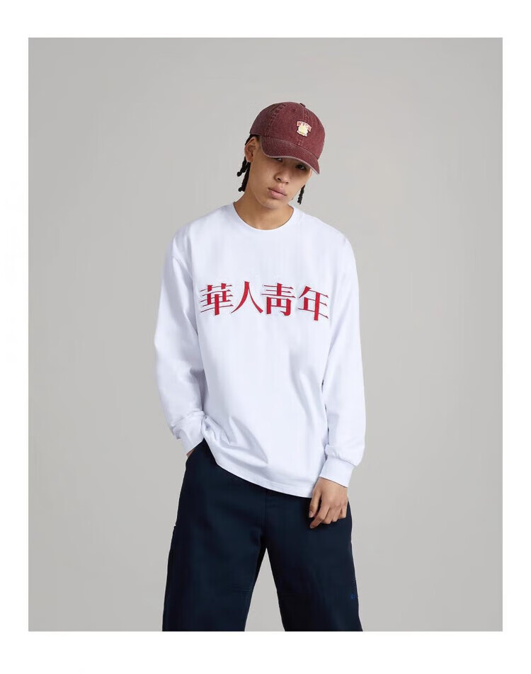 華人青年经典贴布绣基础长袖T恤打底衫潮牌纯棉春秋男女情侣上衣男女同款 黑色 【贴布刺绣】 2XL 建议【160-190斤】