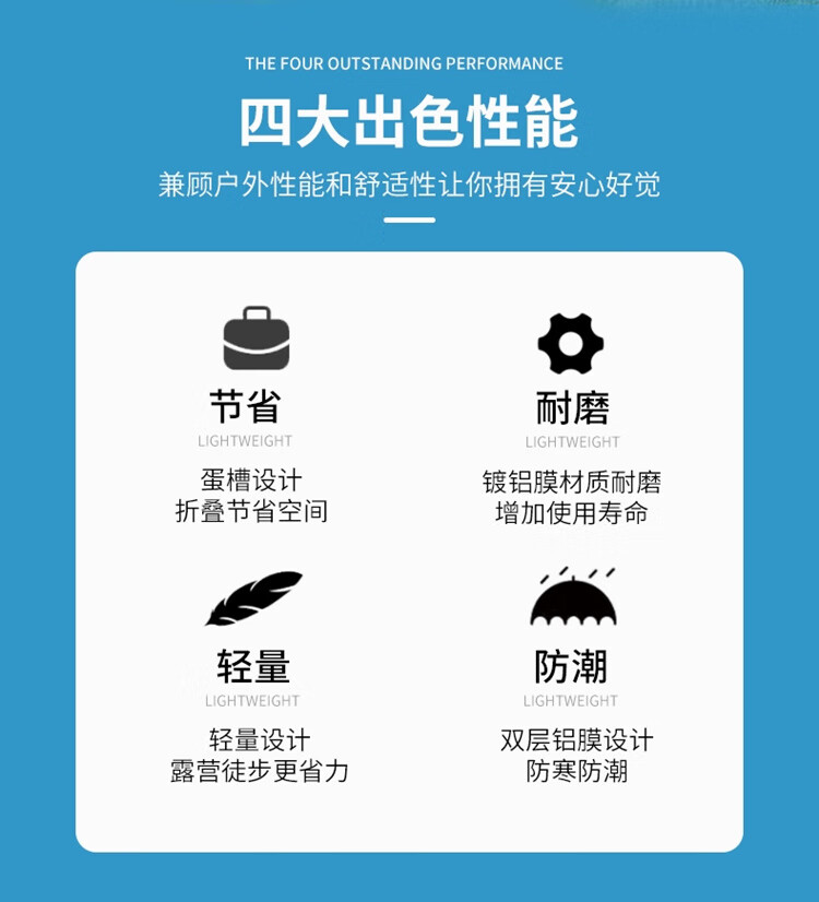 OIMG蛋巢垫 xpe午睡折叠垫加厚铝膜野营蛋槽睡垫便携隔潮单人野餐摩旅 铝膜+颜色随机 185*60*1.7