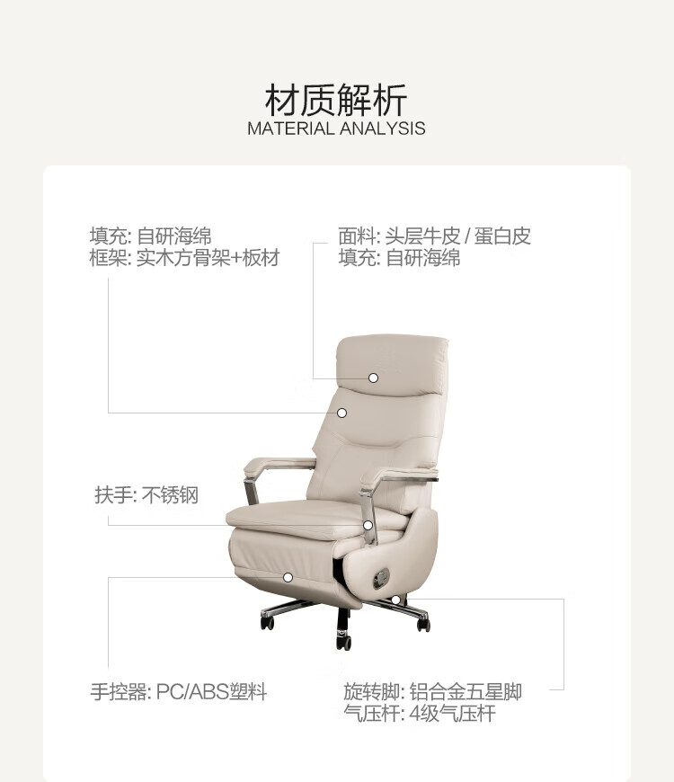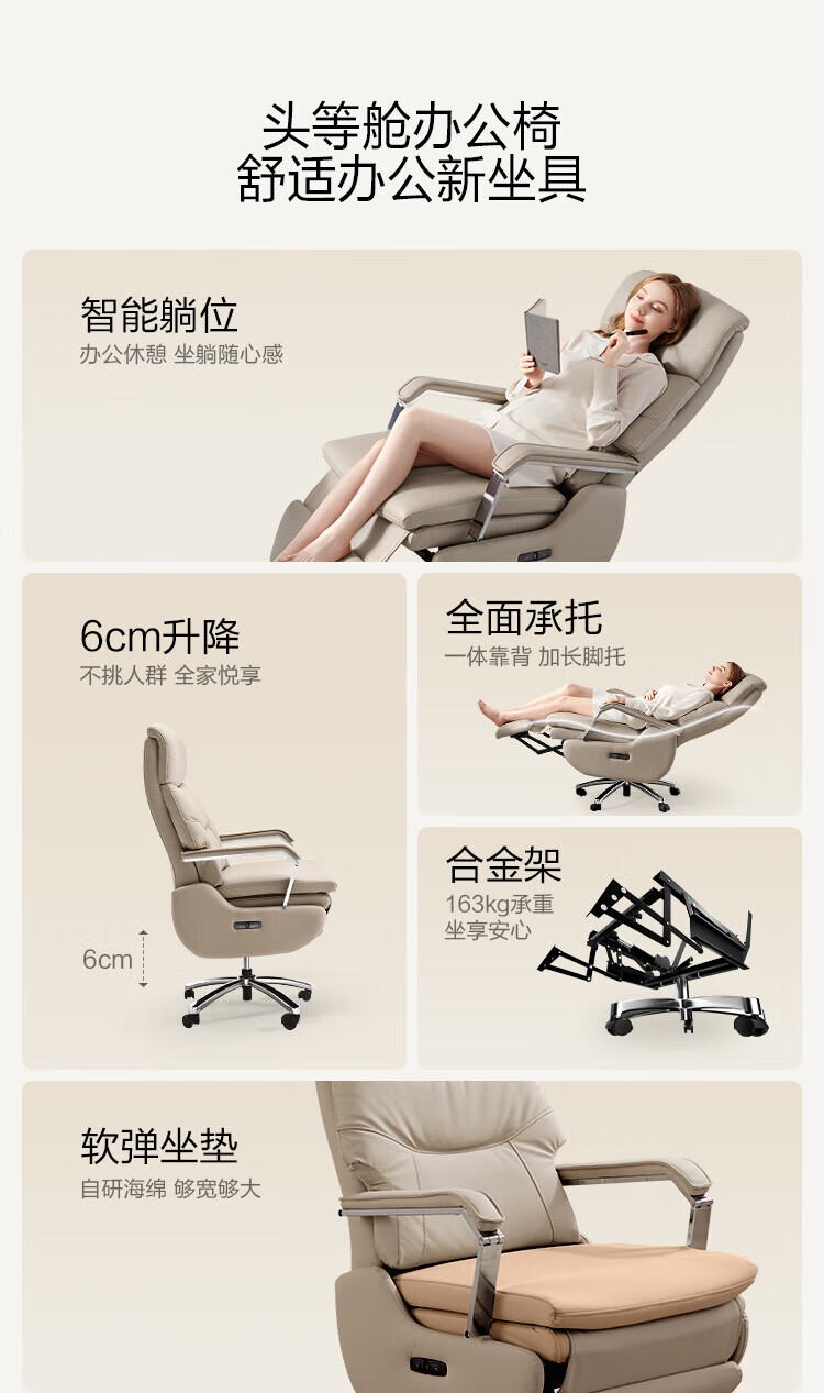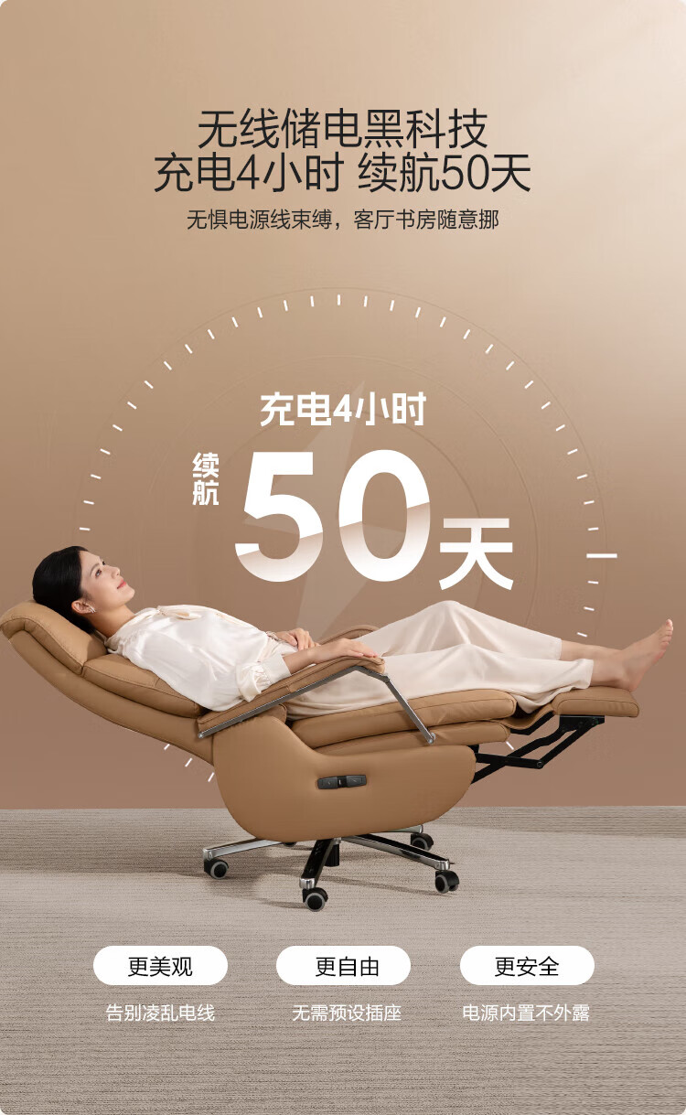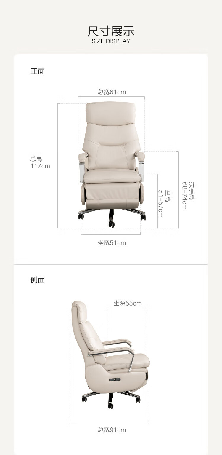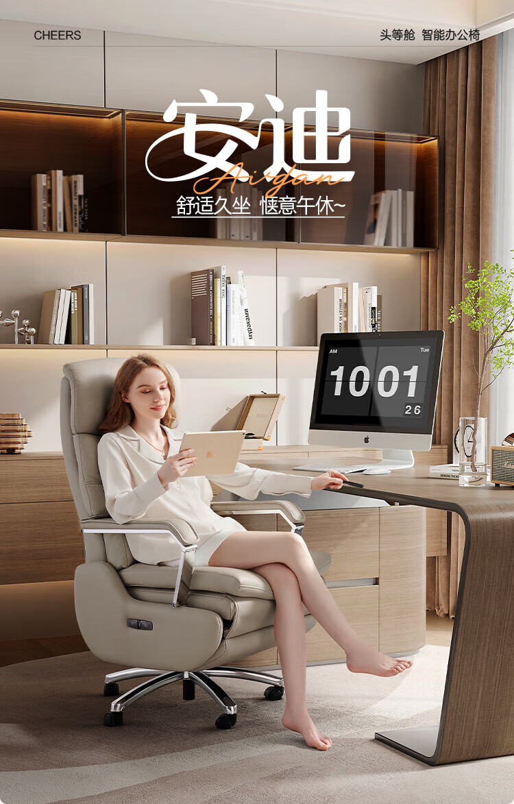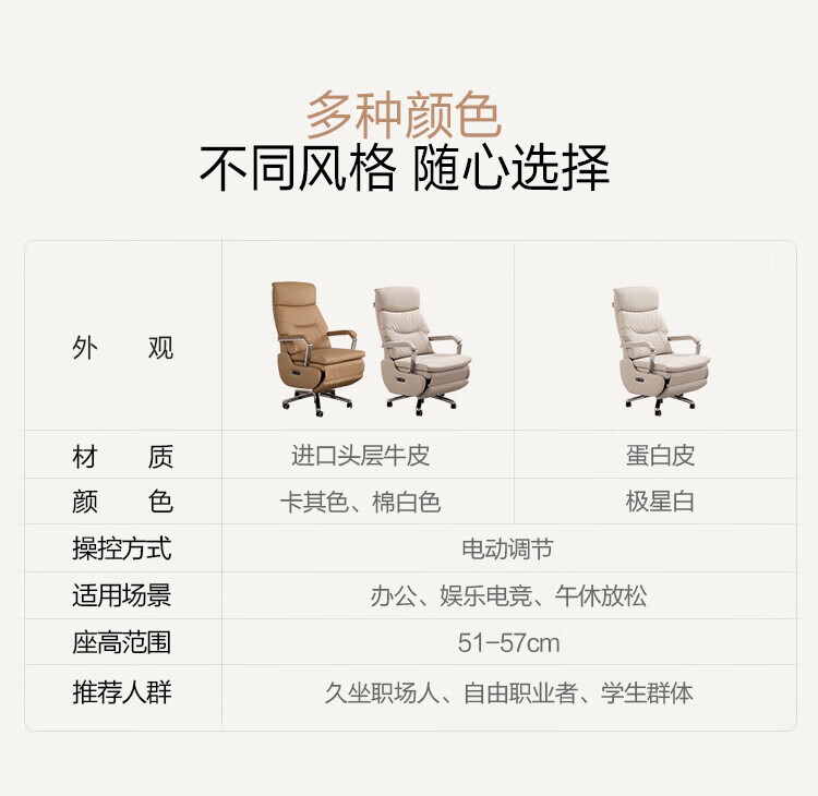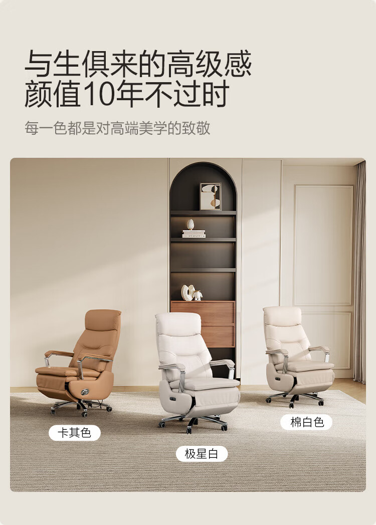 芝华仕(CHEERS)头等舱办公椅智能电脑椅电竞椅老板椅电动人体工学椅储电K1223 极星白-电动躺+手动转-蛋白皮 优先发货(详询客服