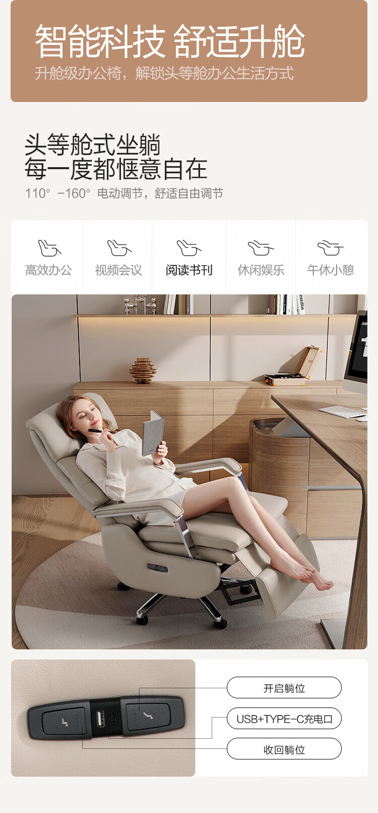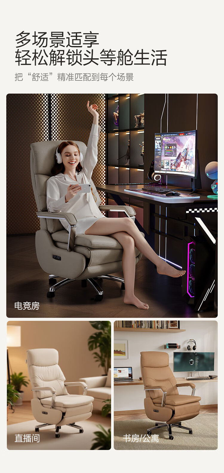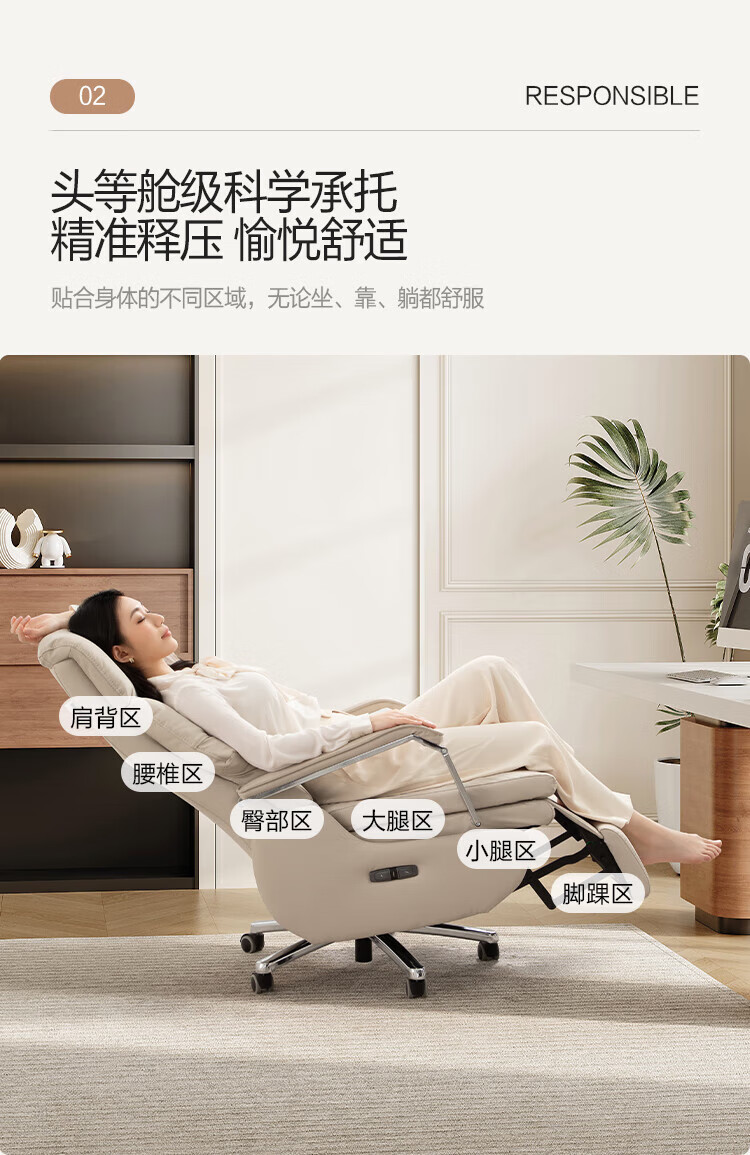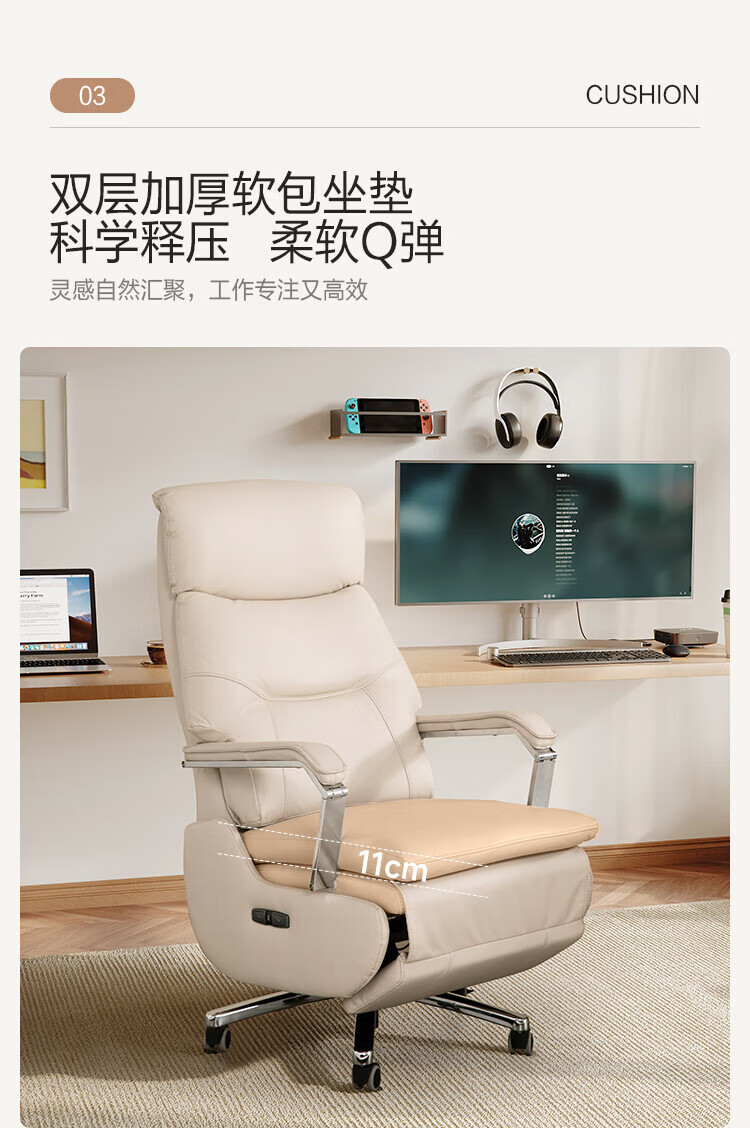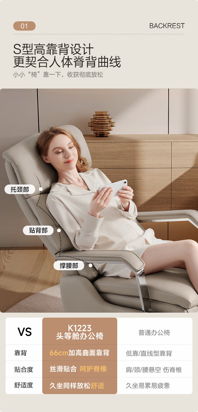 芝华仕(CHEERS)头等舱办公椅智能电脑椅电竞椅老板椅电动人体工学椅储电K1223 极星白-电动躺+手动转-蛋白皮 优先发货(详询客服