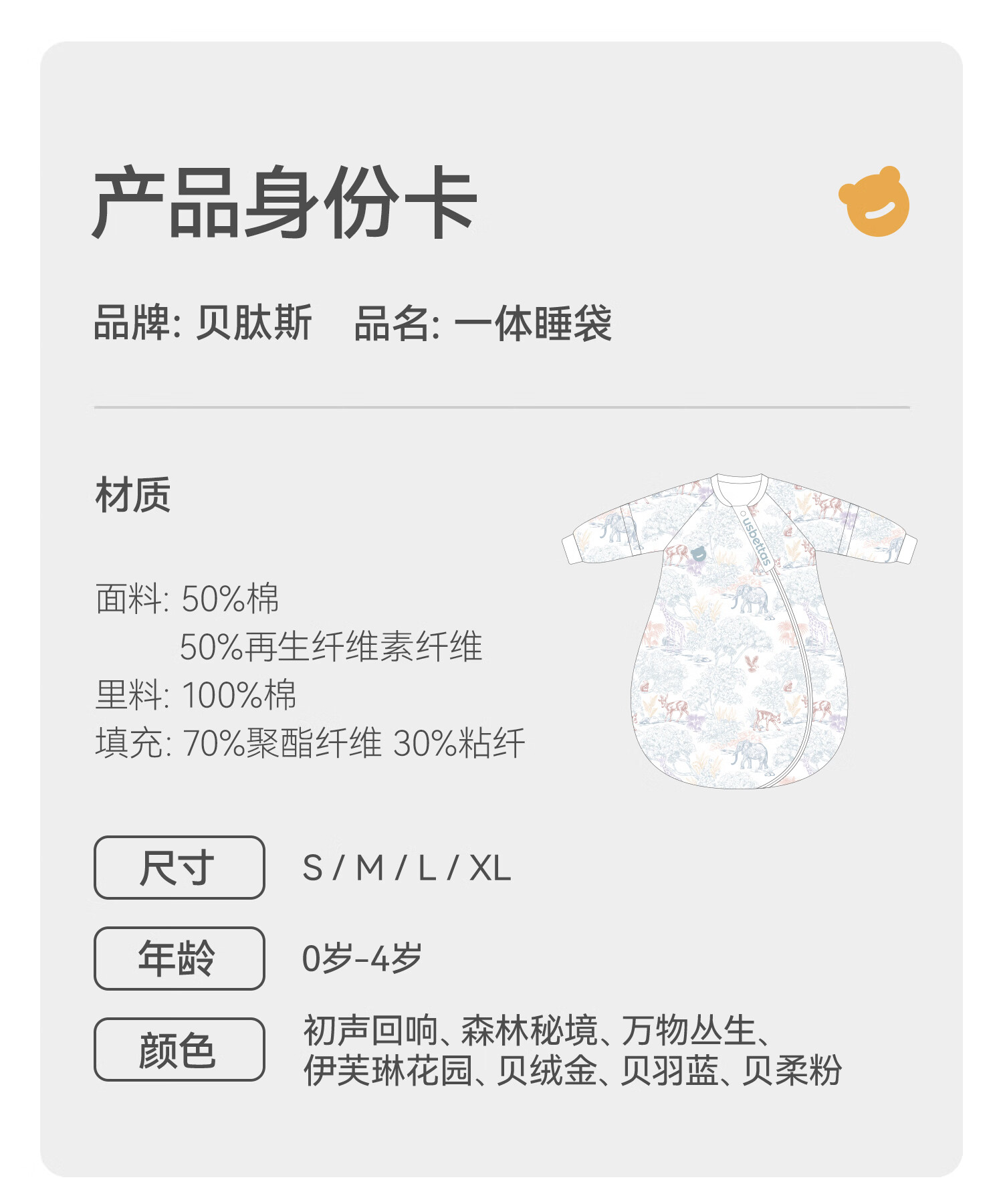 贝肽斯婴儿睡袋秋冬季胎脂皮恒温1-3岁儿童保暖一体防踢被子四季防着凉 万物丛生【春秋轻厚 室温18-24℃】天竹x胎脂皮 M码【适合身高62-85cm】建议9月-2岁
