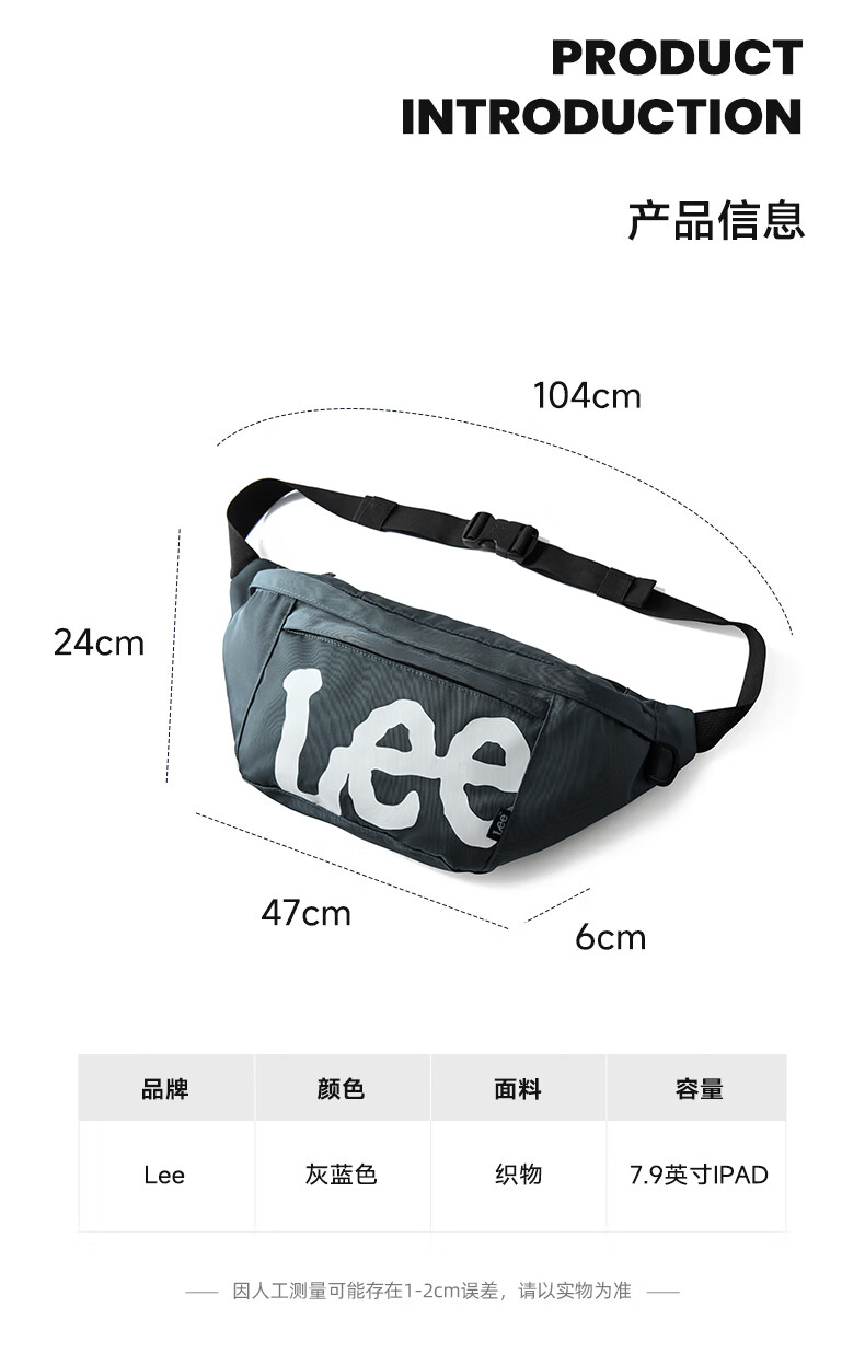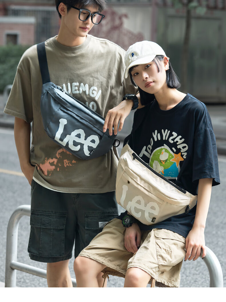 Lee潮牌单肩包男士斜挎包户外运动胸包骑行邮差包女简约学生斜背包