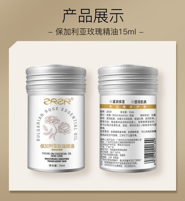 ZRZR保加利亚玫瑰精油15ml面部精油亮肤脸部护肤以油养肤保湿精华油 15ml【+15ml+调配瓶*2】