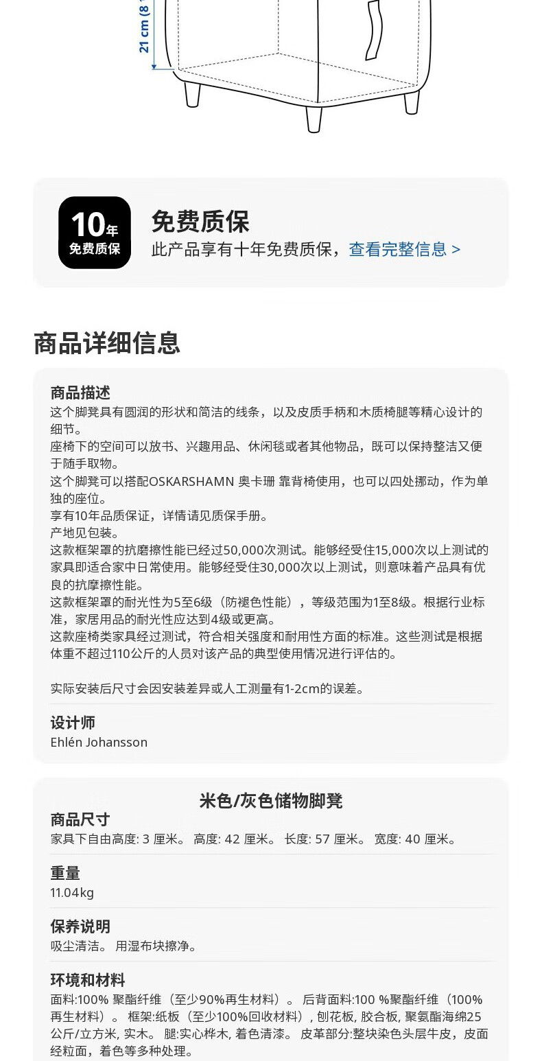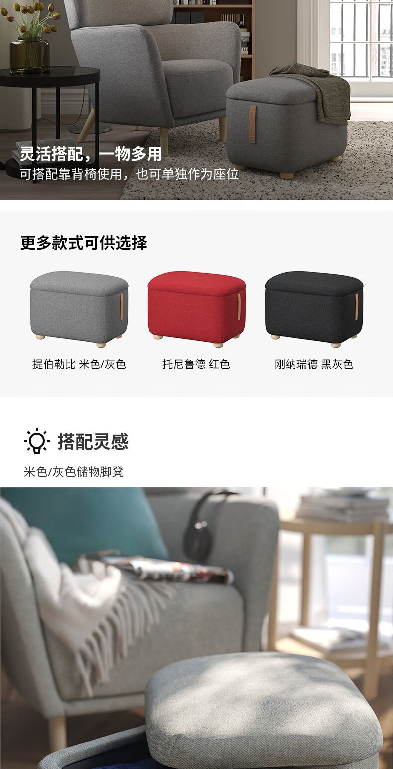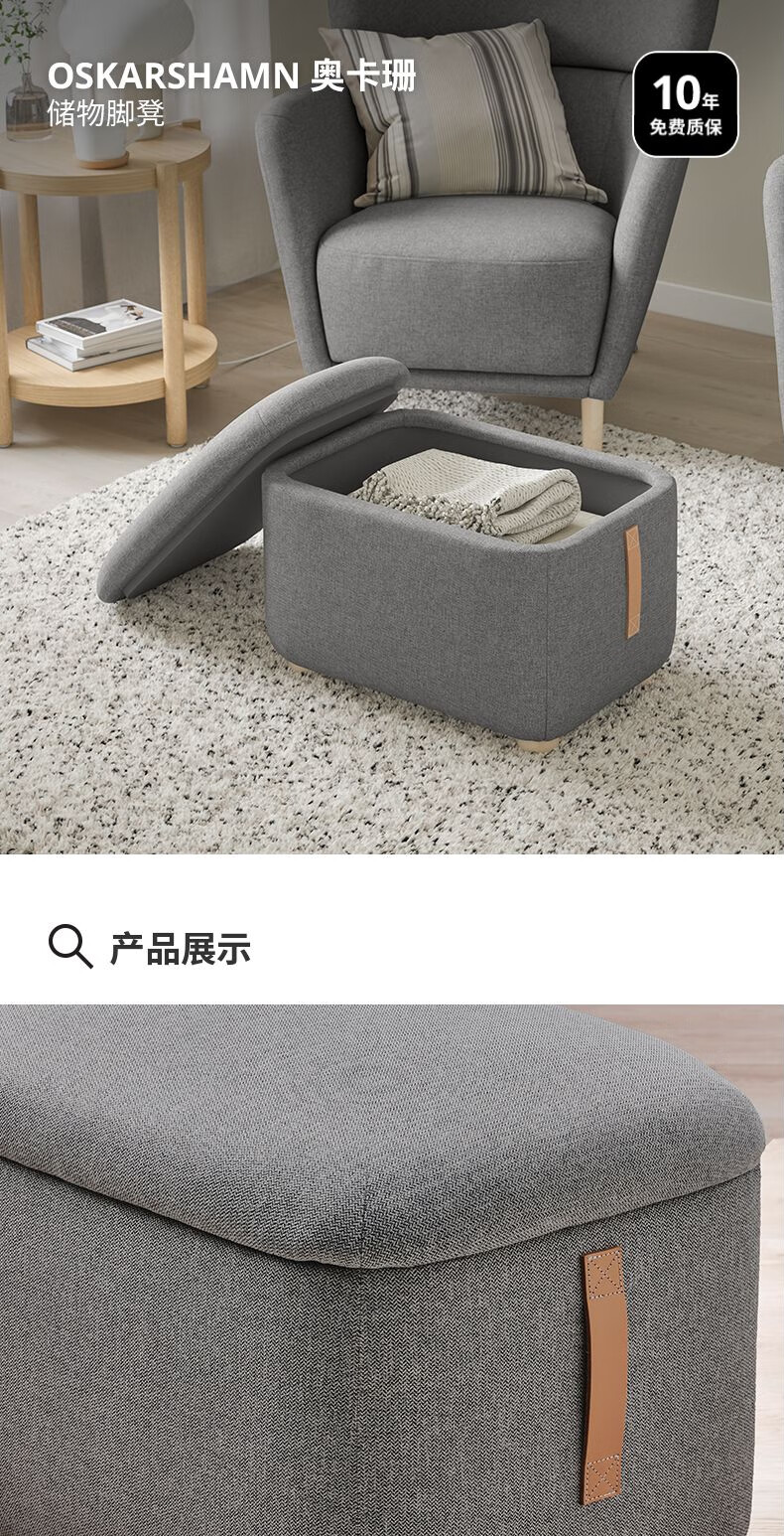 宜家(IKEA)OSKARSHAMN奥卡珊储物脚凳矮凳换鞋凳门厅家用 提伯勒比 米色灰色脚凳