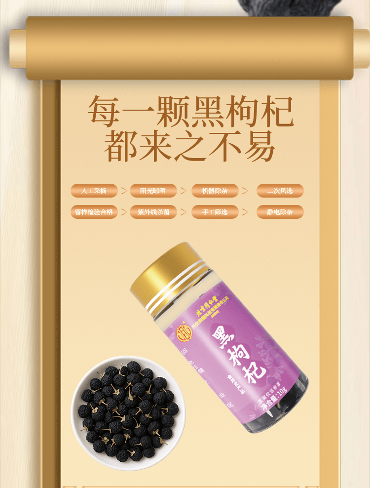 内廷上用北京同仁堂青海特级头茬免洗黑枸杞子单瓶送父母长辈滋补品
