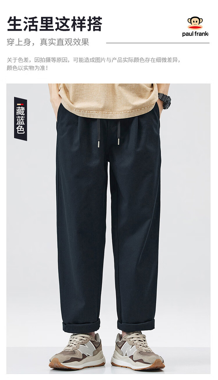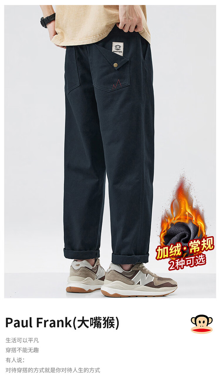 大嘴猴(paul frank)休闲裤男秋季美式裤子男士工装裤男裤宽松长裤 藏蓝色 XL
