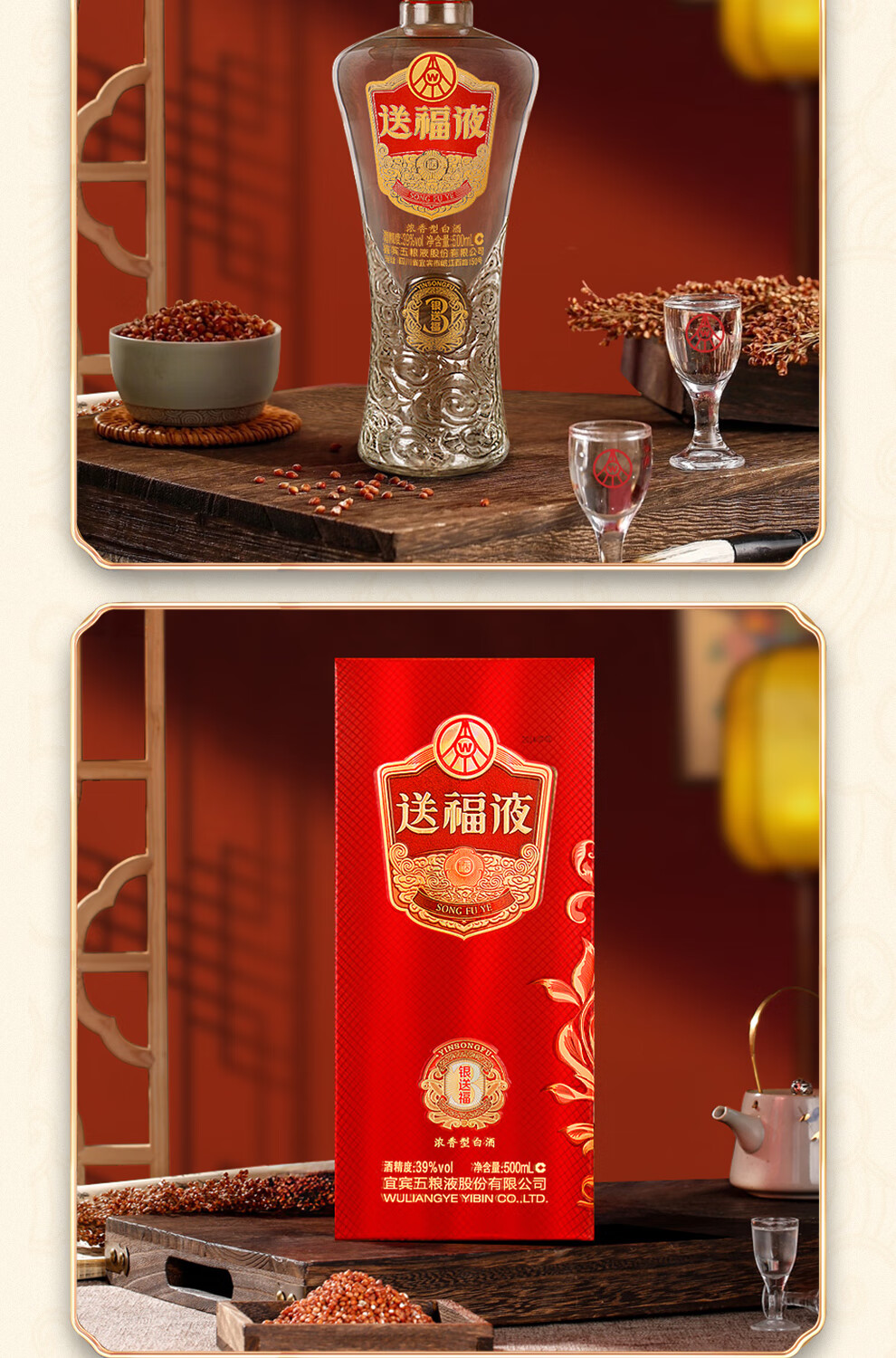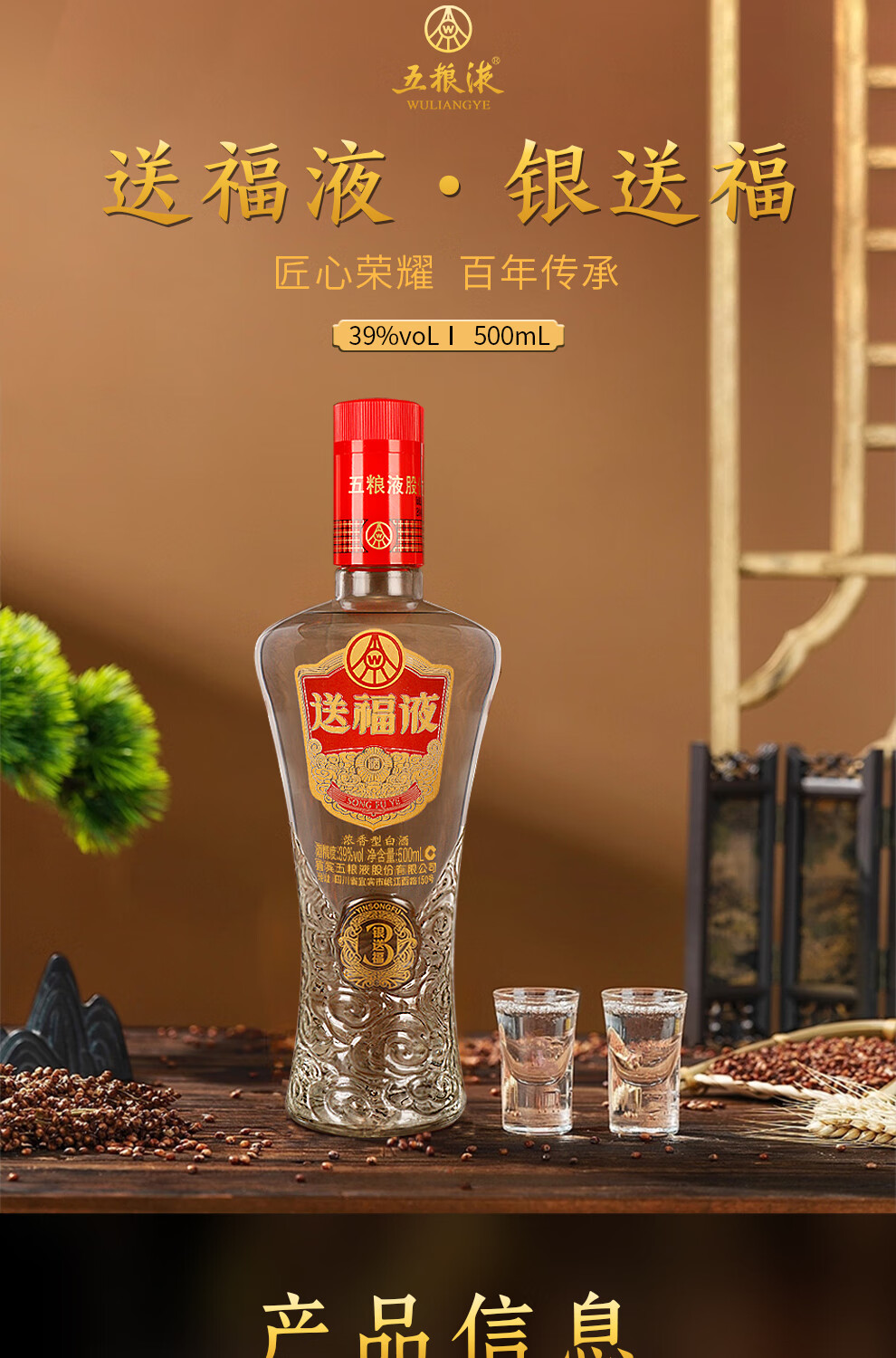 五粮液股份公司 【2014年生产】送福液银送福 纯酿粮食酒 39%vol 500mL 2瓶
