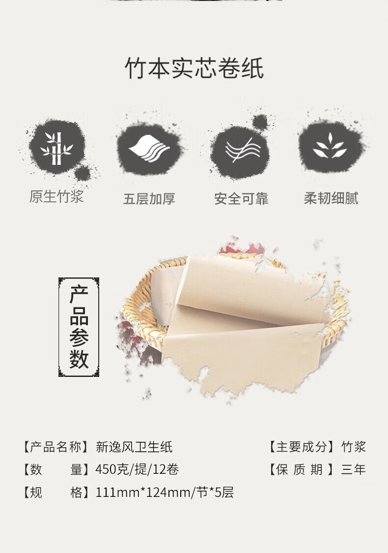 新逸风(XINYIFENG)卷纸家用多层加厚卫生纸竹浆本色无芯厕纸巾 6层 37g*36卷