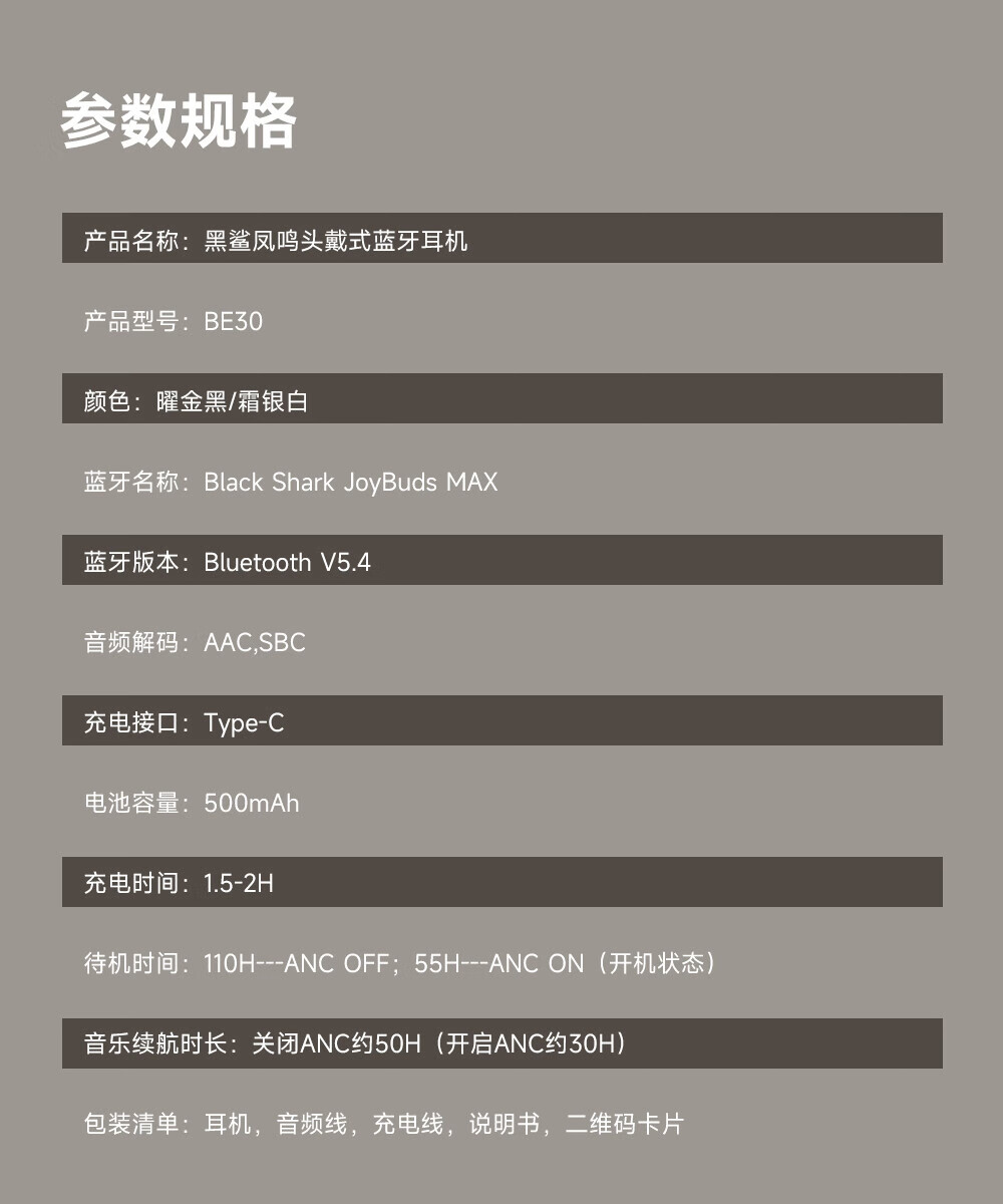 黑鲨头戴式蓝牙耳机白条免息【国补立减10%】游戏无线降噪高音质低延迟适用三角洲FPS吃鸡打瓦 黑金