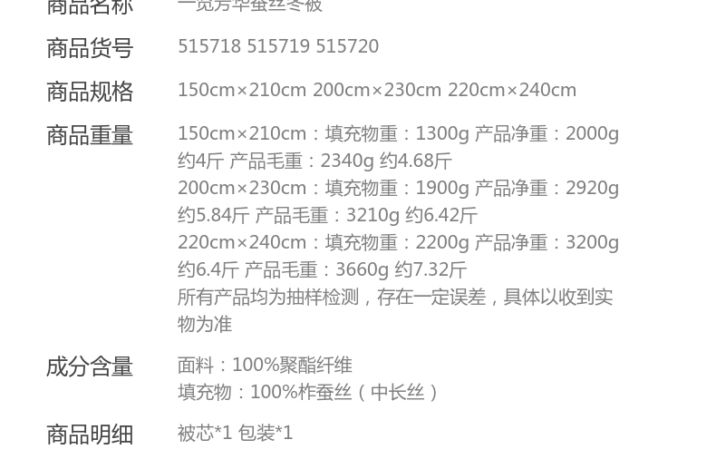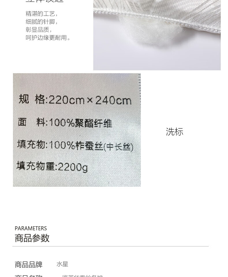 水星家纺蚕丝被100%蚕丝冬被子冬季加厚保暖被芯被褥约6.1斤200×230cm