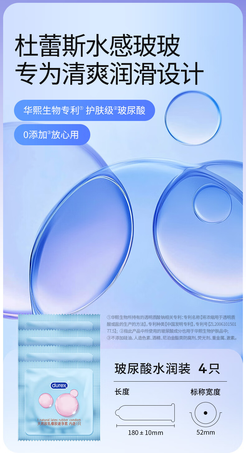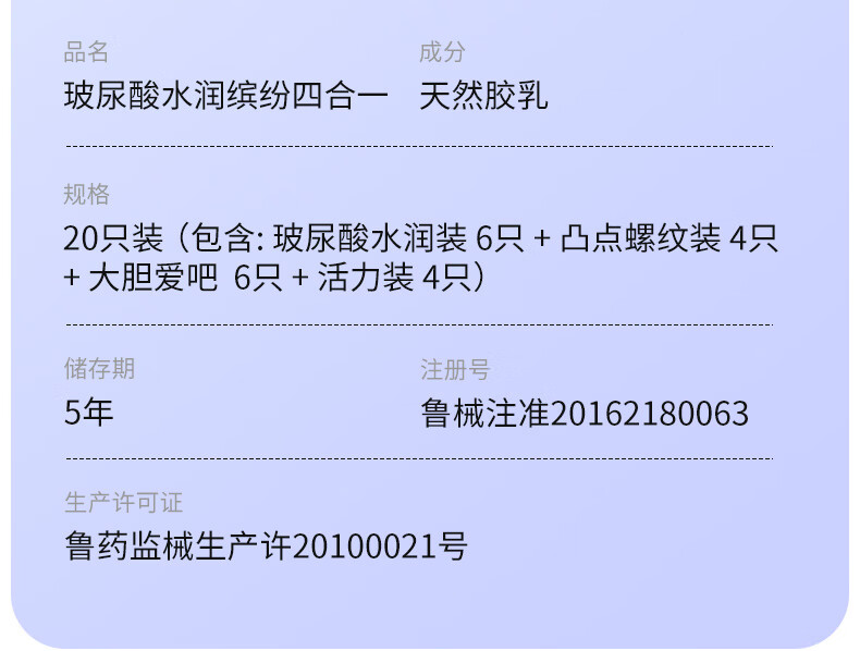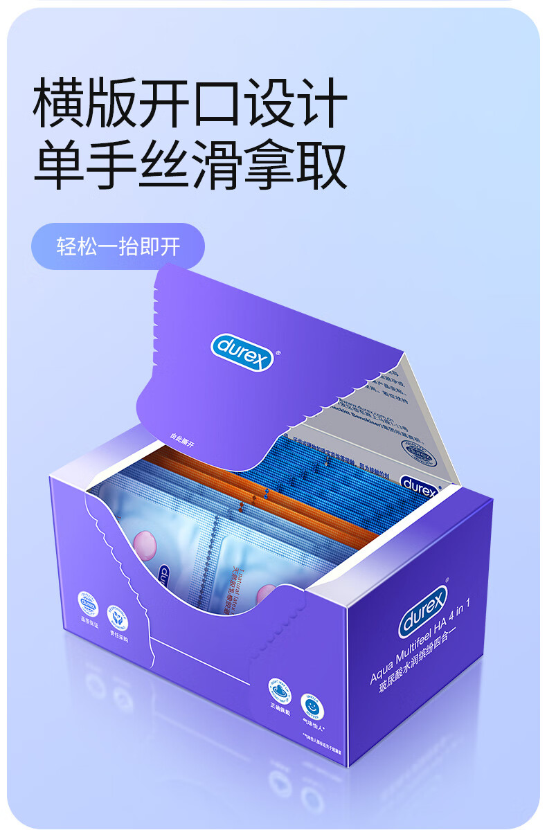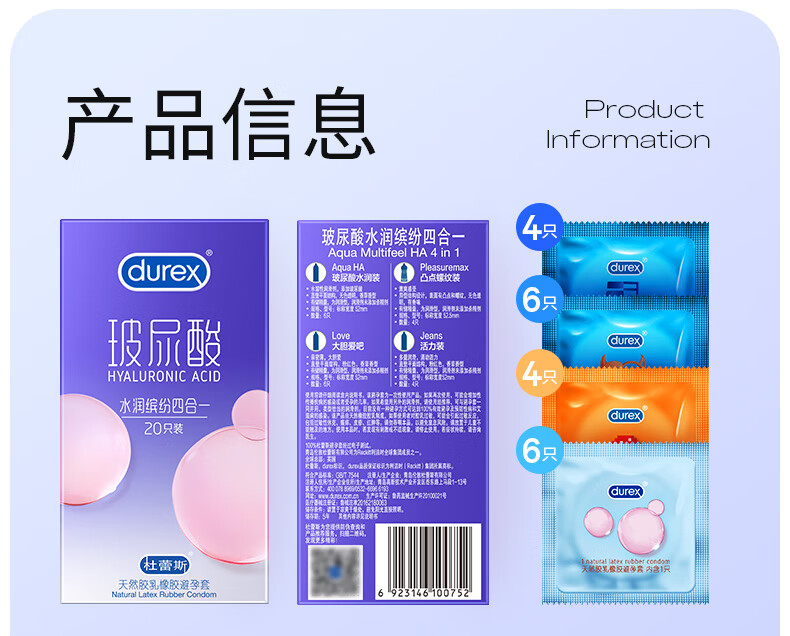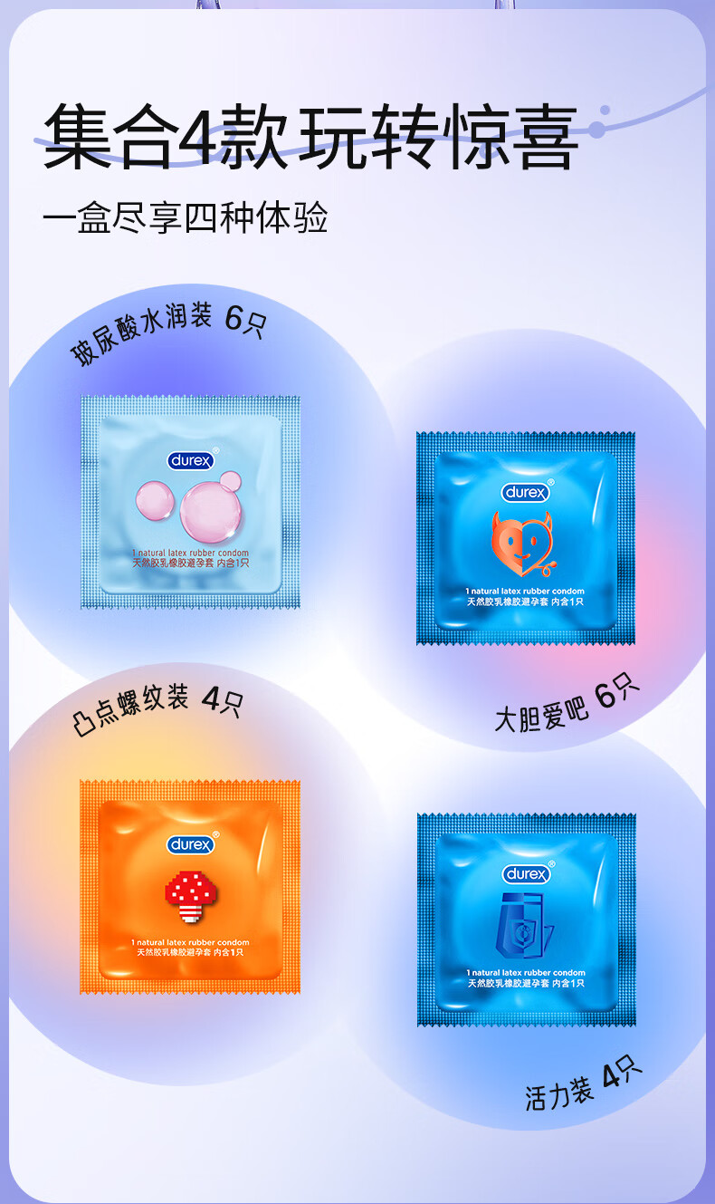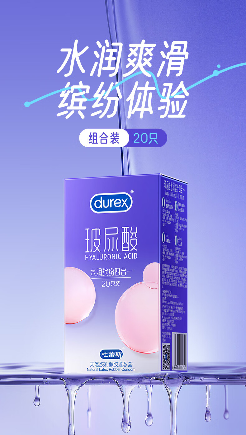 杜蕾斯(durex)超薄玻尿酸避孕套 水润缤纷四合一20只 安全套 成人性情趣用品