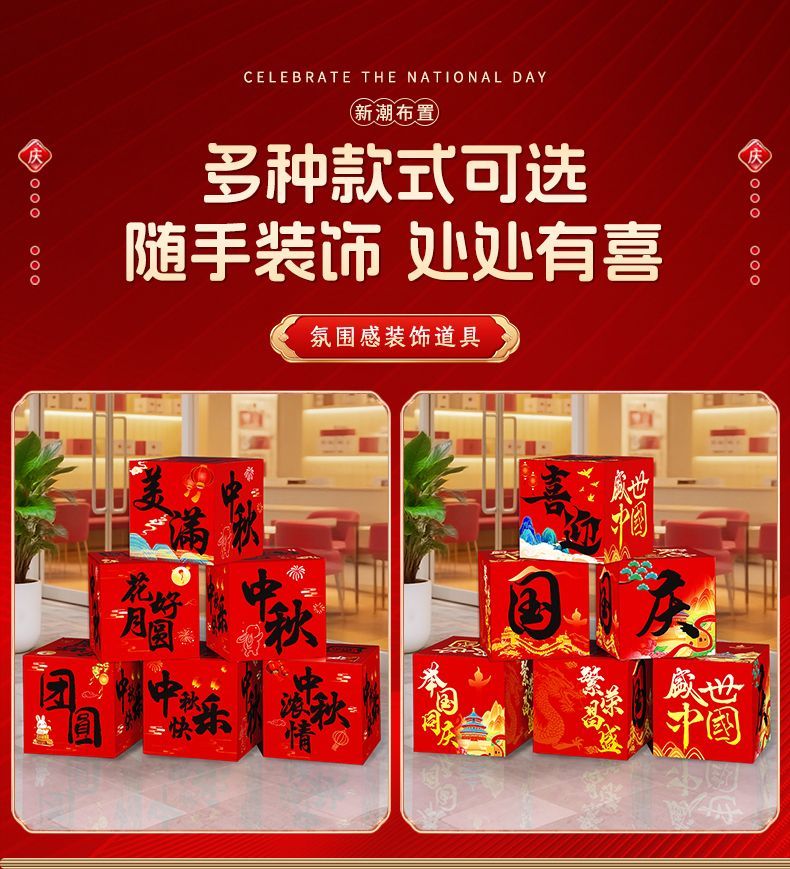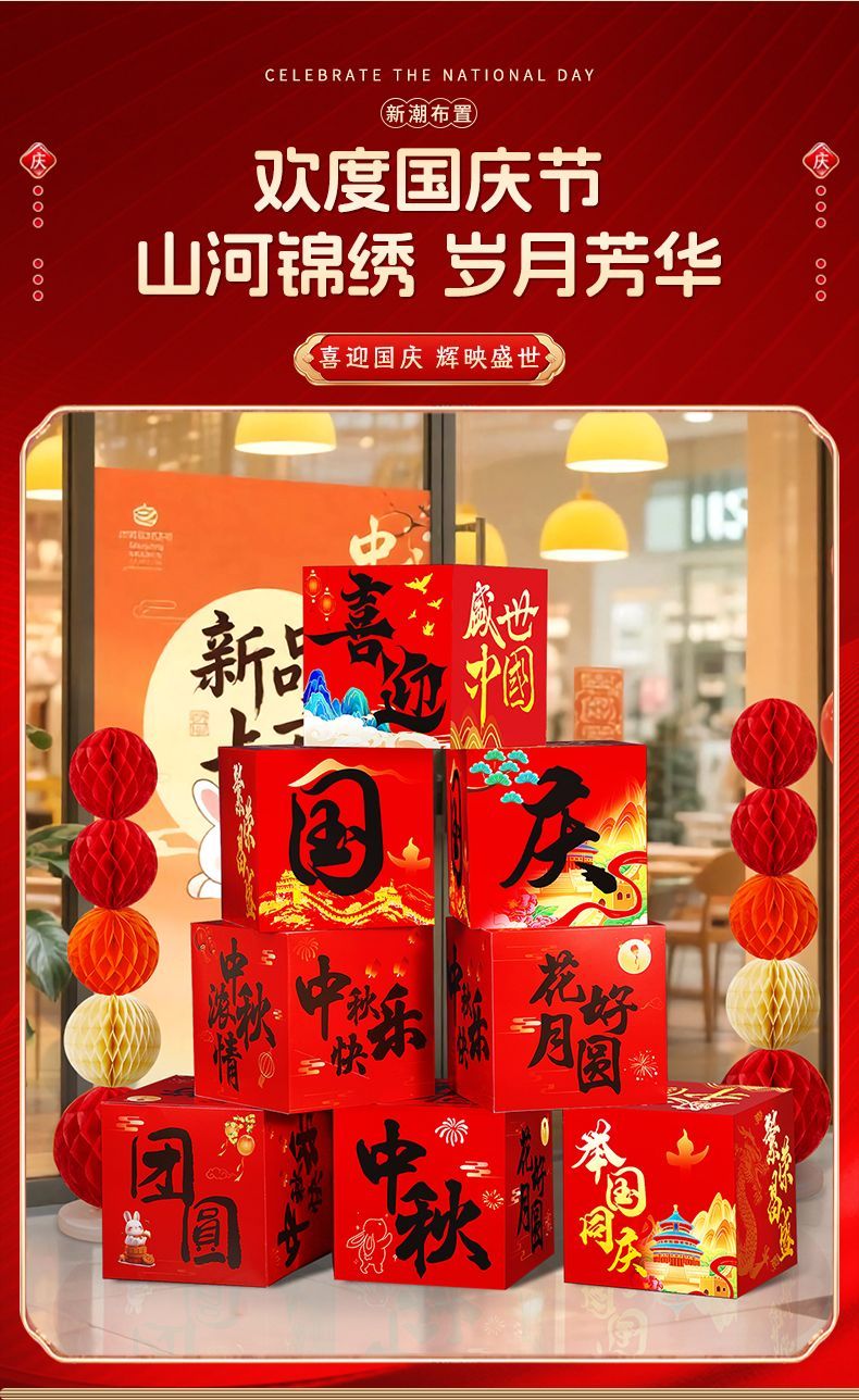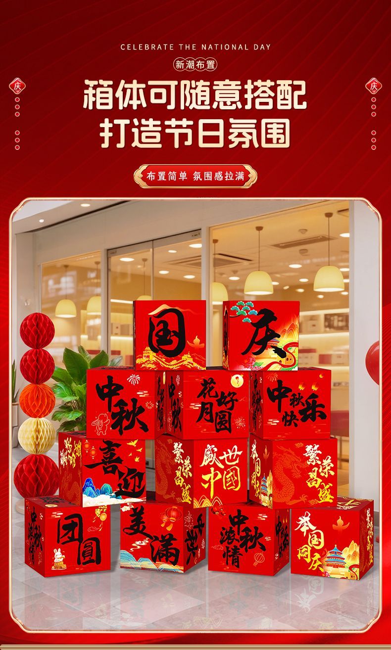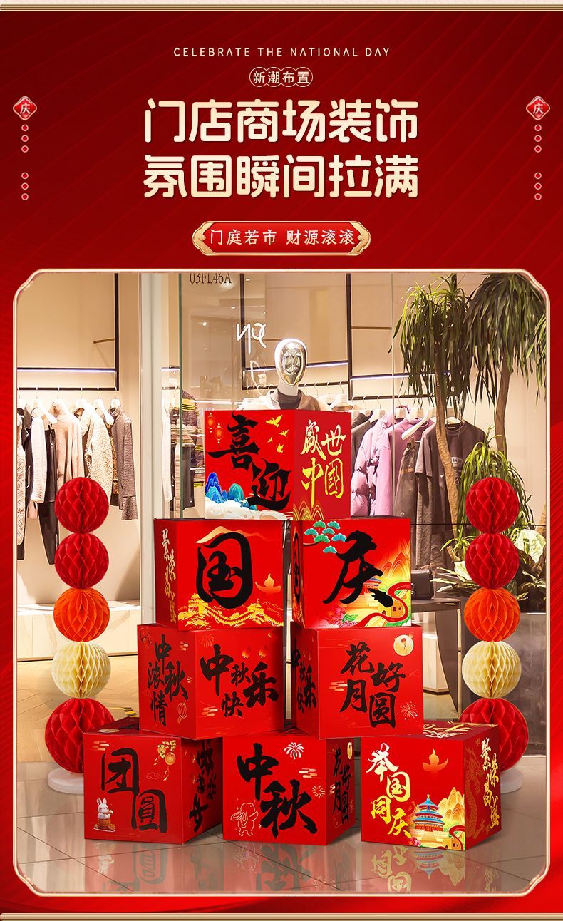 OYKTN国庆节氛围场景布置中秋节装饰摆件地堆盒子商场珠宝店铺活动门店 【迎国庆】地堆盒1个装