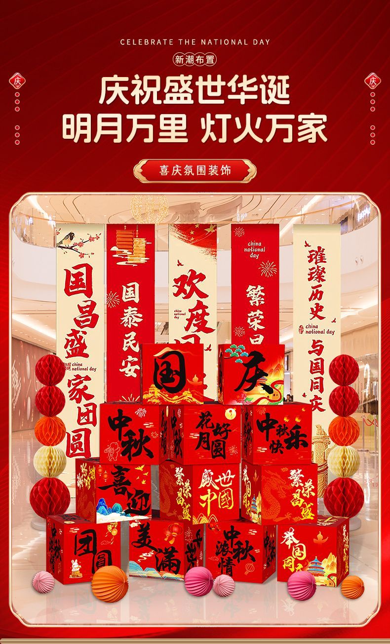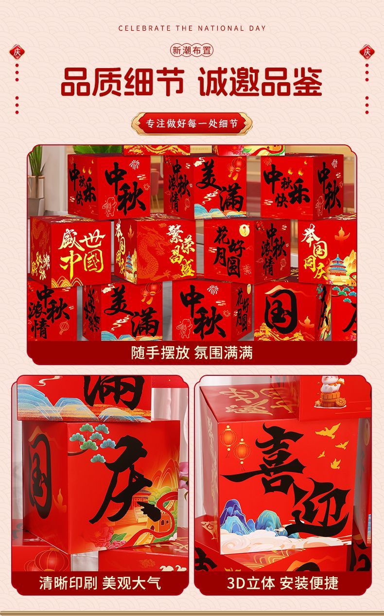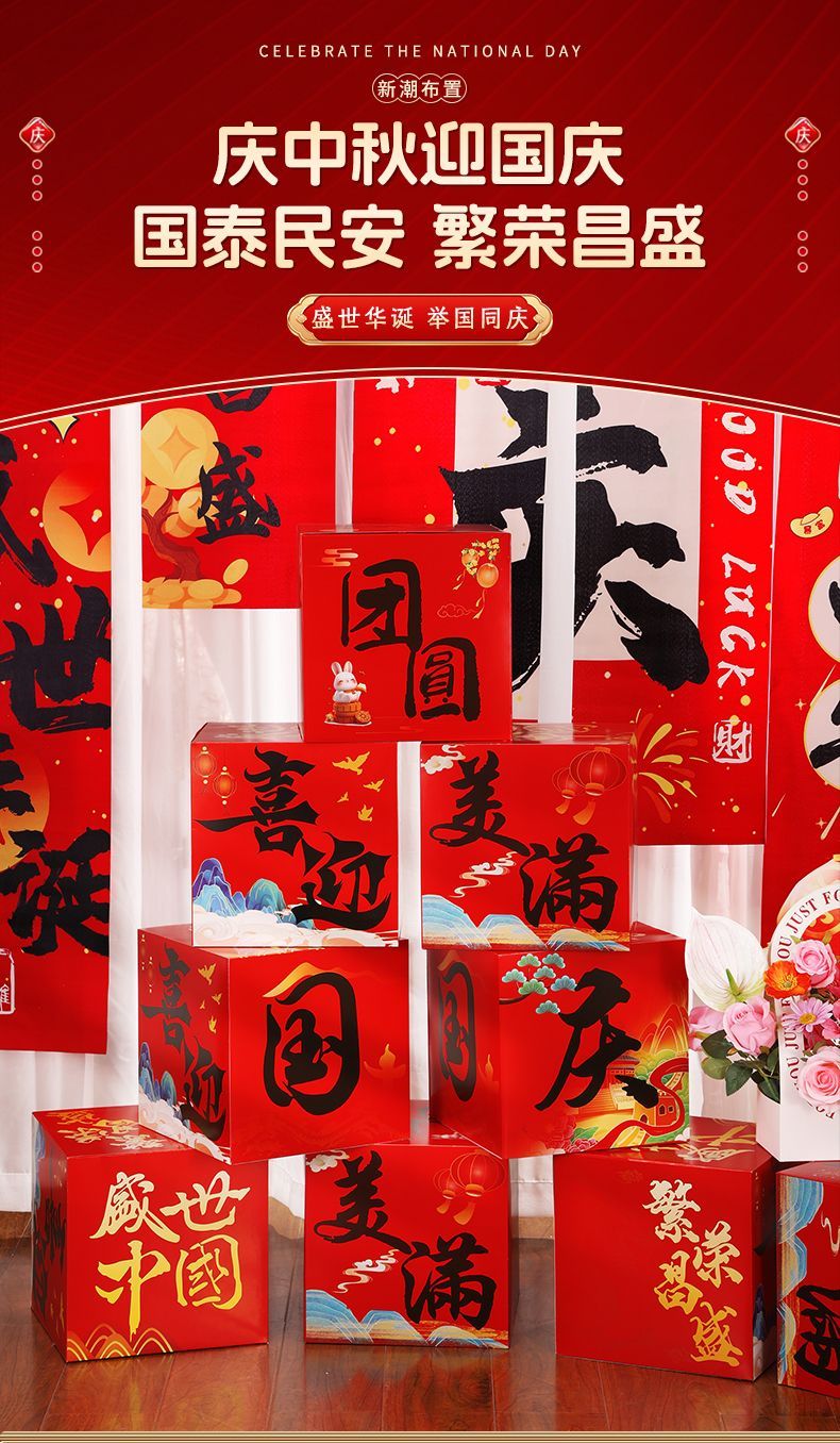 OYKTN国庆节氛围场景布置中秋节装饰摆件地堆盒子商场珠宝店铺活动门店 【迎国庆】地堆盒1个装