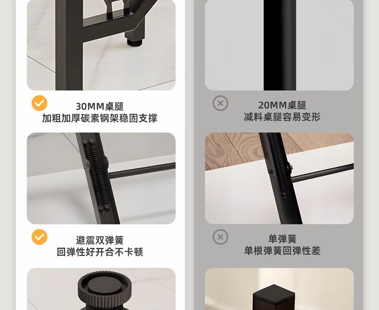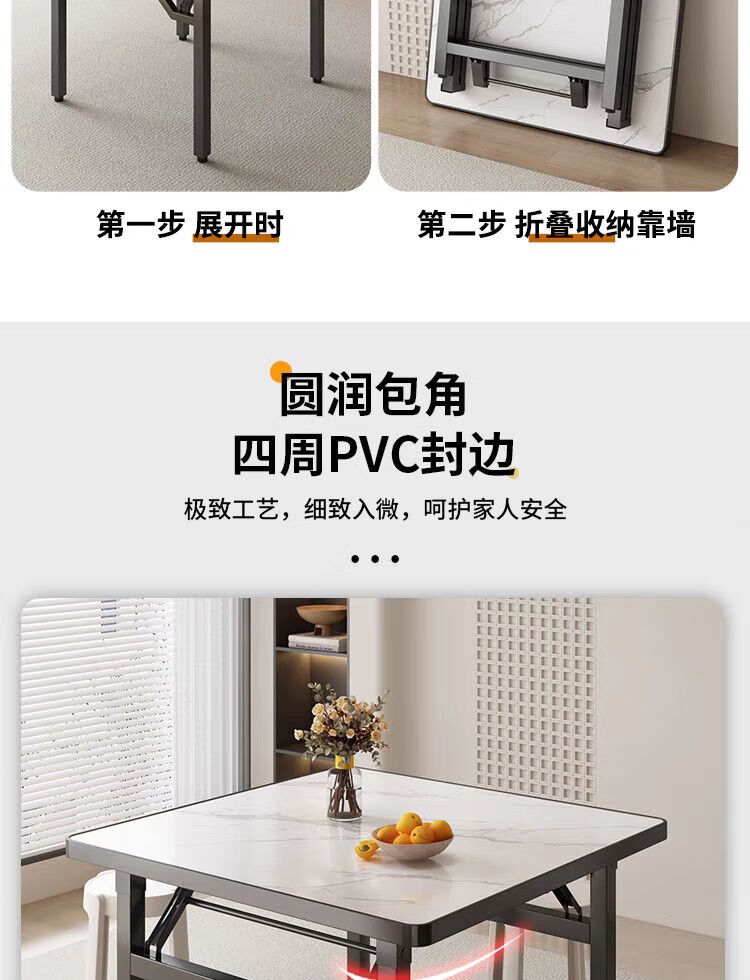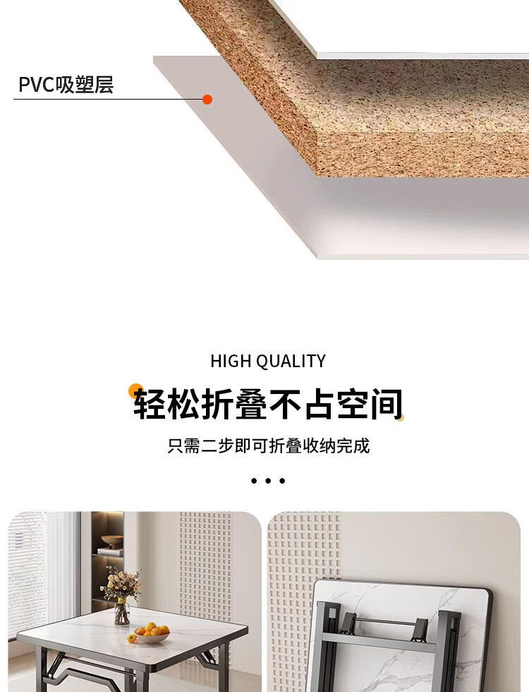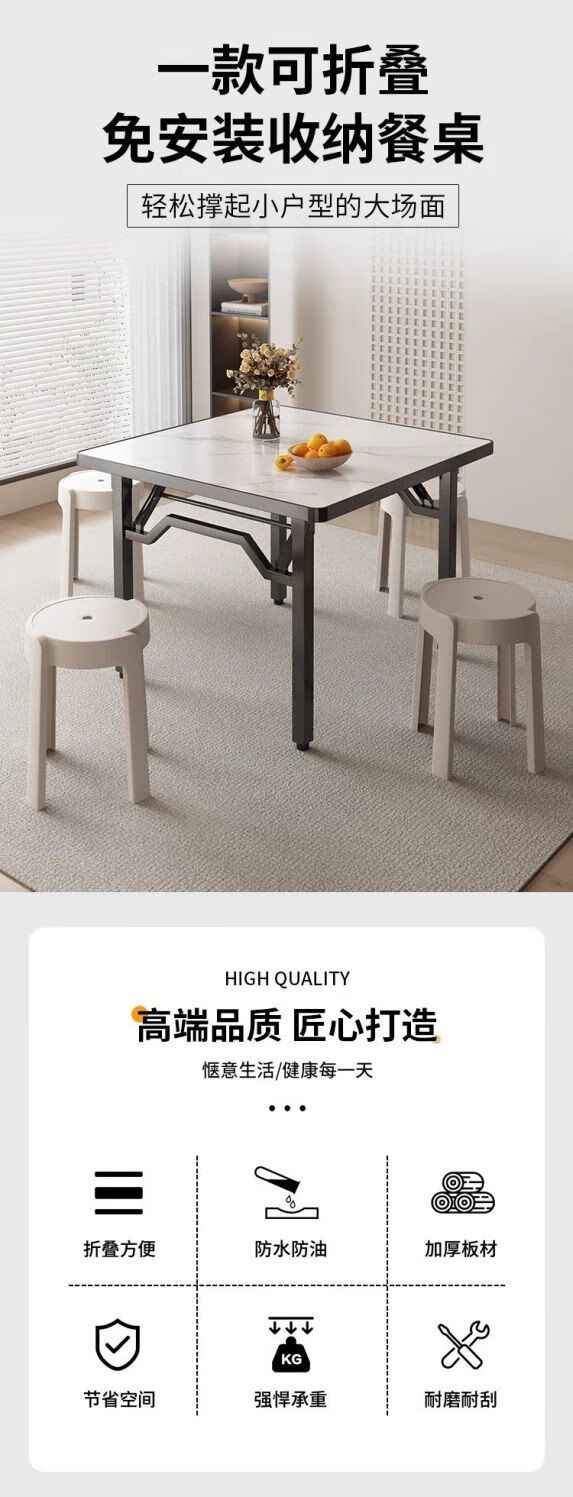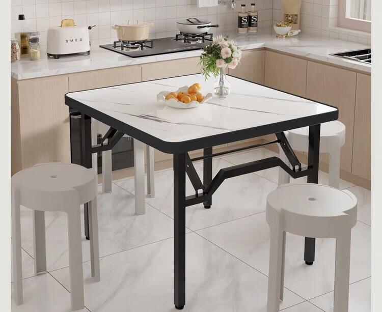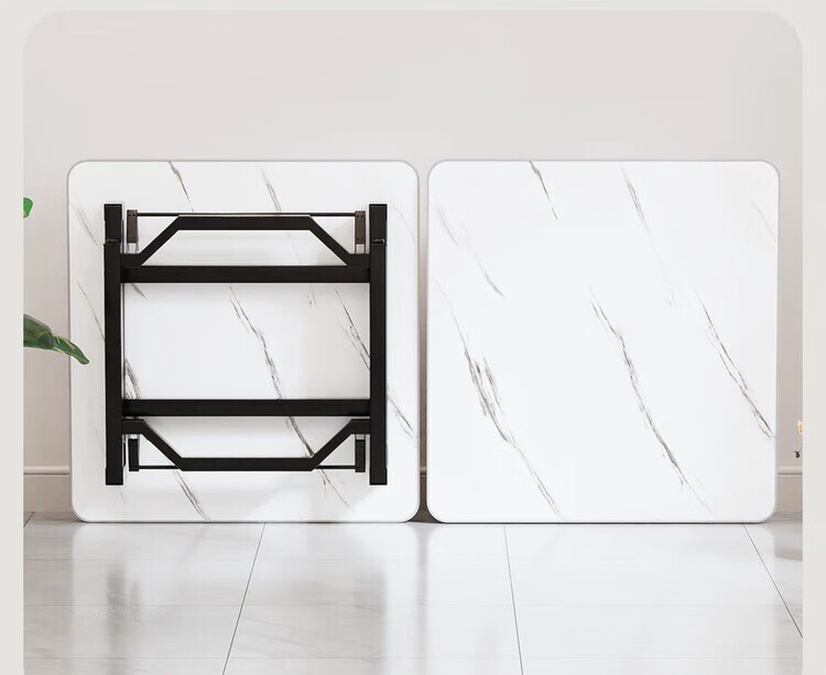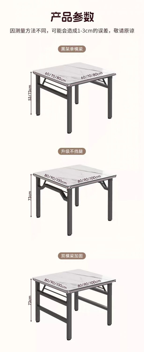 弘星隆麻将桌家用可折叠桌子便携式出租屋租房吃饭桌正方形餐桌两用简易 普通矮桌-白石纹60*60*53黑架