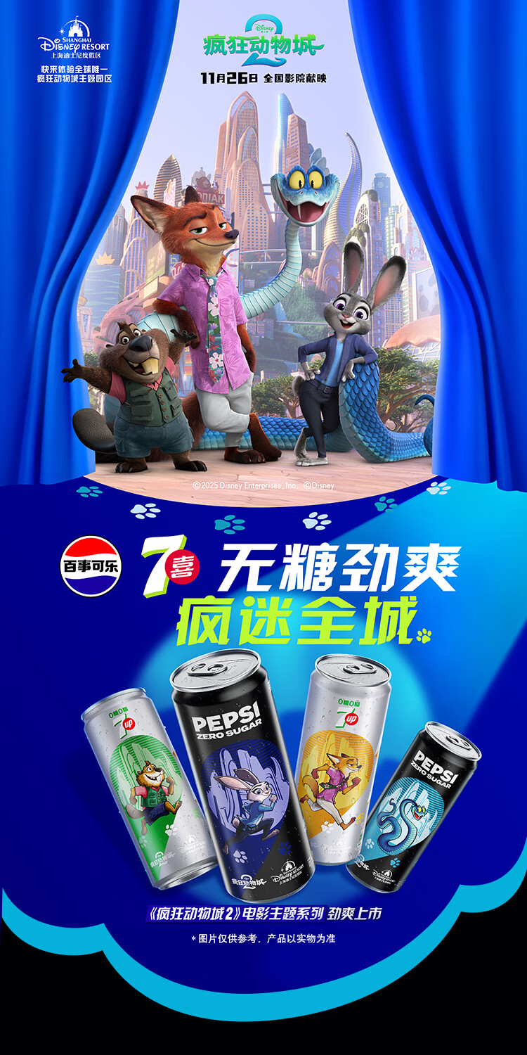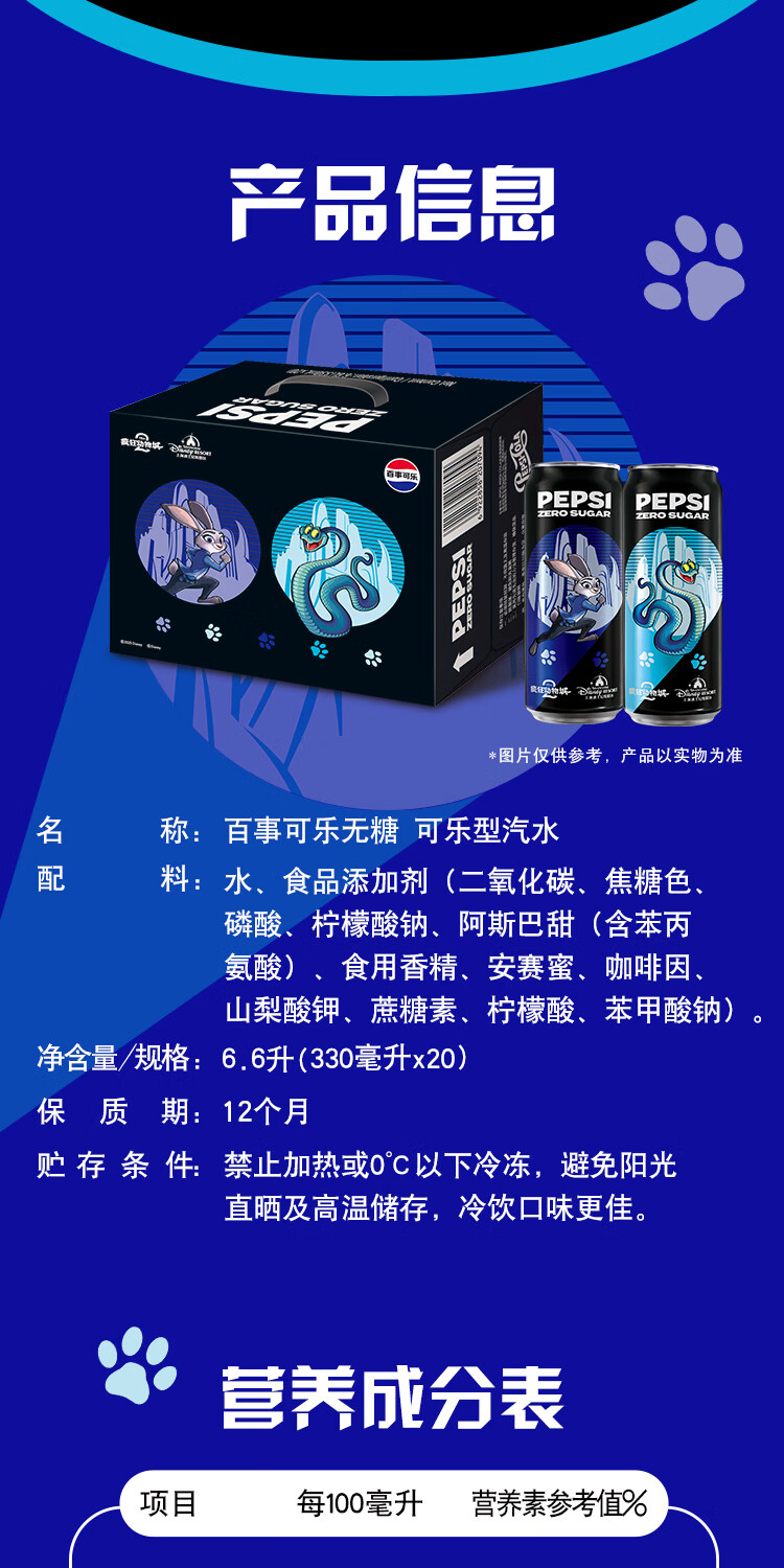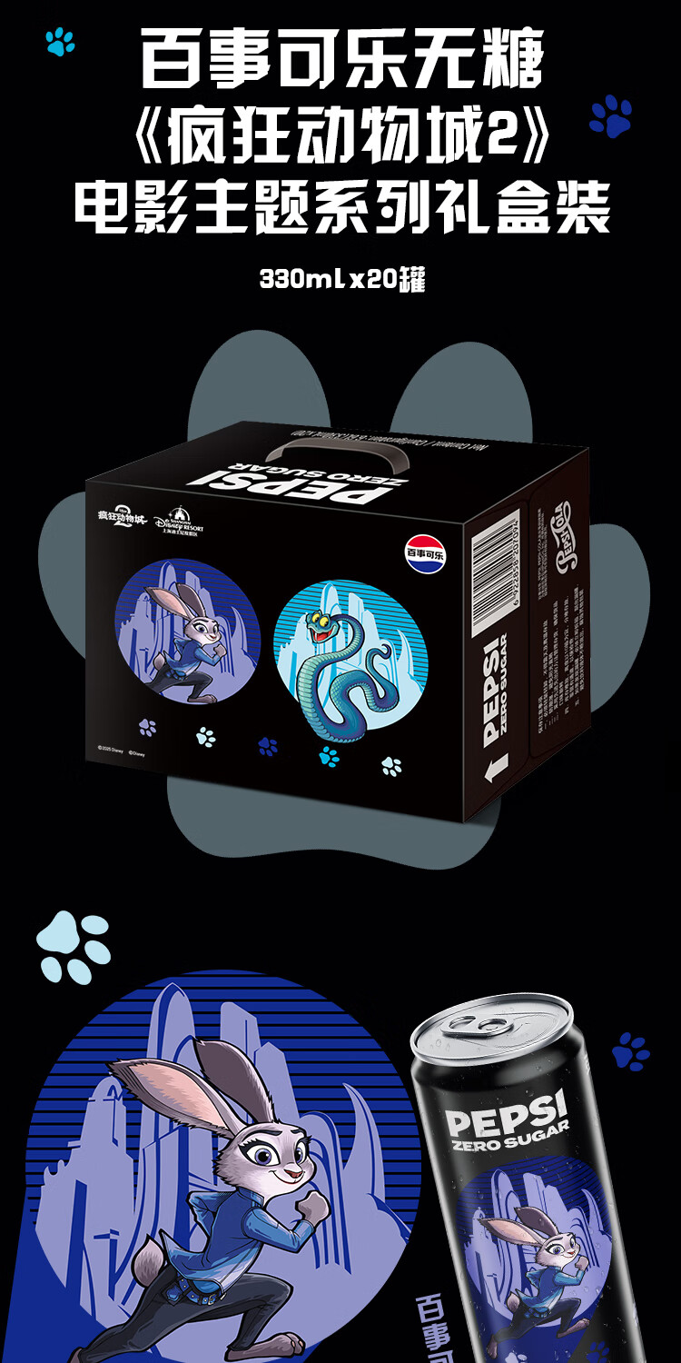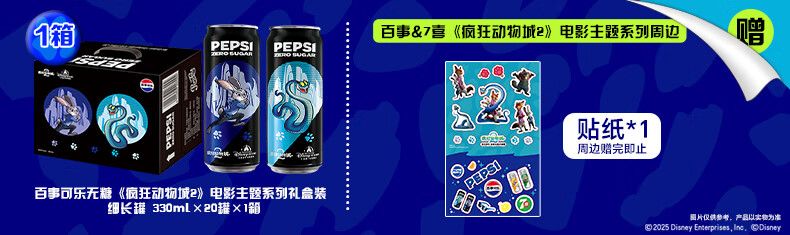 百事可乐无糖《疯狂动物城2》电影主题系列礼盒装 细长罐 330mlx20罐