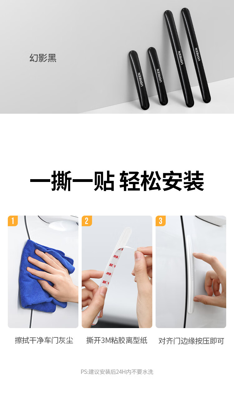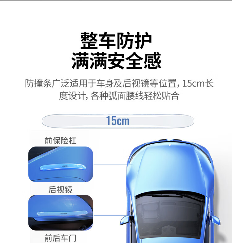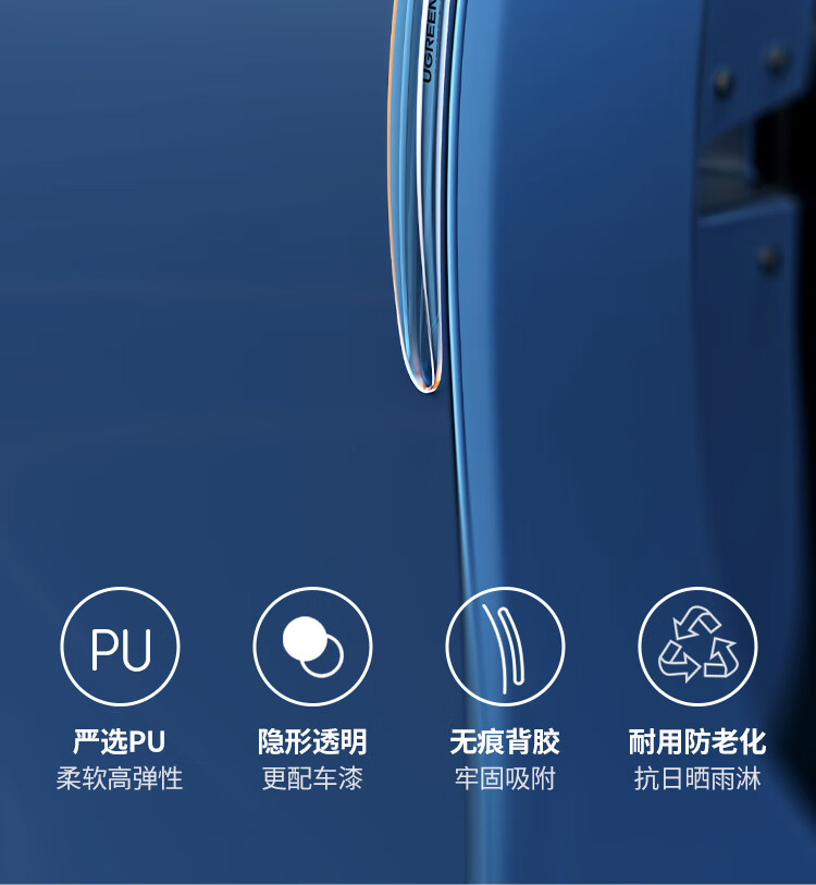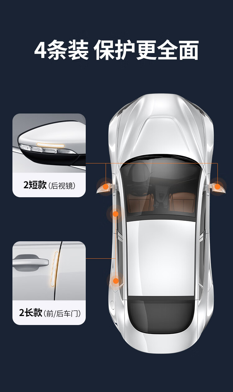 绿联车门防撞条 汽车后视镜防撞贴车身装饰件 防刮开门防护汽车用品