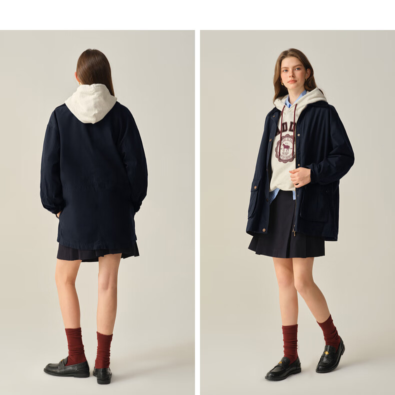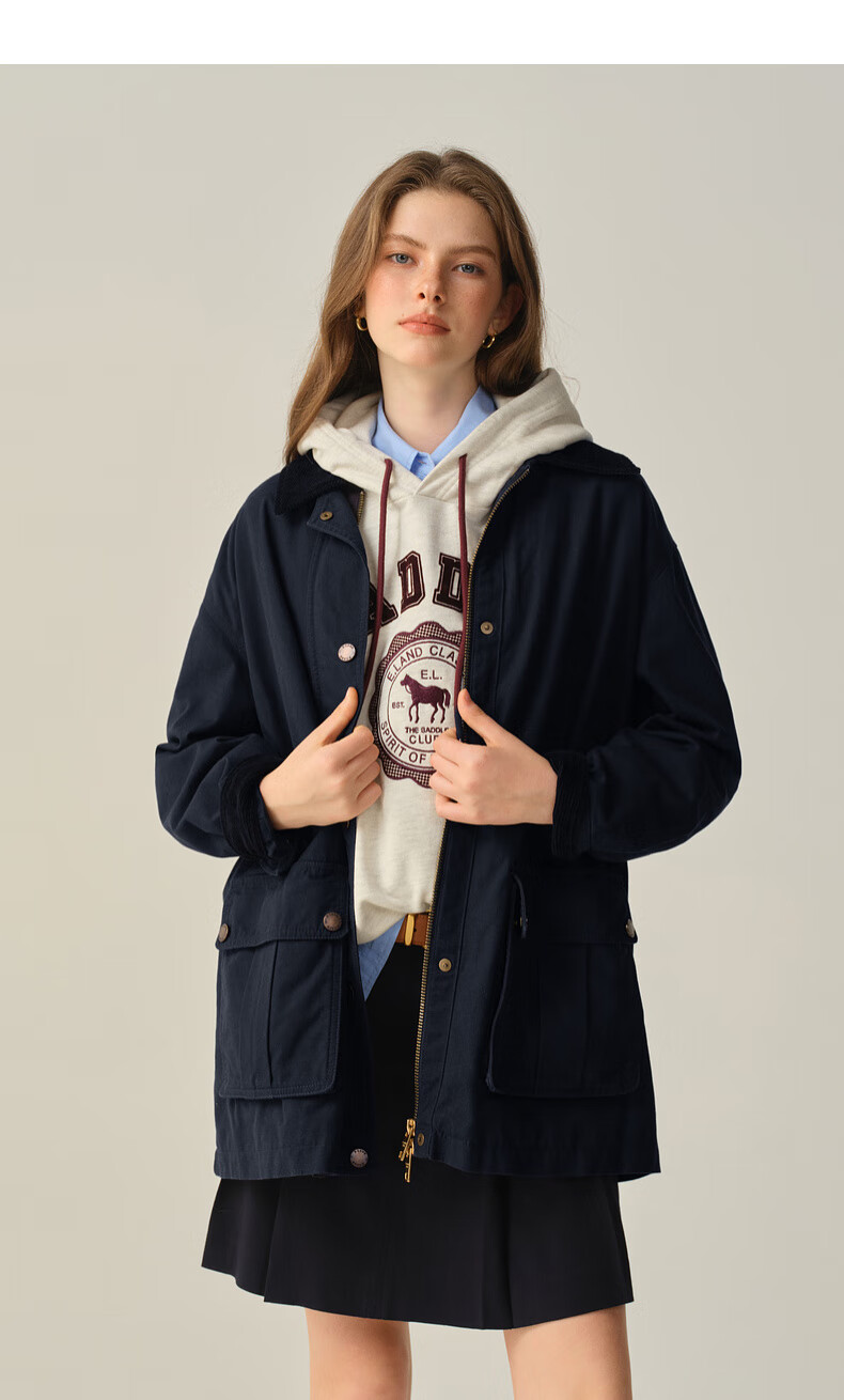 ELAND衣恋短外套女长袖撞色翻领通勤外套2025秋季新款 卡其色(35)Beige S /160
