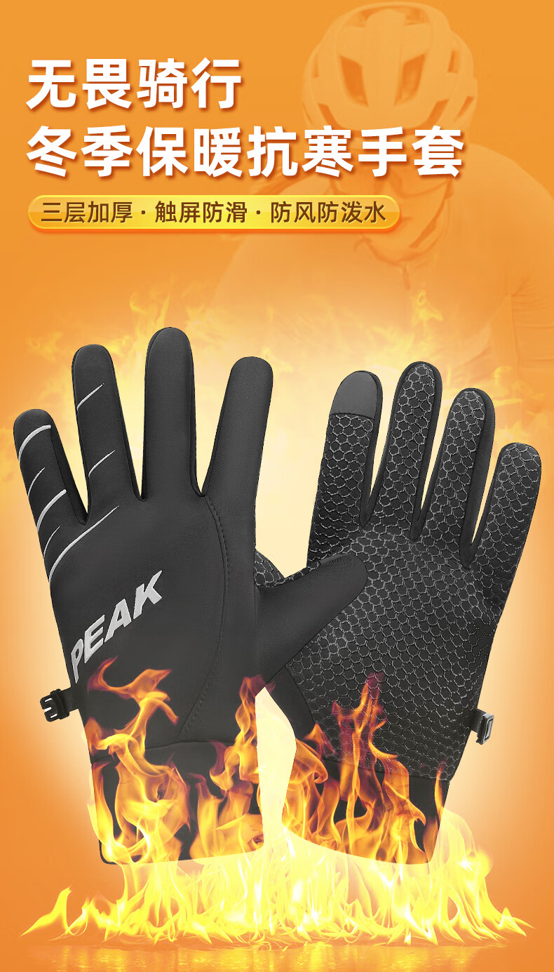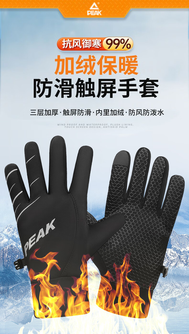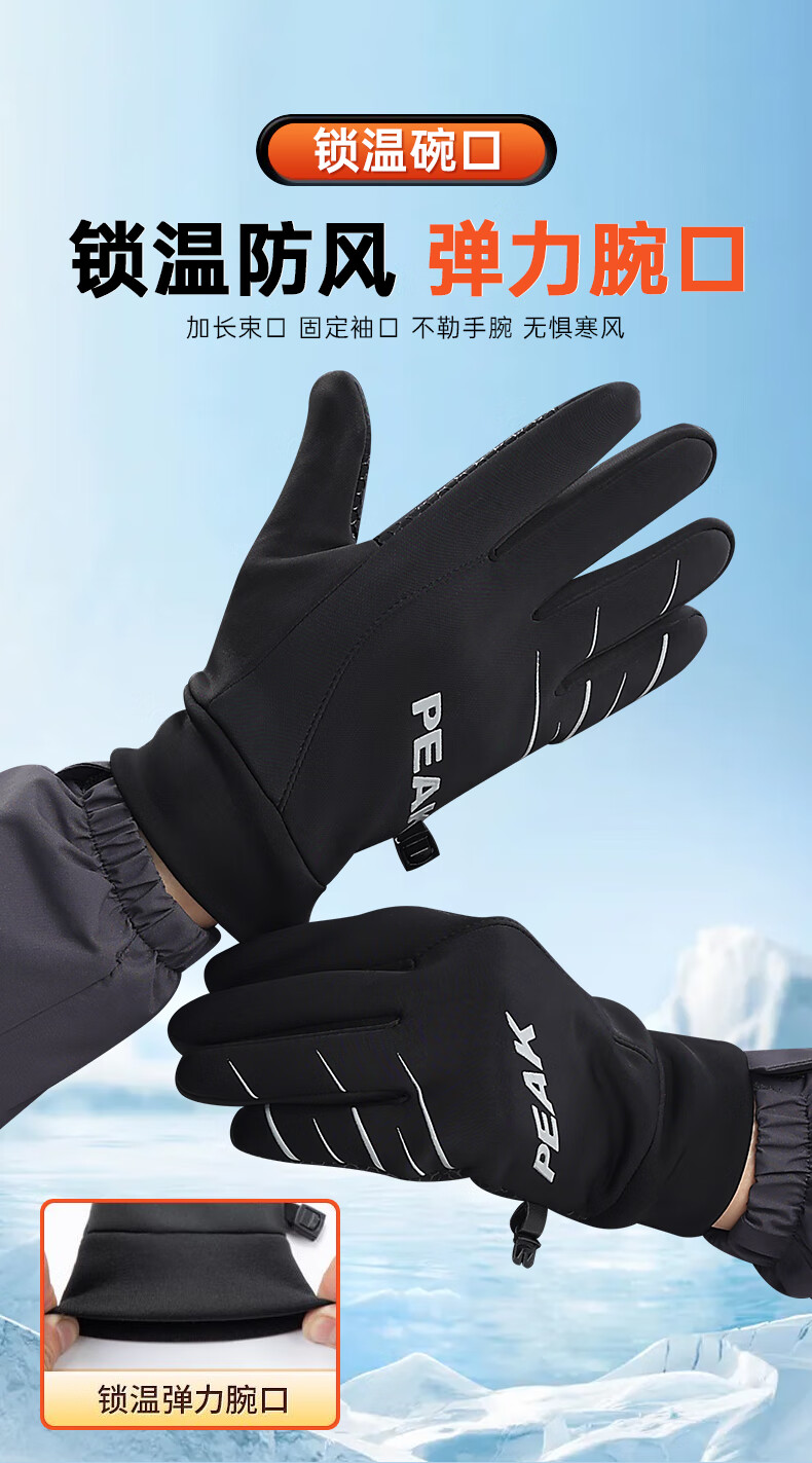 匹克保暖手套男冬季加绒加厚防风防寒骑行摩托运动滑雪手套可触屏 普通针织手套-颜色随机
