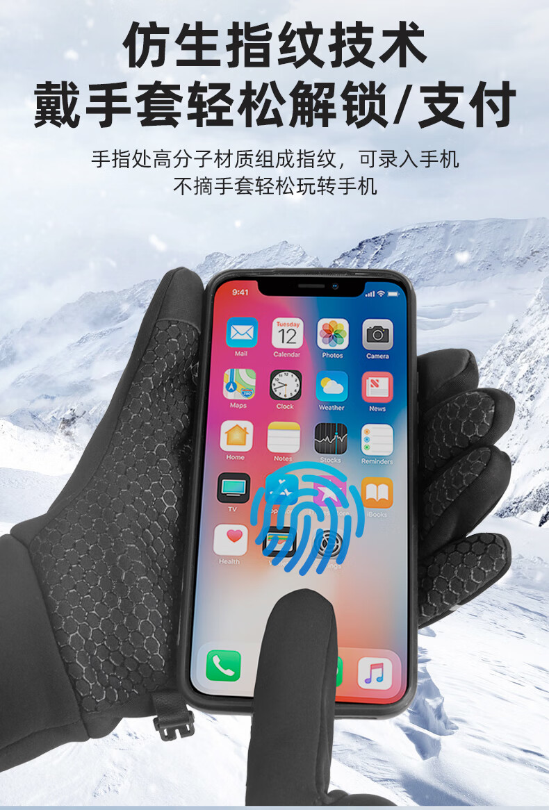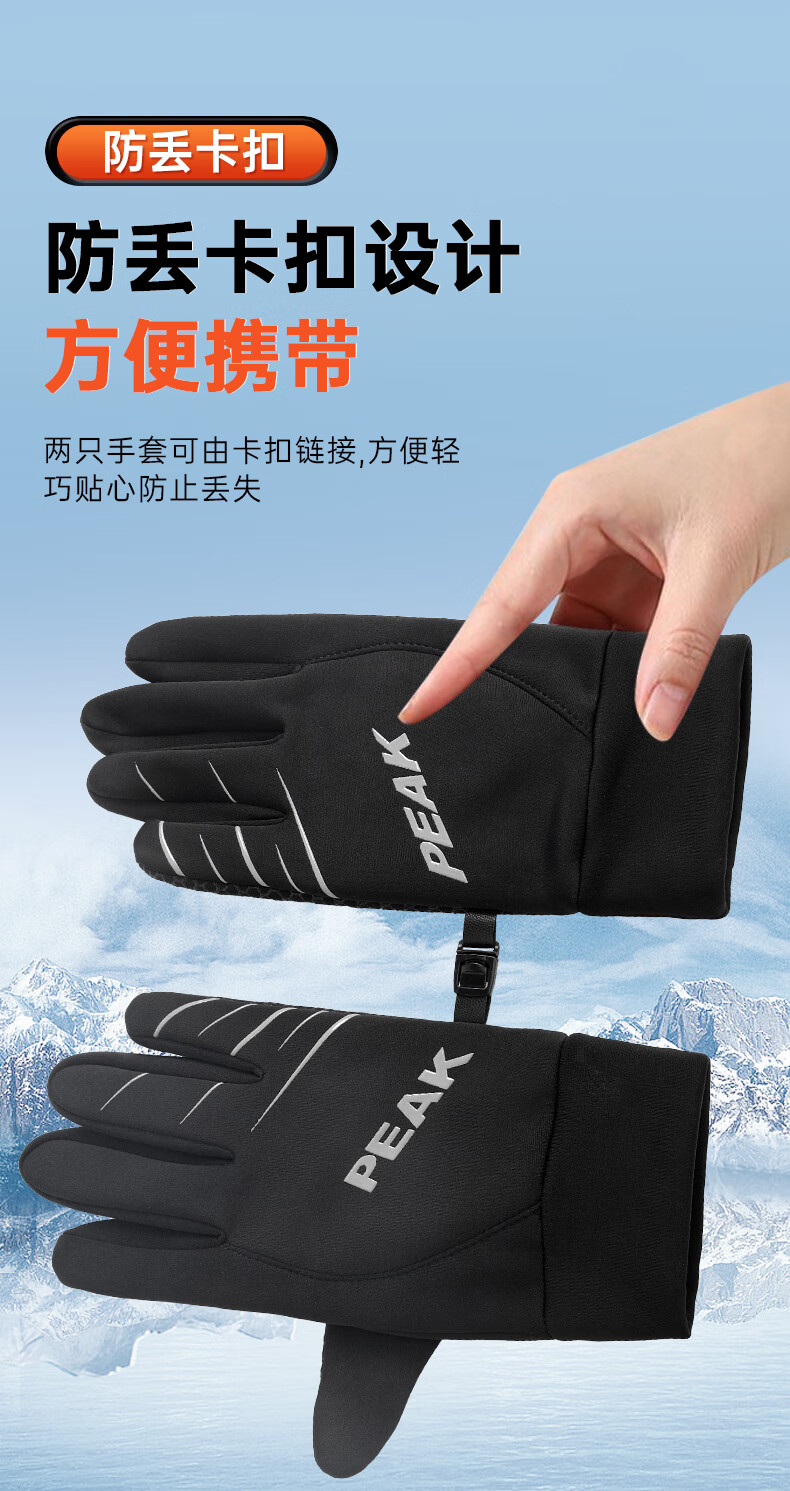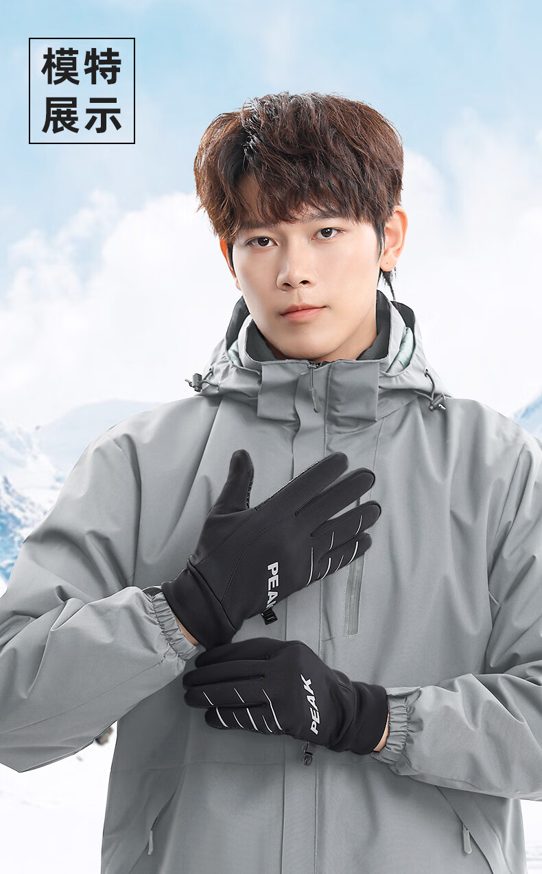 匹克保暖手套男冬季加绒加厚防风防寒骑行摩托运动滑雪手套可触屏 普通针织手套-颜色随机