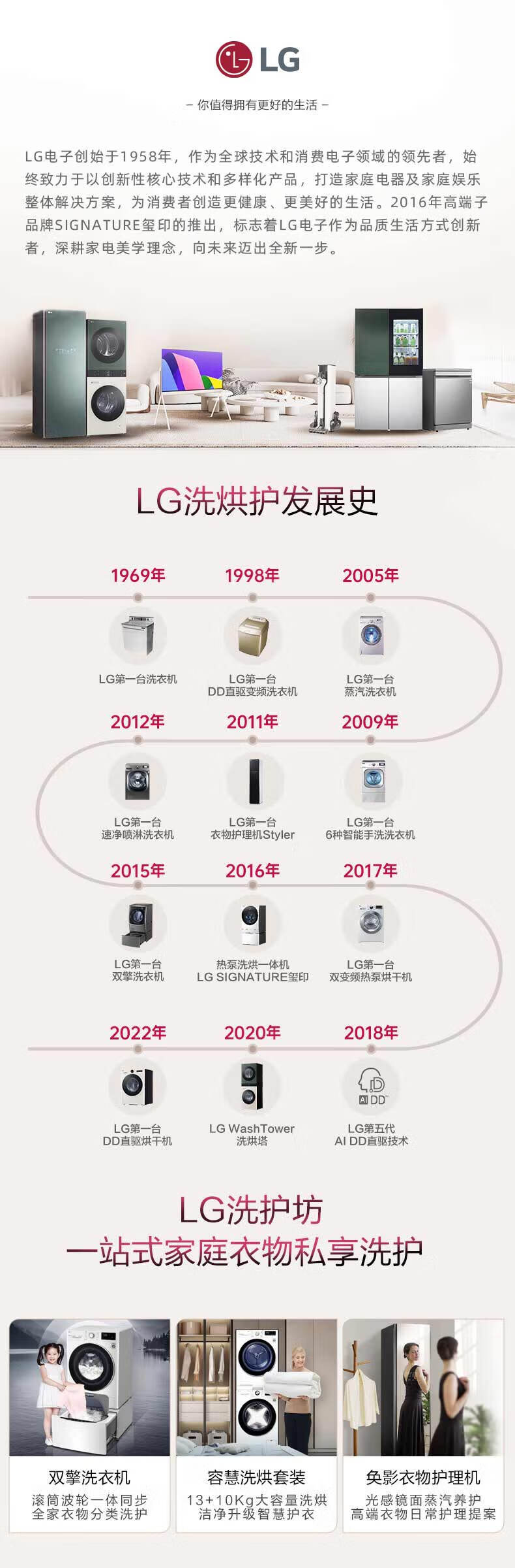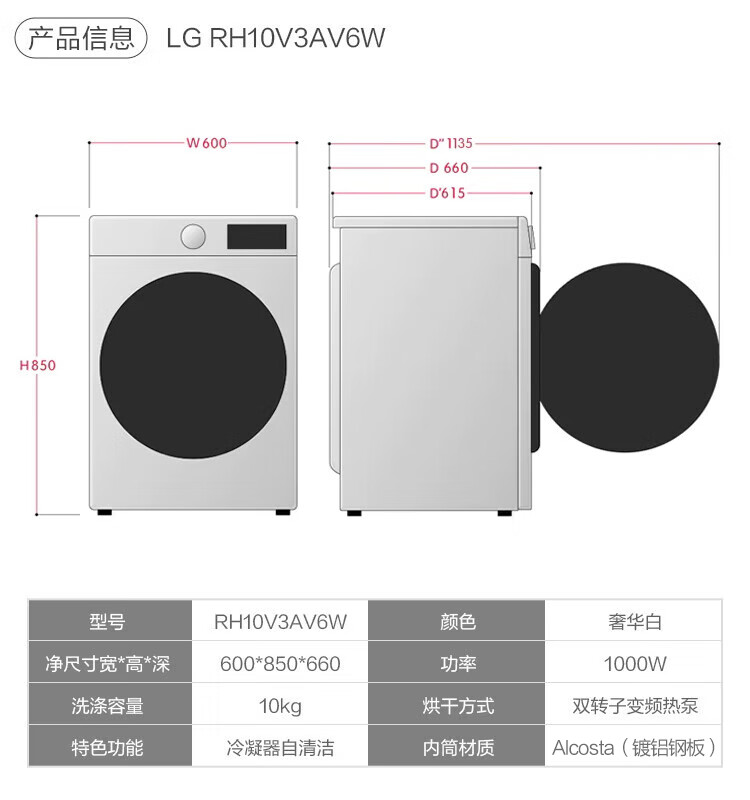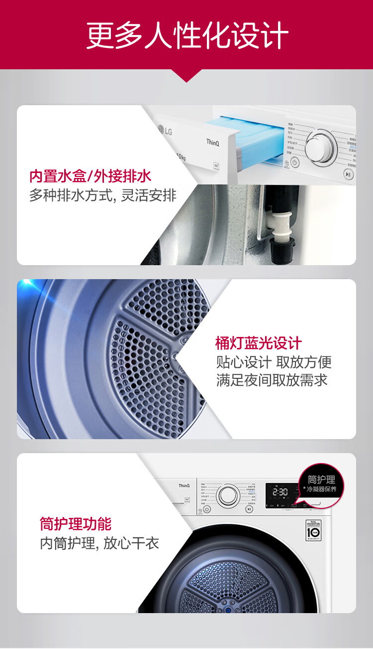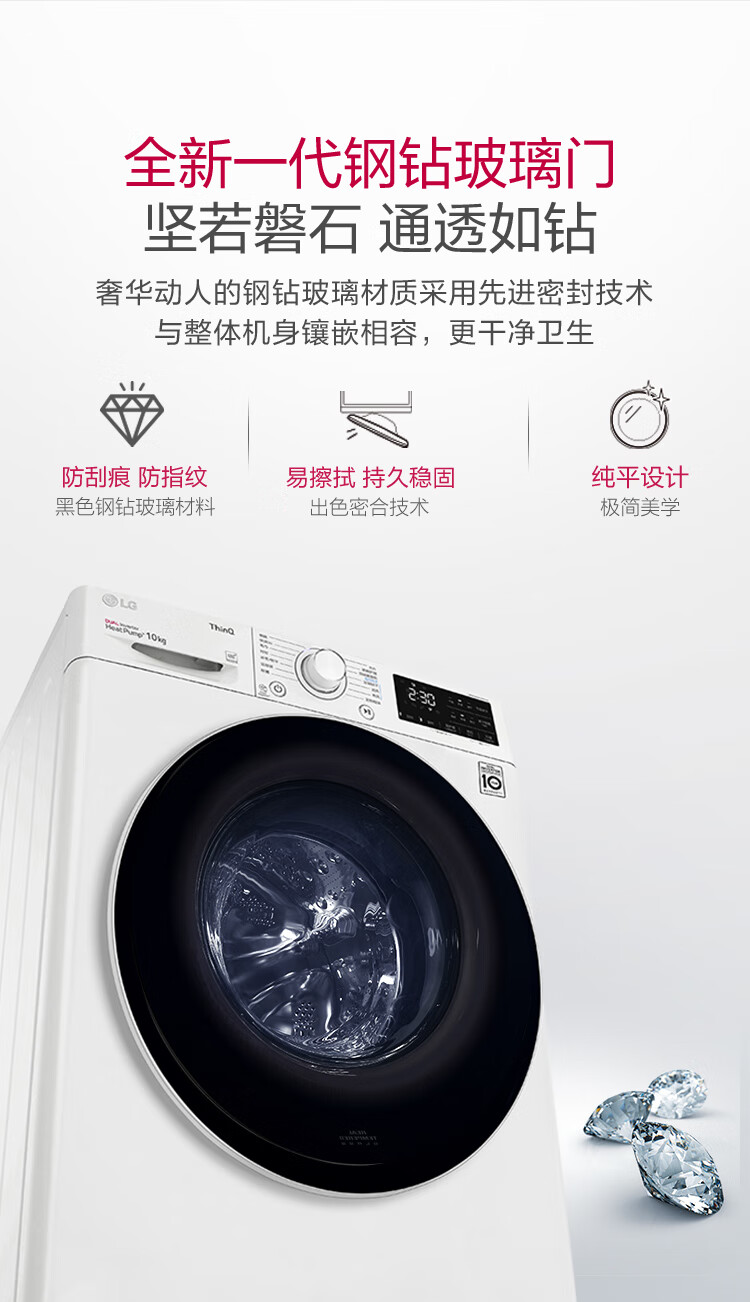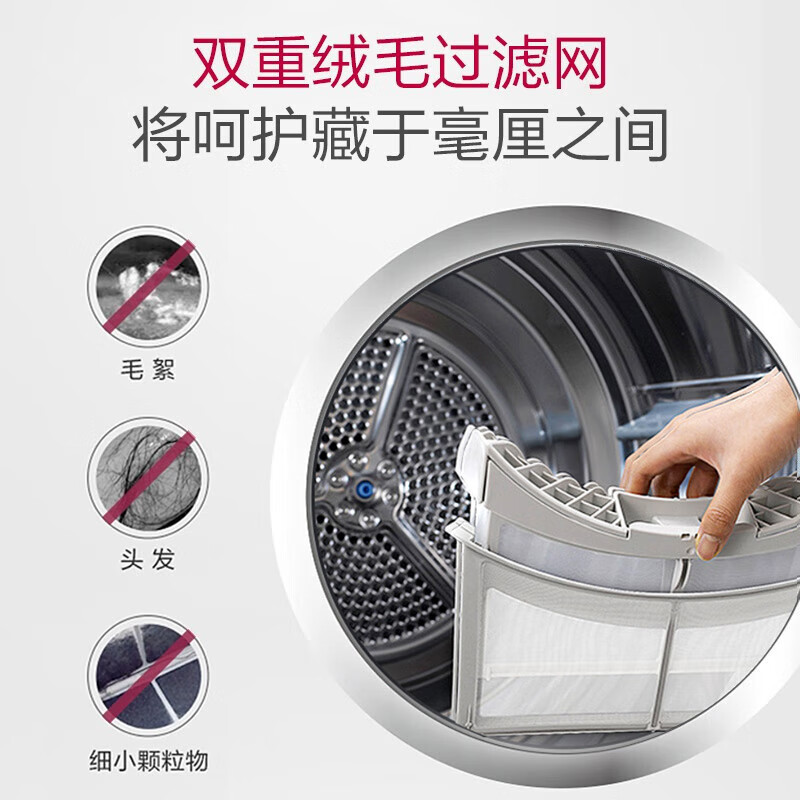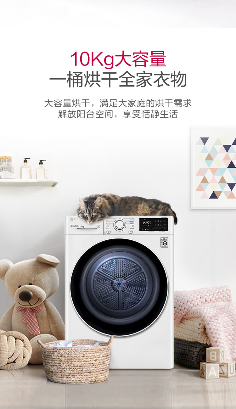 LG烘干机 原装进口 10Kg大容量双转子变频热泵 30分钟快烘除菌除螨 白色RH10V3AV6W国家补贴以旧换新
