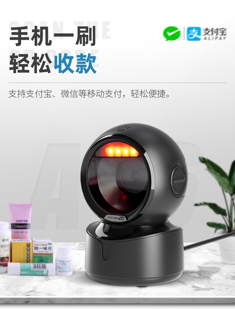 逊镭(NTEUMM)超市无线蓝牙扫描平台 条形码通用收银扫码枪支付盒子 药品追溯码扫码收款器墩收银机 A6