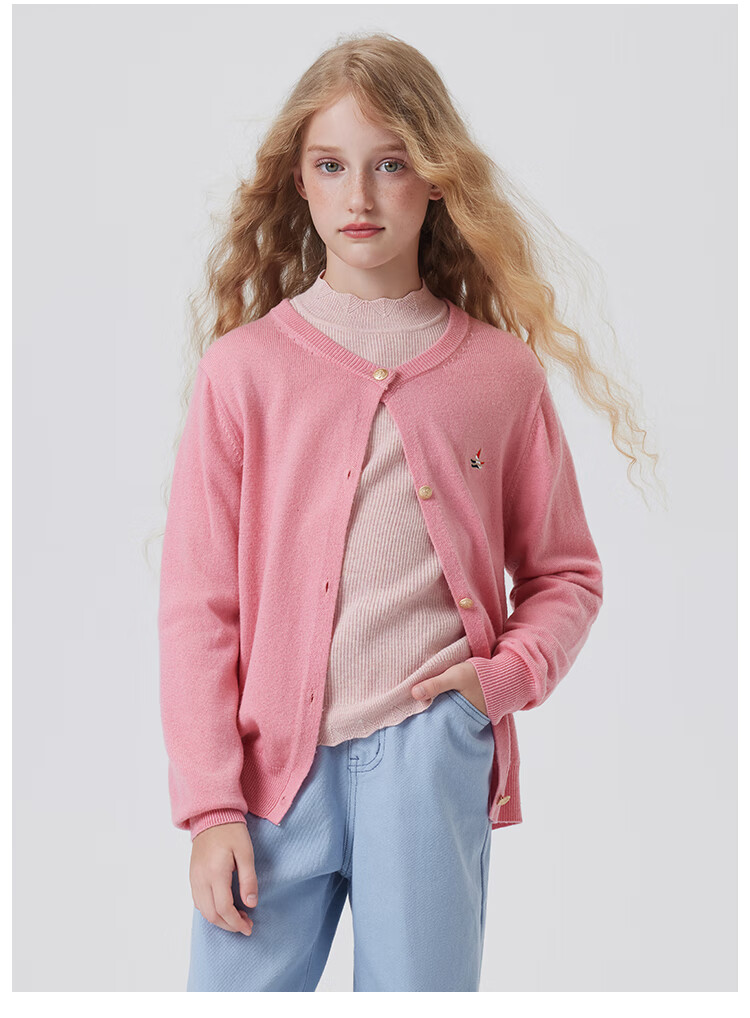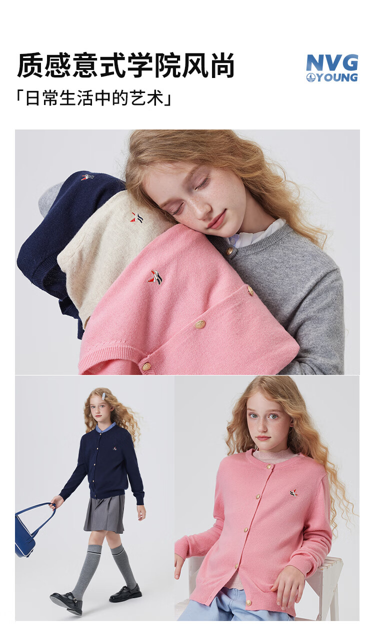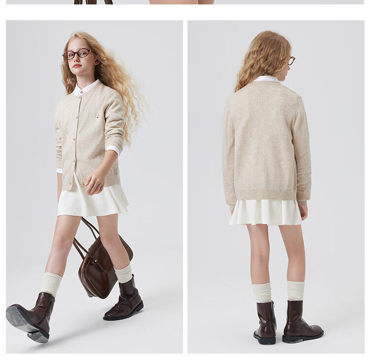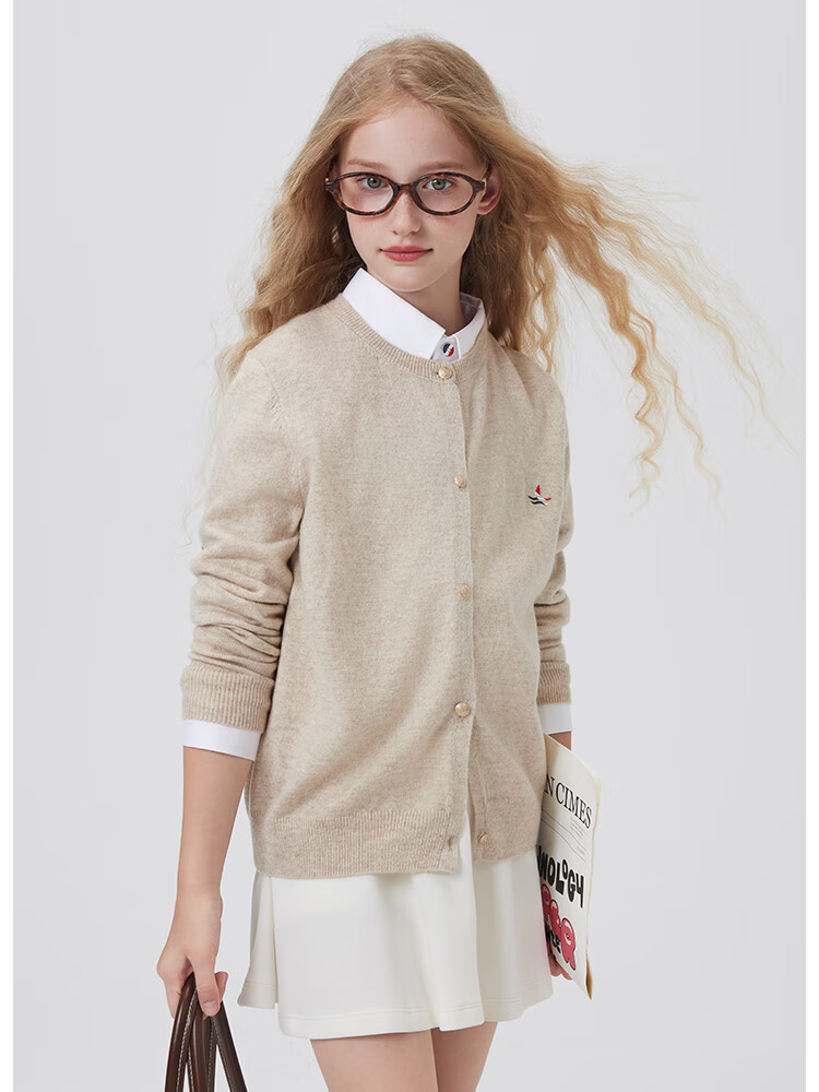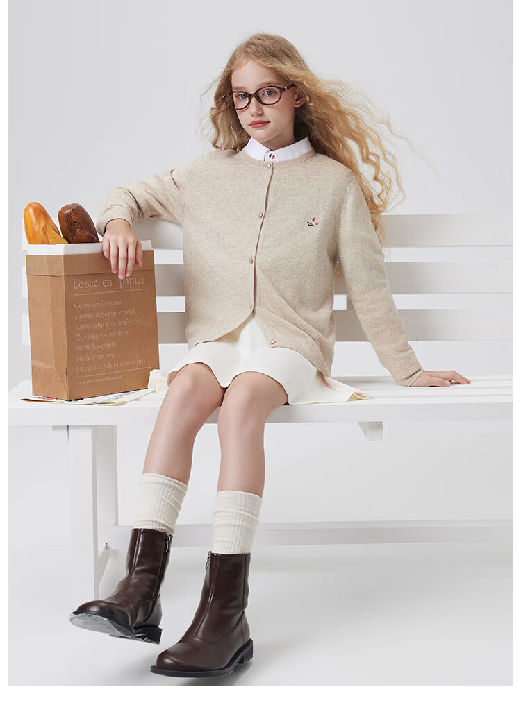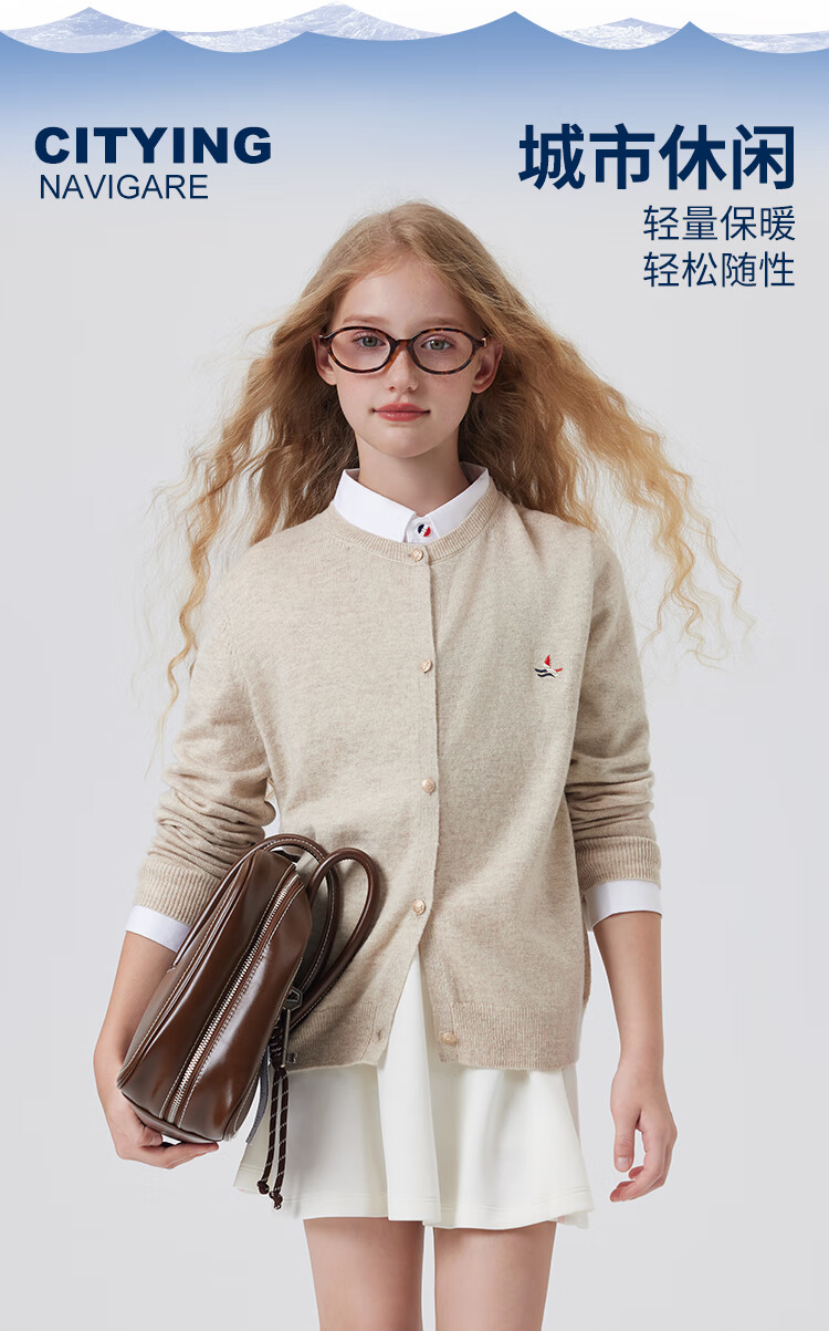 NAVIGARE儿童毛衣开衫秋装新款中大童外套洋气上衣甜美学院风圆领针织衫 【优雅小圆领】浅驼 140