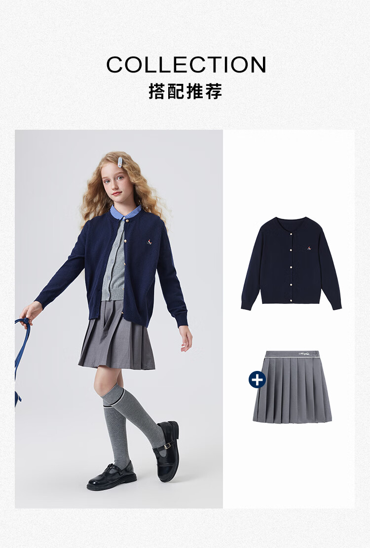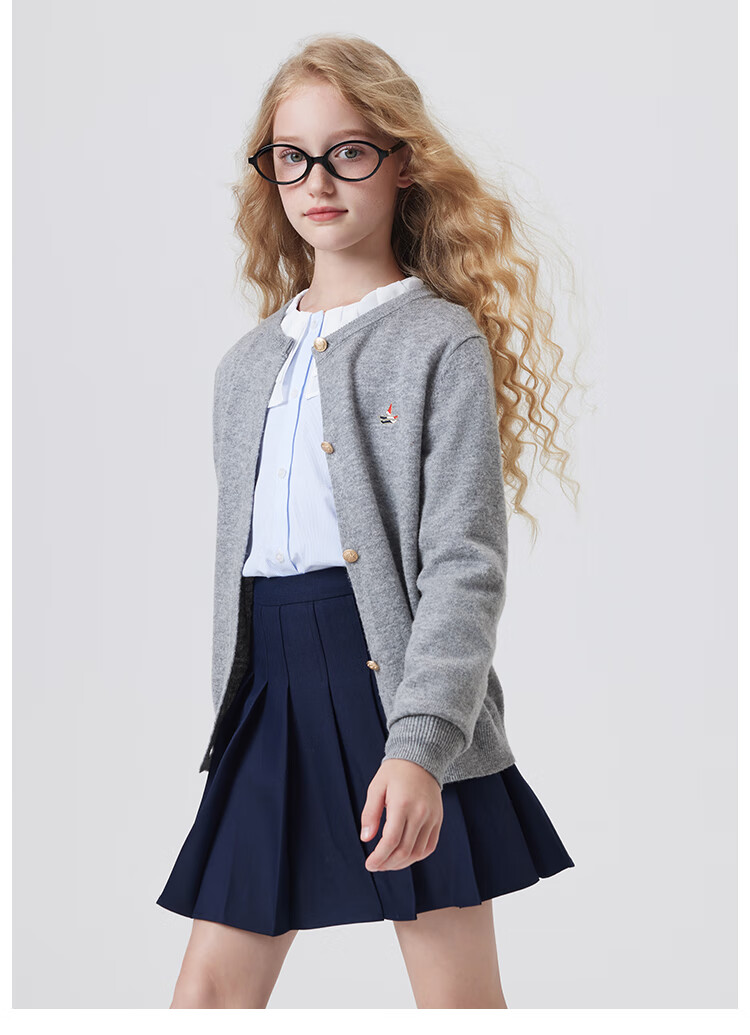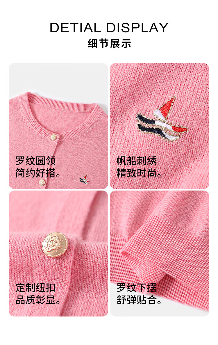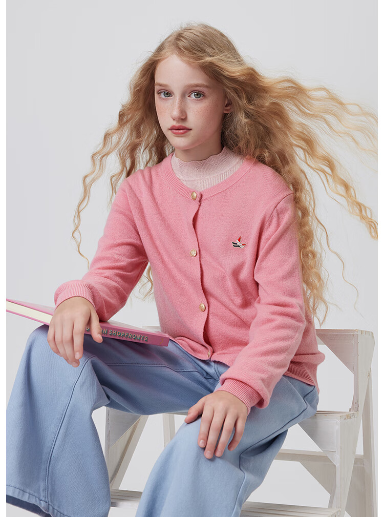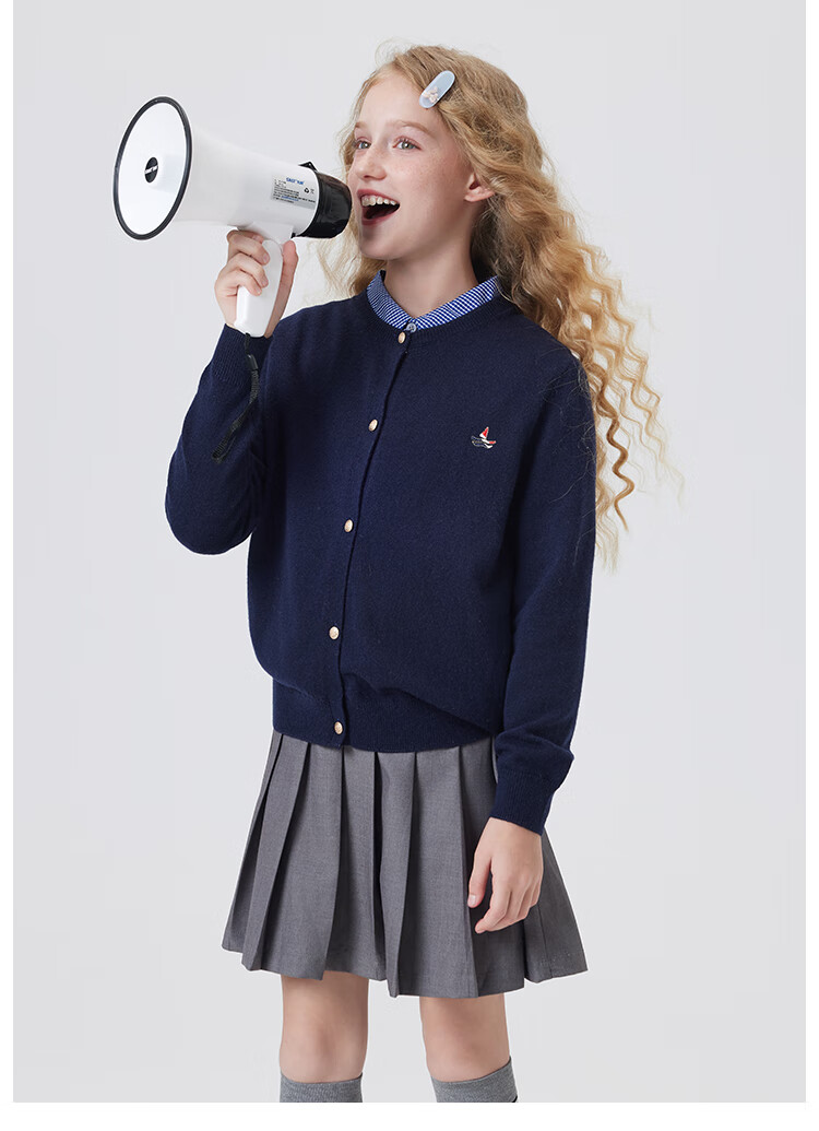 NAVIGARE儿童毛衣开衫秋装新款中大童外套洋气上衣甜美学院风圆领针织衫 【优雅小圆领】浅驼 140