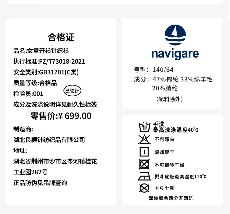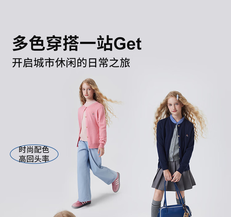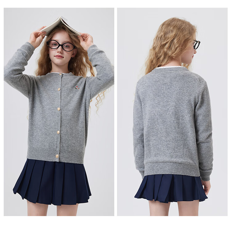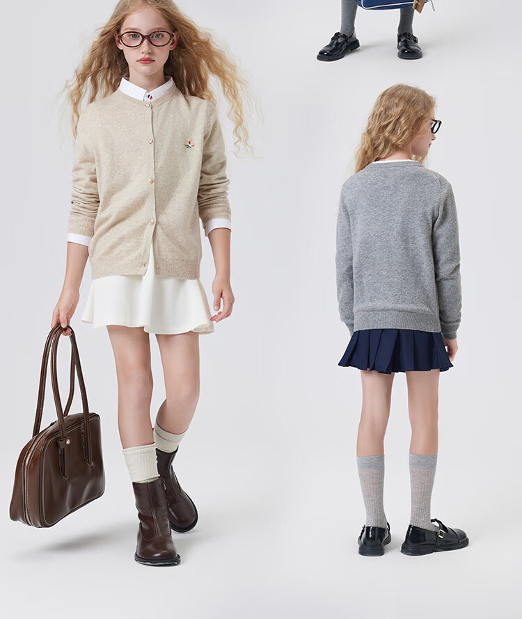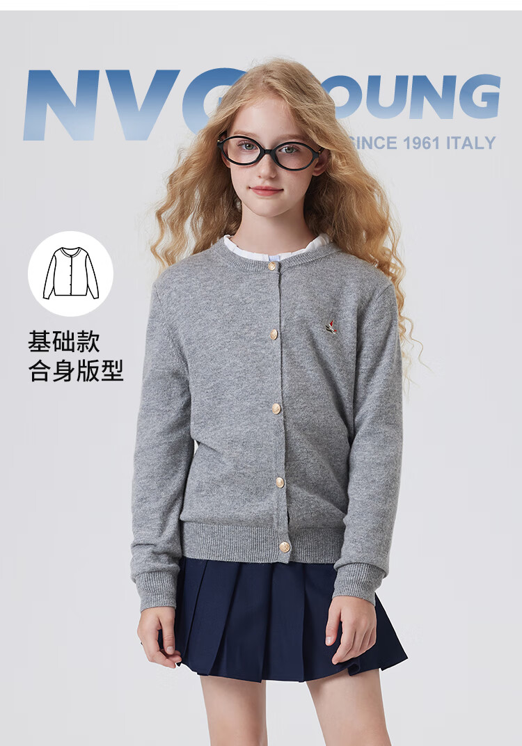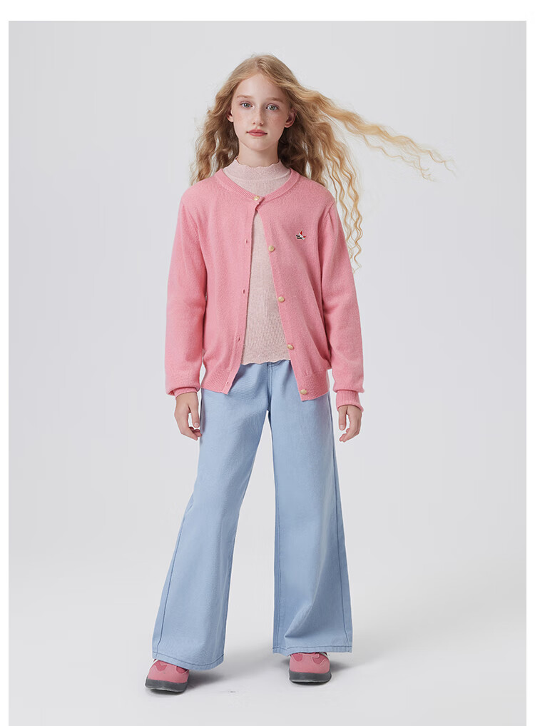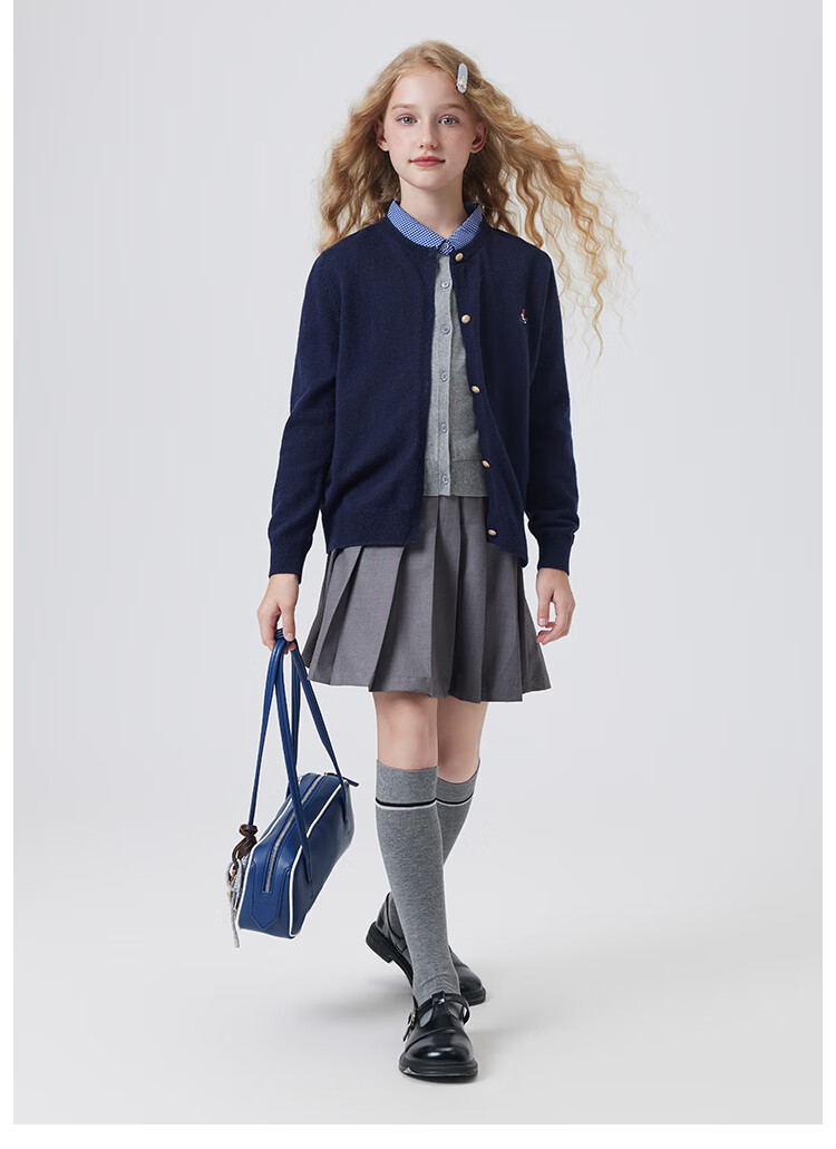 NAVIGARE儿童毛衣开衫秋装新款中大童外套洋气上衣甜美学院风圆领针织衫 【优雅小圆领】浅驼 140