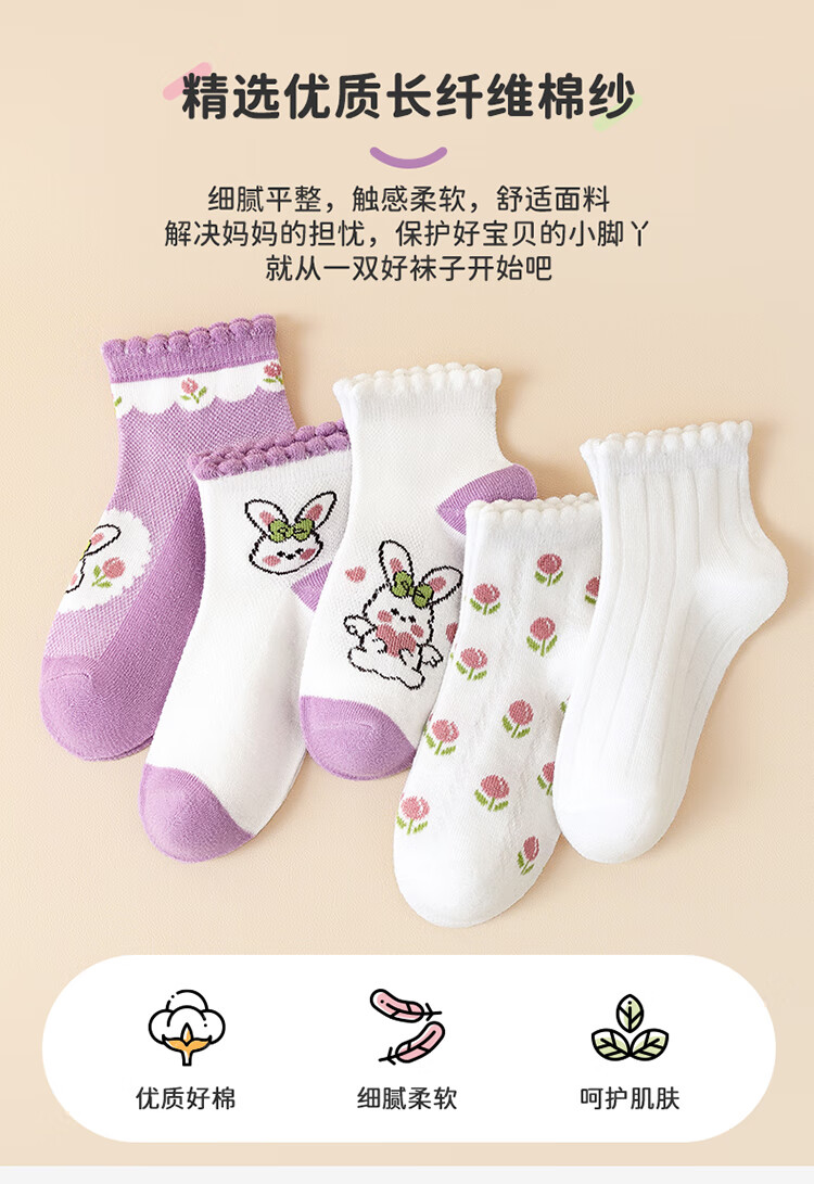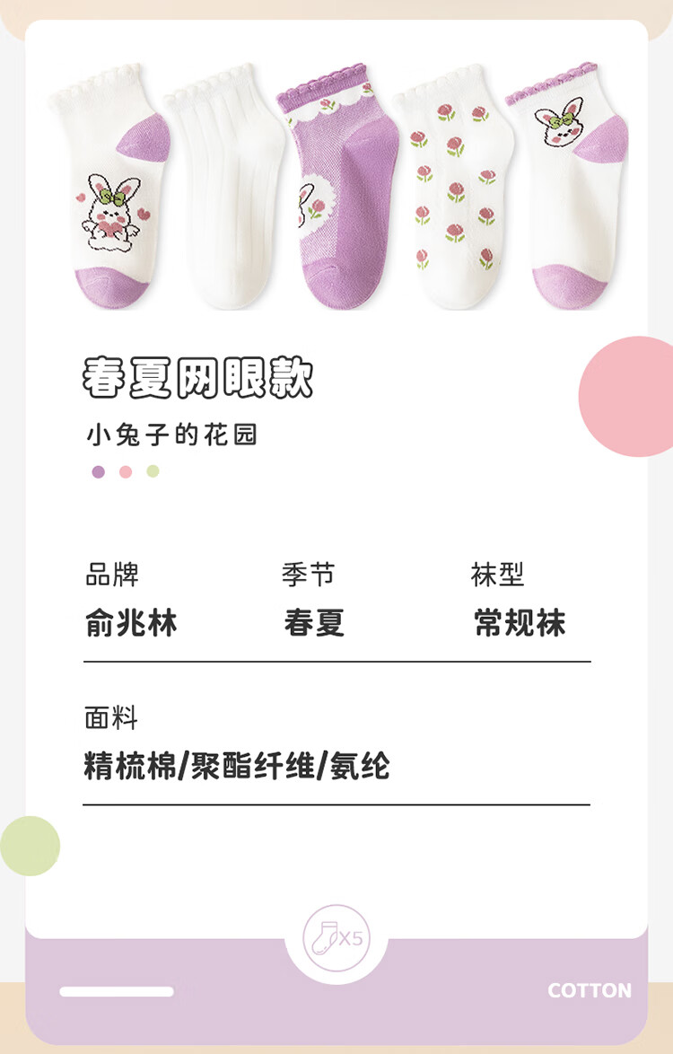俞兆林女童袜子夏季薄款儿童网眼袜公主卡通中大童女孩透气棉袜宝宝童袜