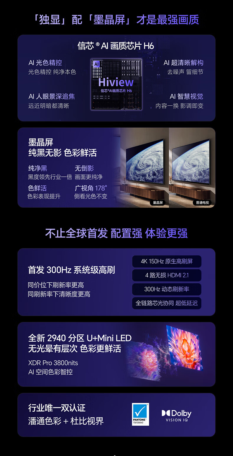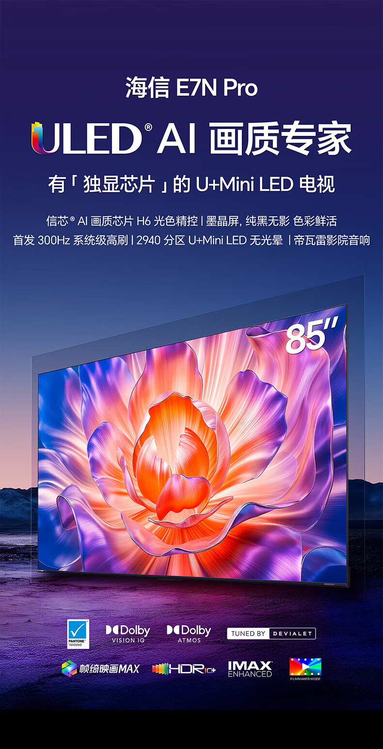 海信电视85E7N Pro 85英寸 信芯芯片H6 U+Mini LED 墨晶屏 300Hz高刷DeepSeekAl智能E7N-PRO 85英寸 85英寸