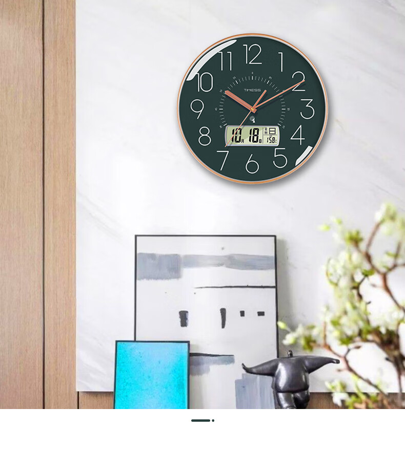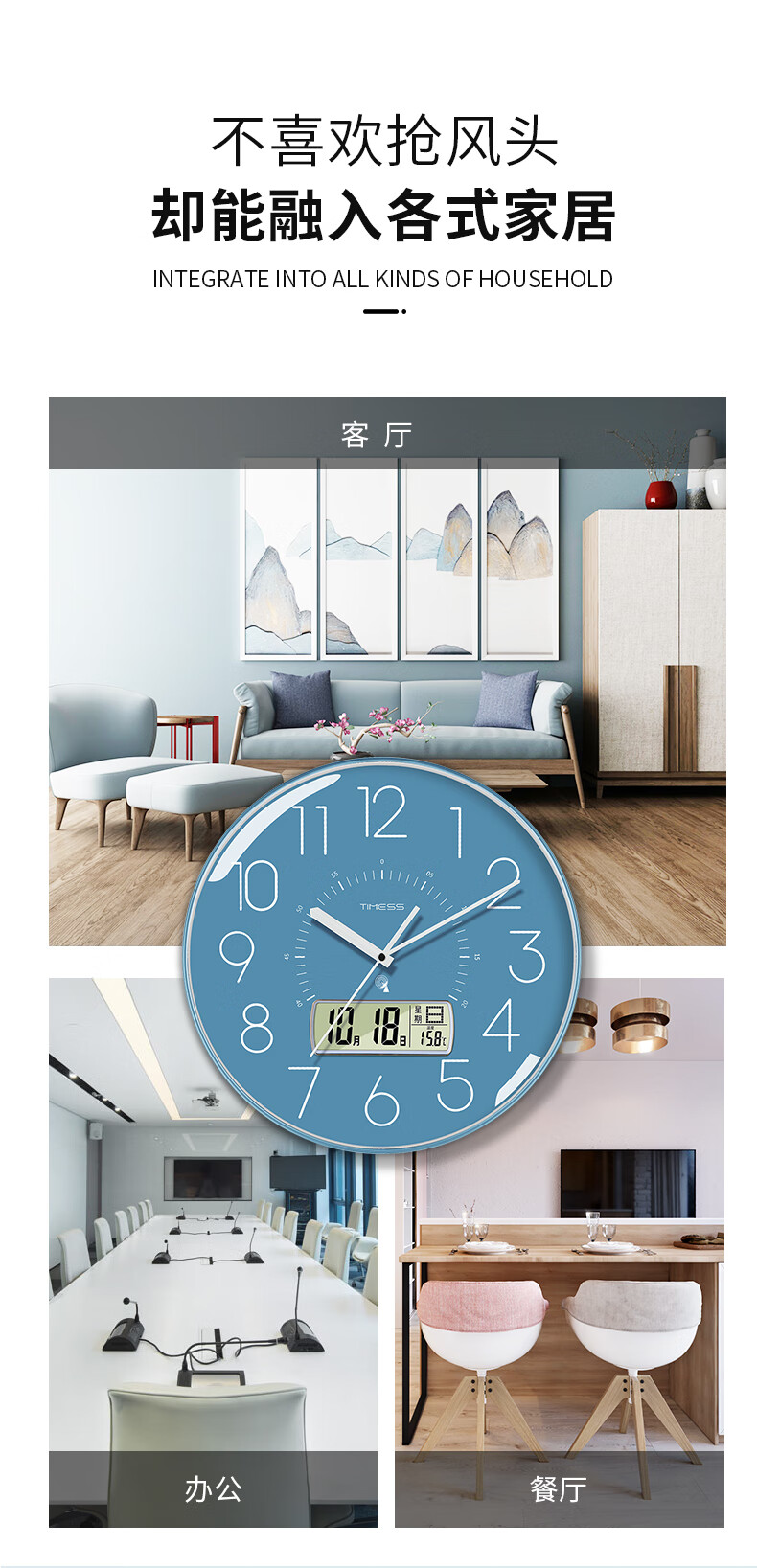 Timess 挂钟 电波钟客厅时钟万年历钟表时尚简约北欧表挂墙智能自动对时