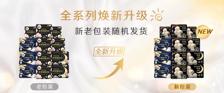 高洁丝【纯棉NO.1】阳光烘烘&海岛棉卫生巾12包107片日夜组合姨妈巾自营