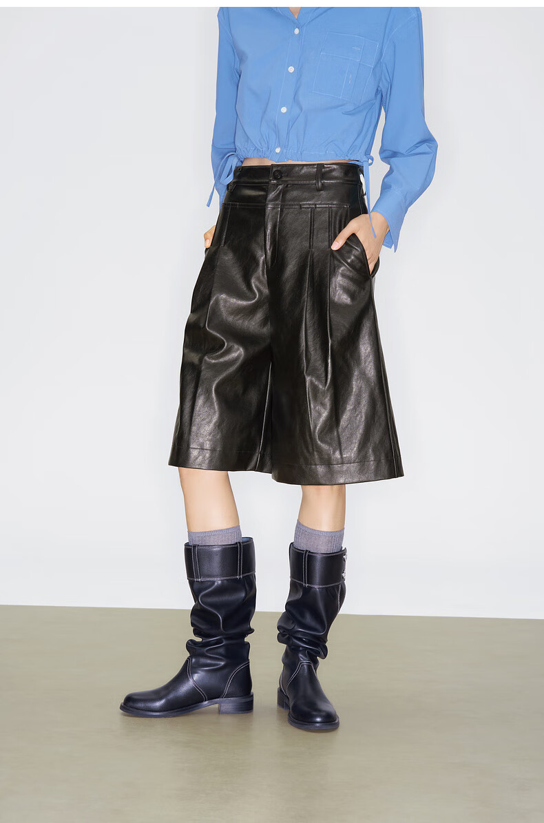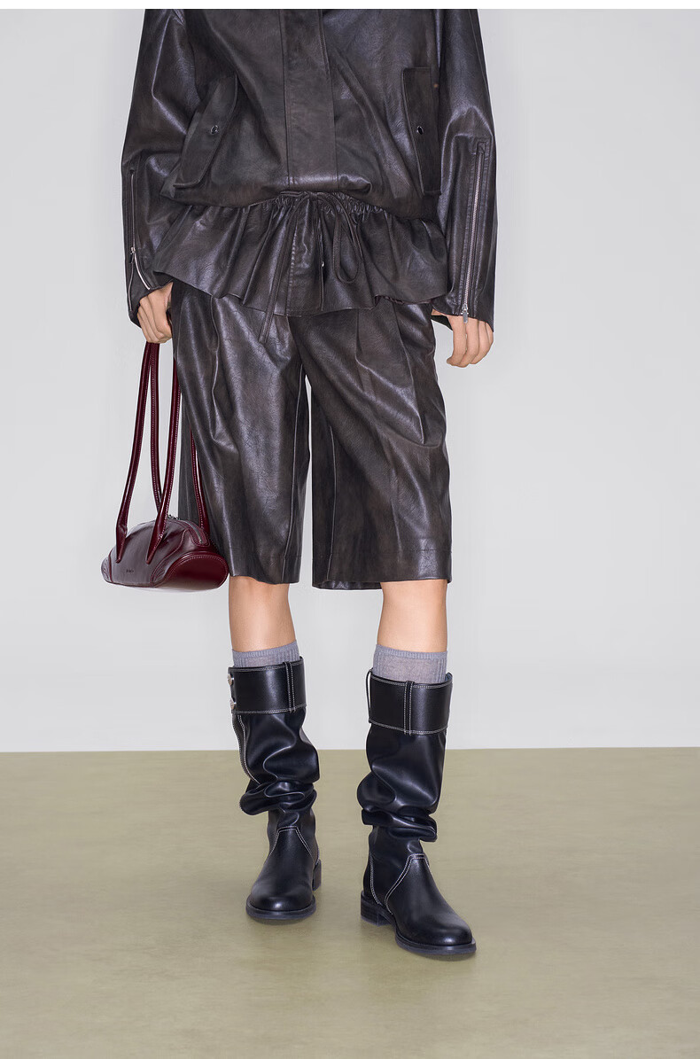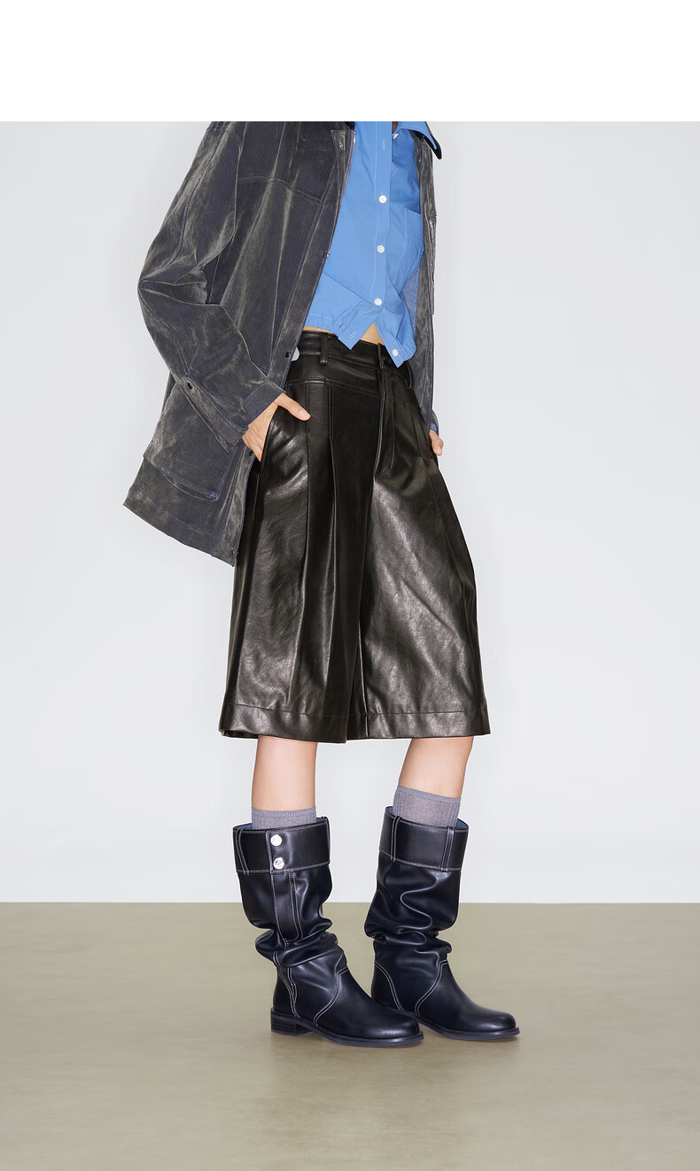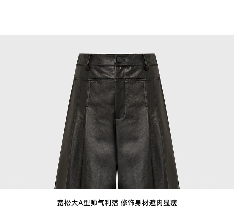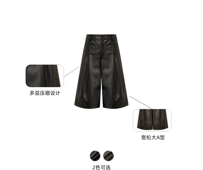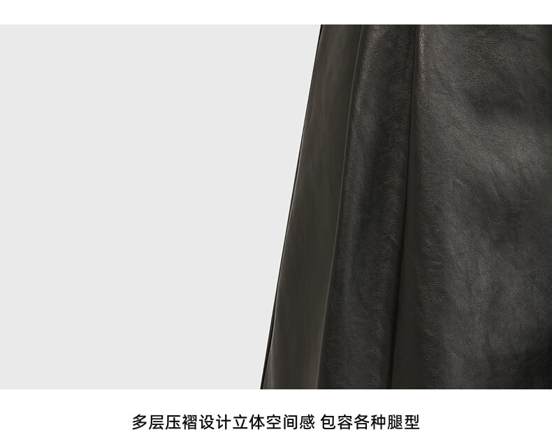 lost in echo2025早秋新款帅气宽松显瘦压褶A型宽松中长PU裤子女 褐色 L