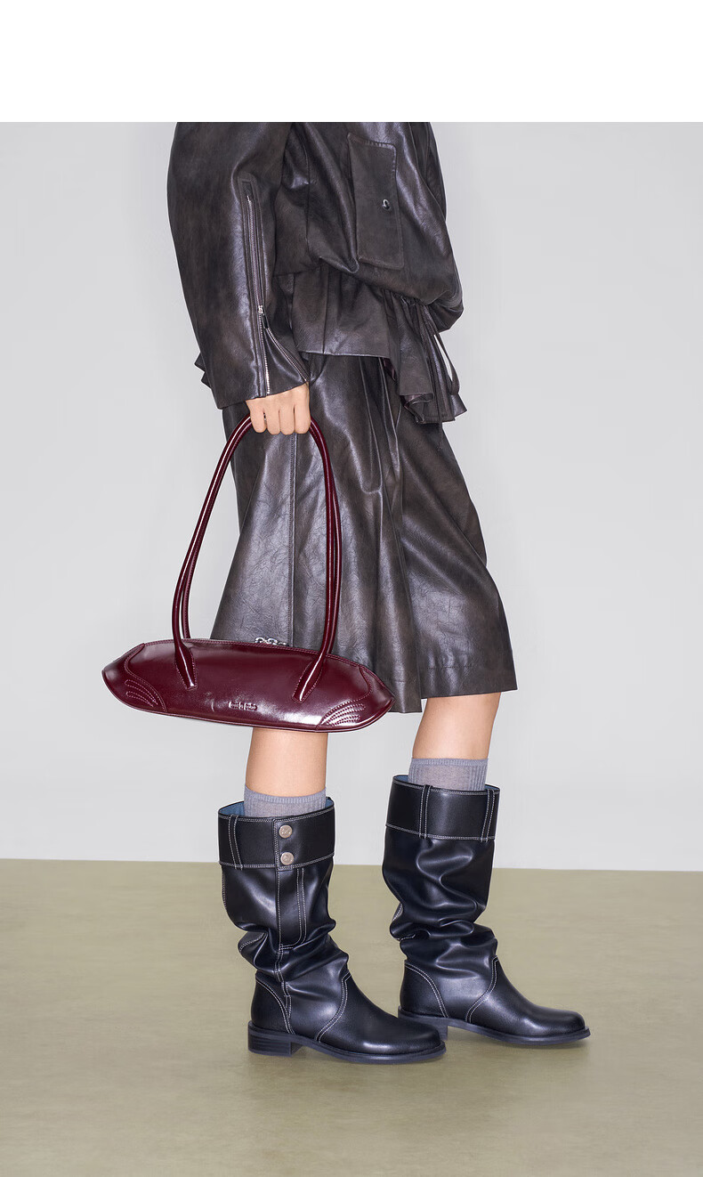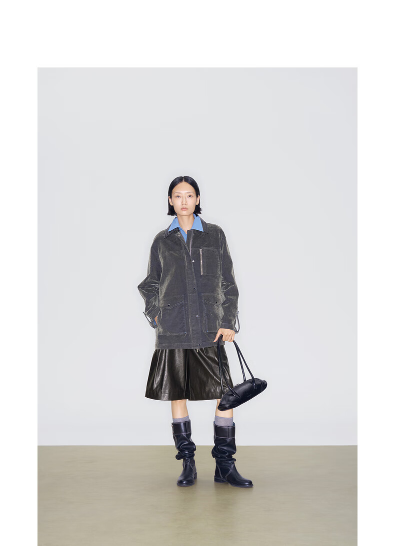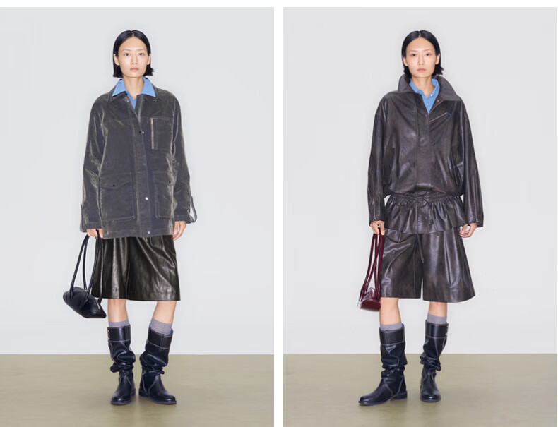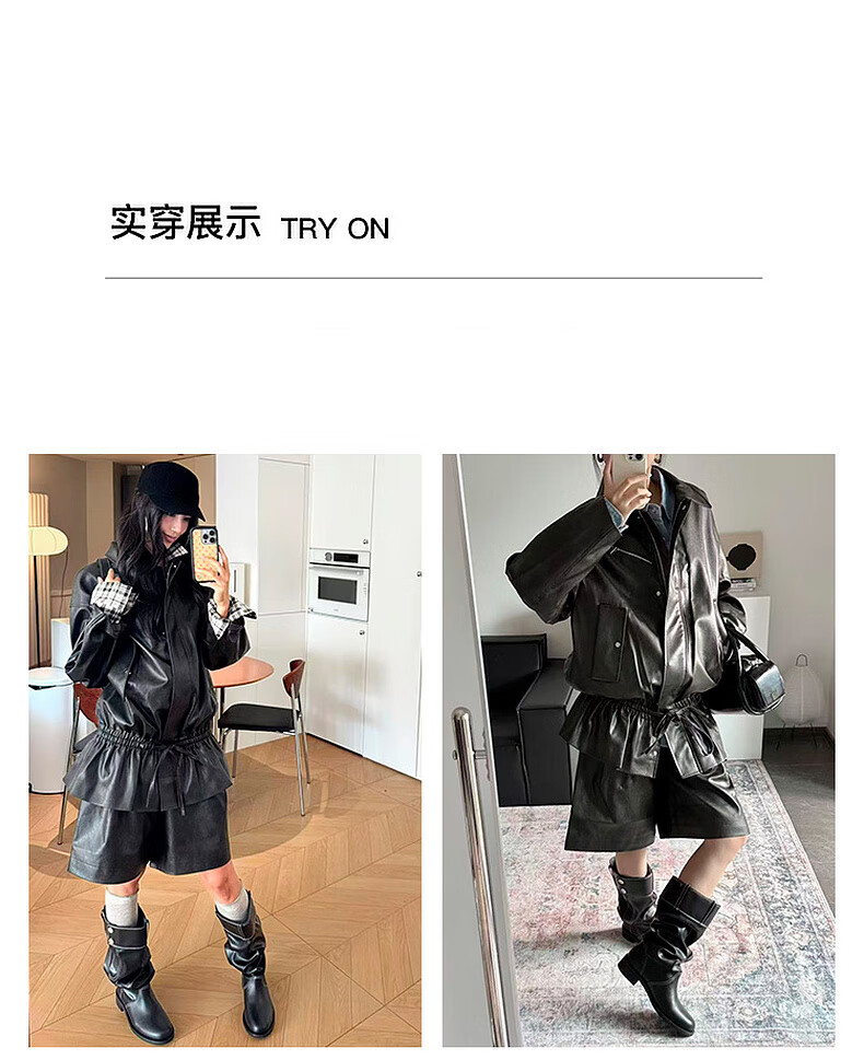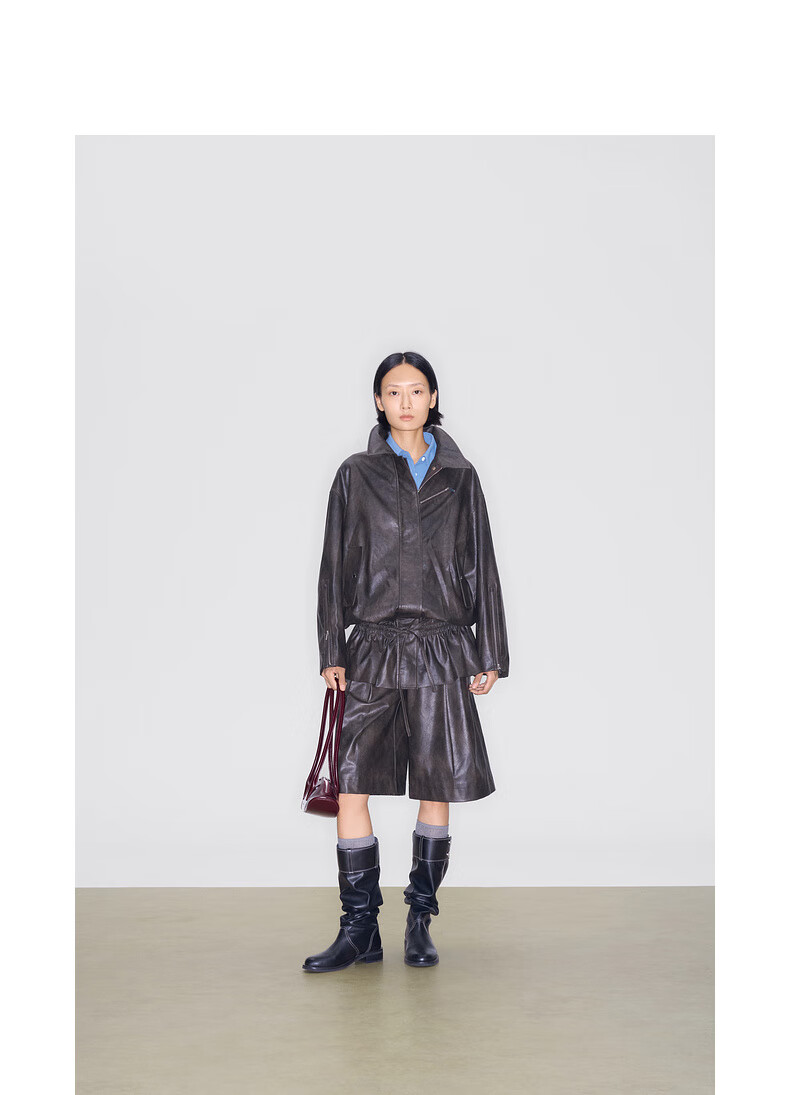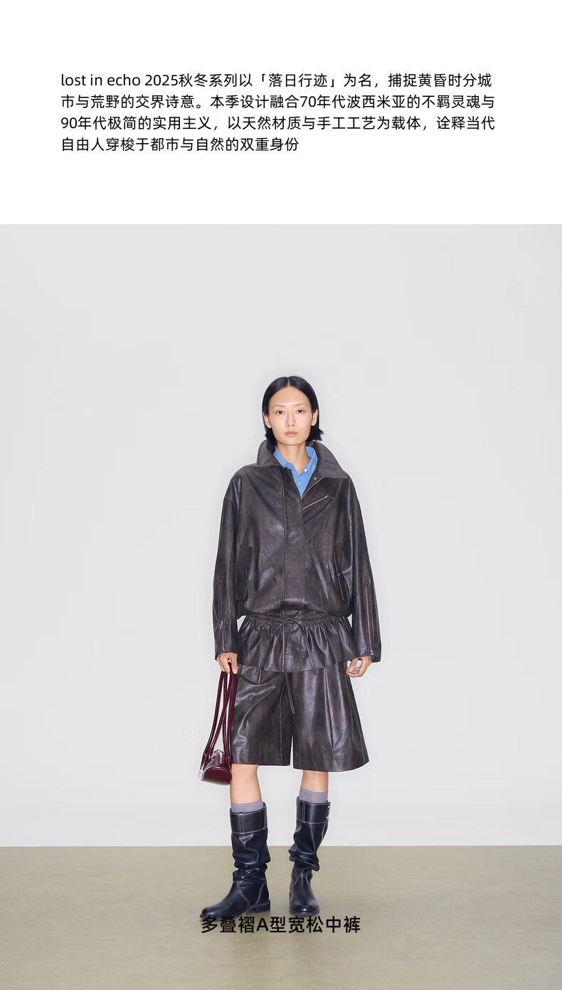 lost in echo2025早秋新款帅气宽松显瘦压褶A型宽松中长PU裤子女 褐色 L