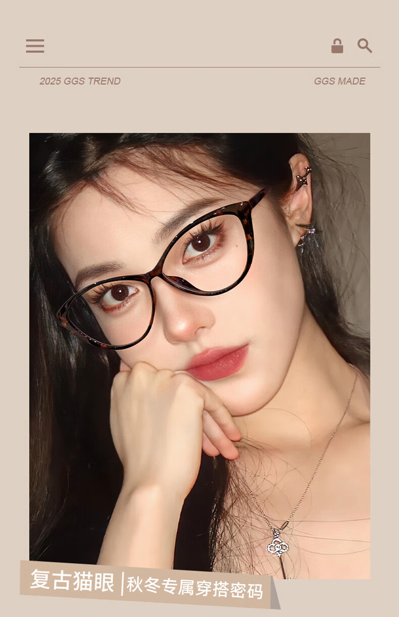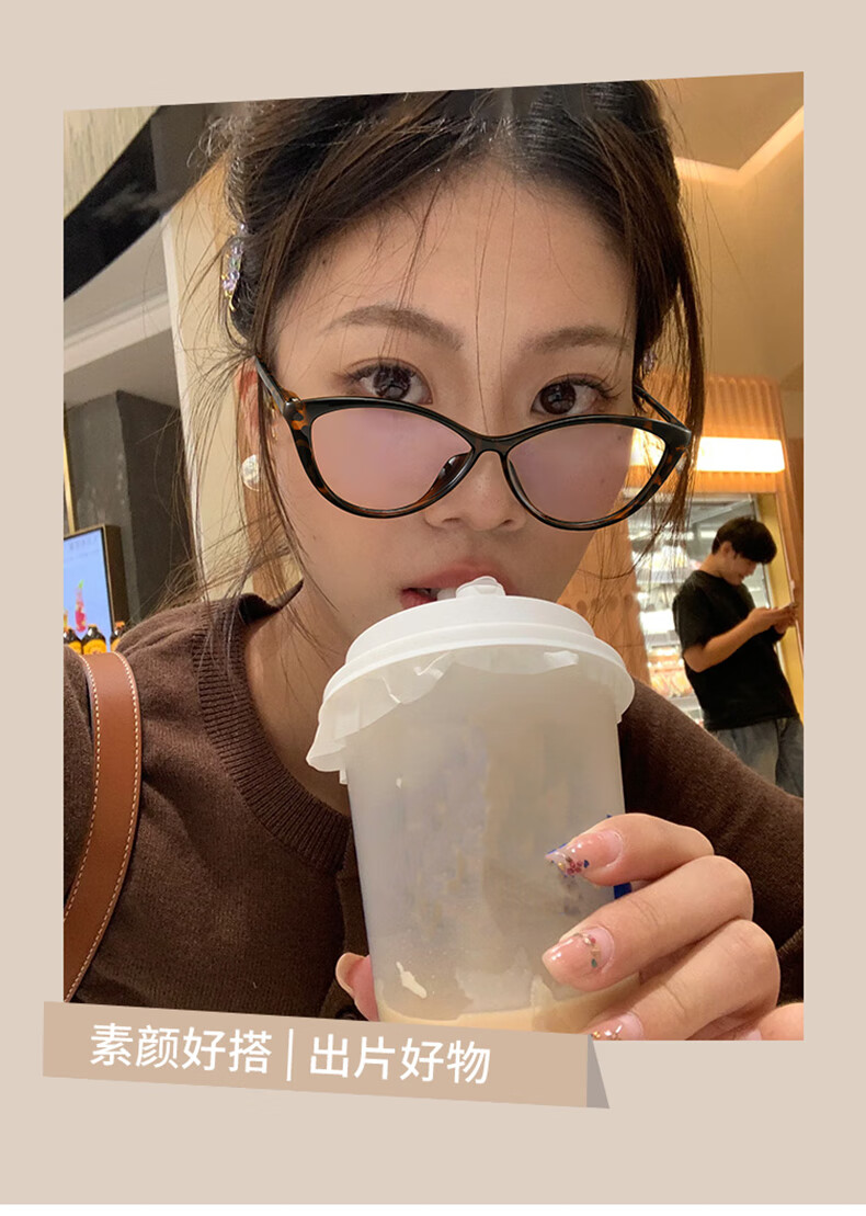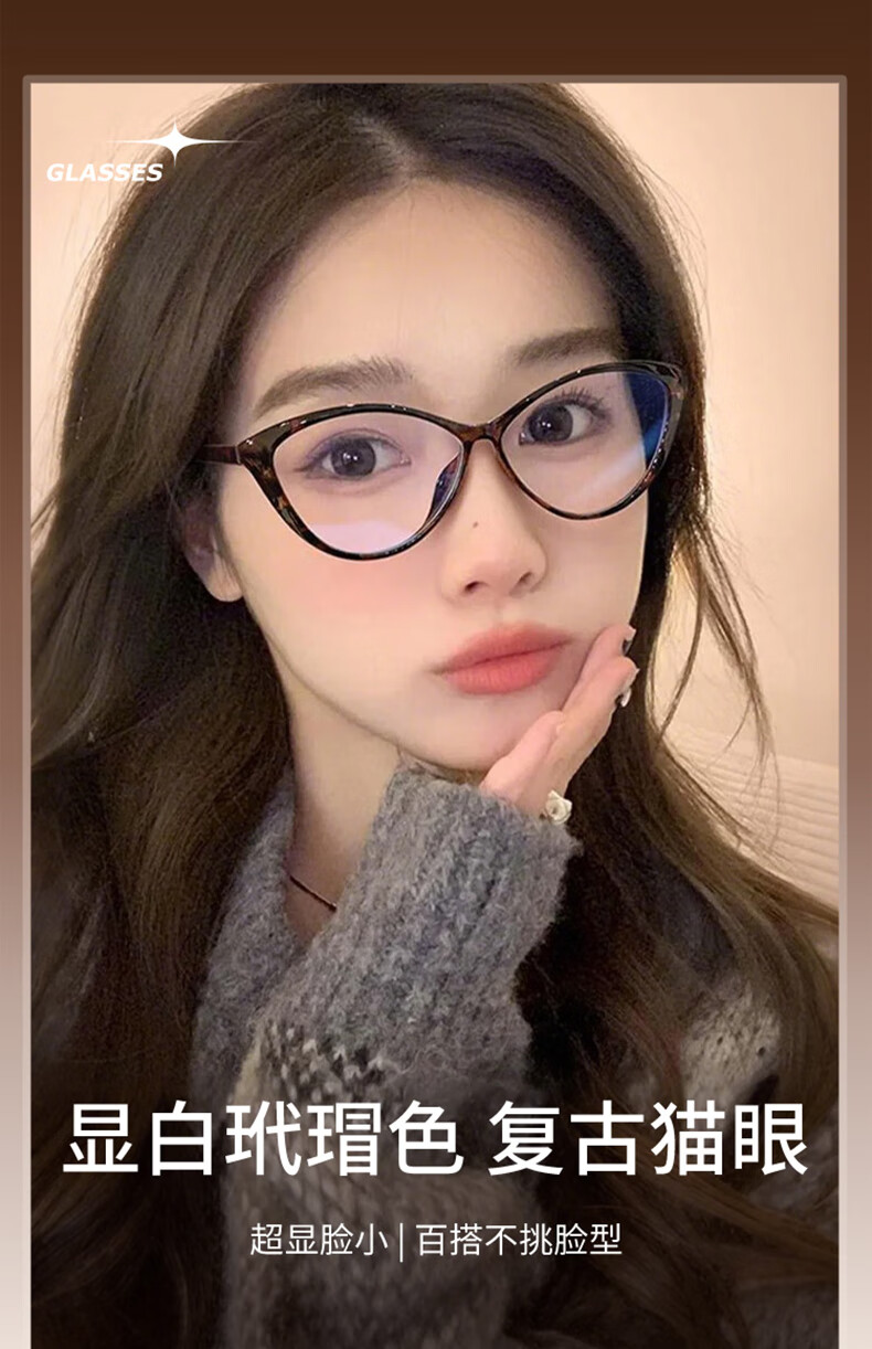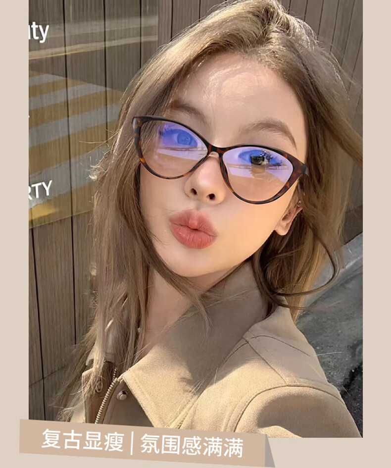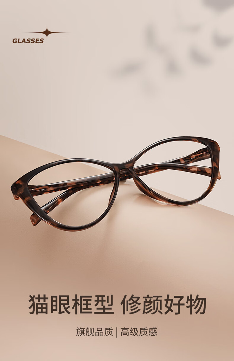 GOGOSOON复古玳瑁色眼镜框女大脸显瘦猫眼豹纹镜架时尚潮流小众超轻平光镜