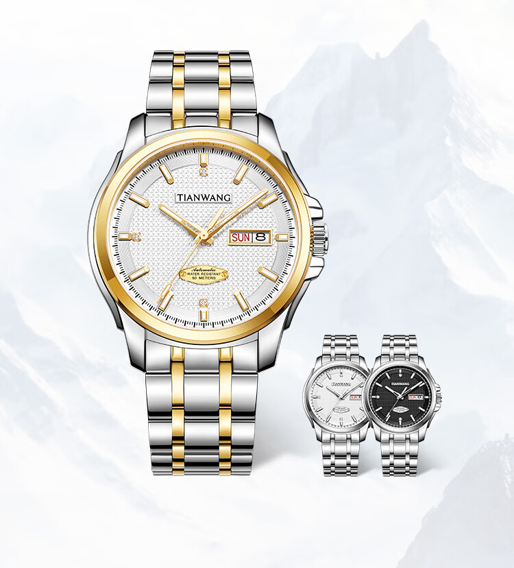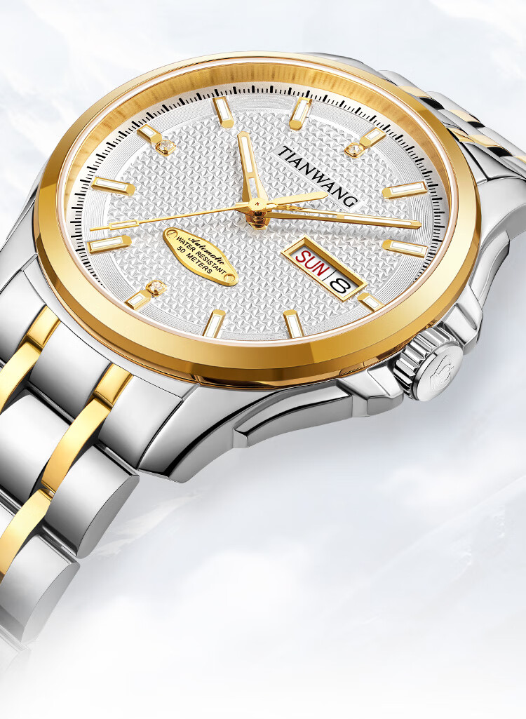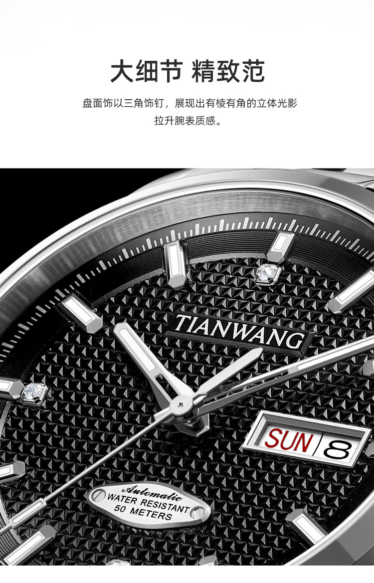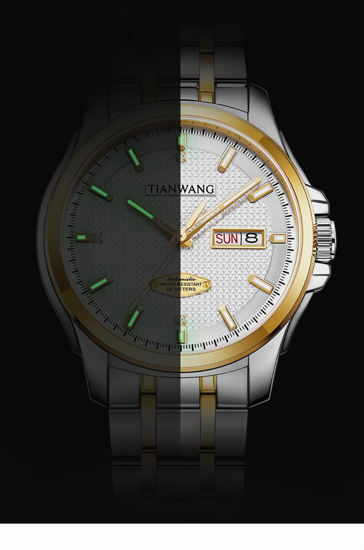 天王(TIAN WANG)男士手表生日礼物钢带机械表双日历夜光腕表GS51507T.DD.T.S