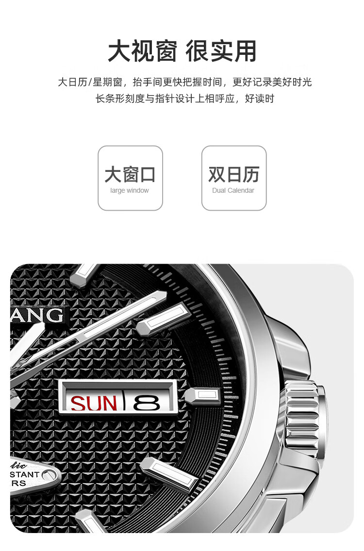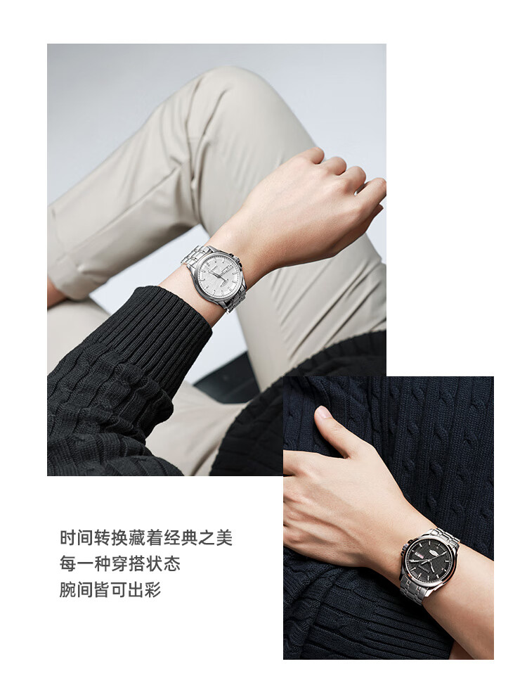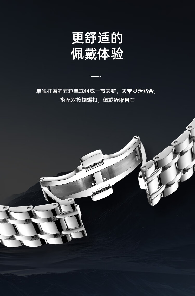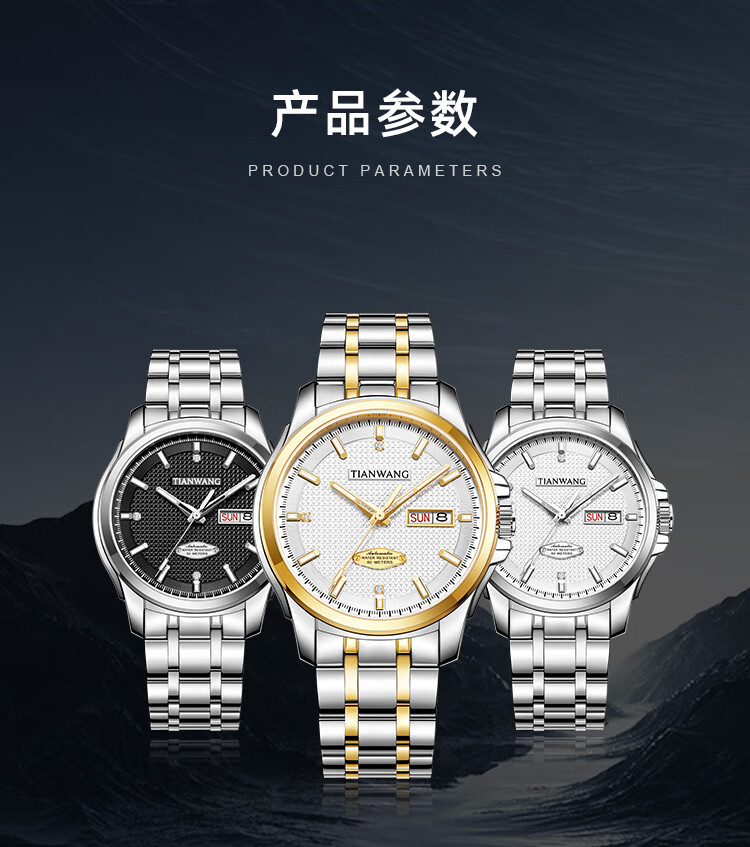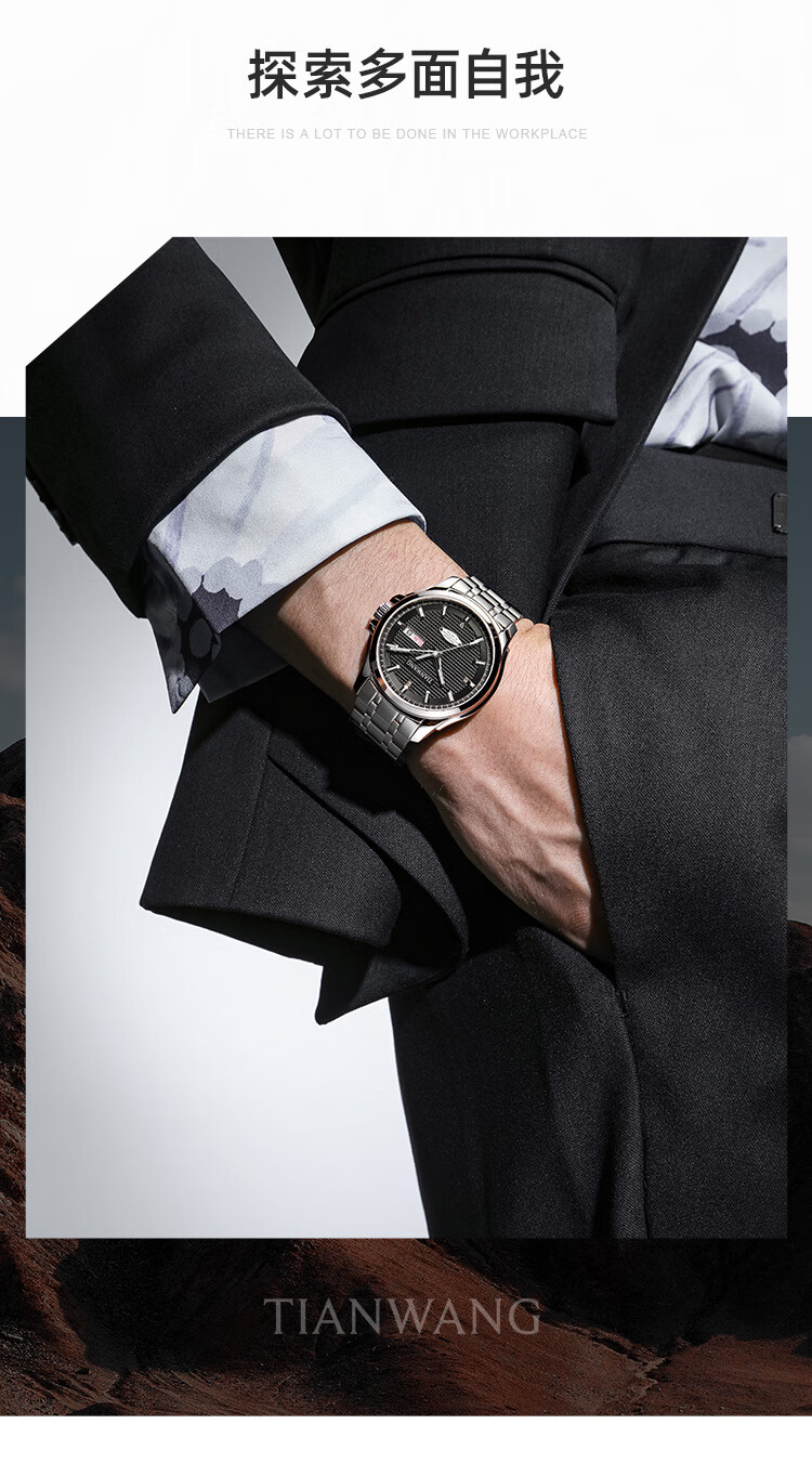 天王(TIAN WANG)男士手表生日礼物钢带机械表双日历夜光腕表GS51507T.DD.T.S