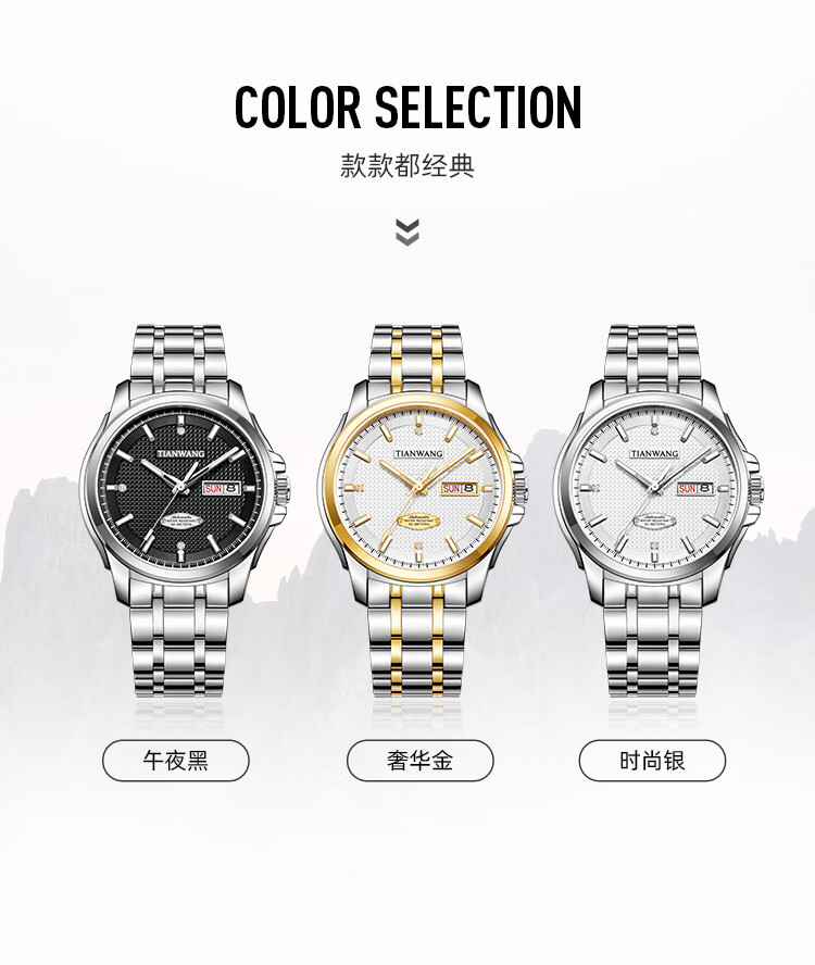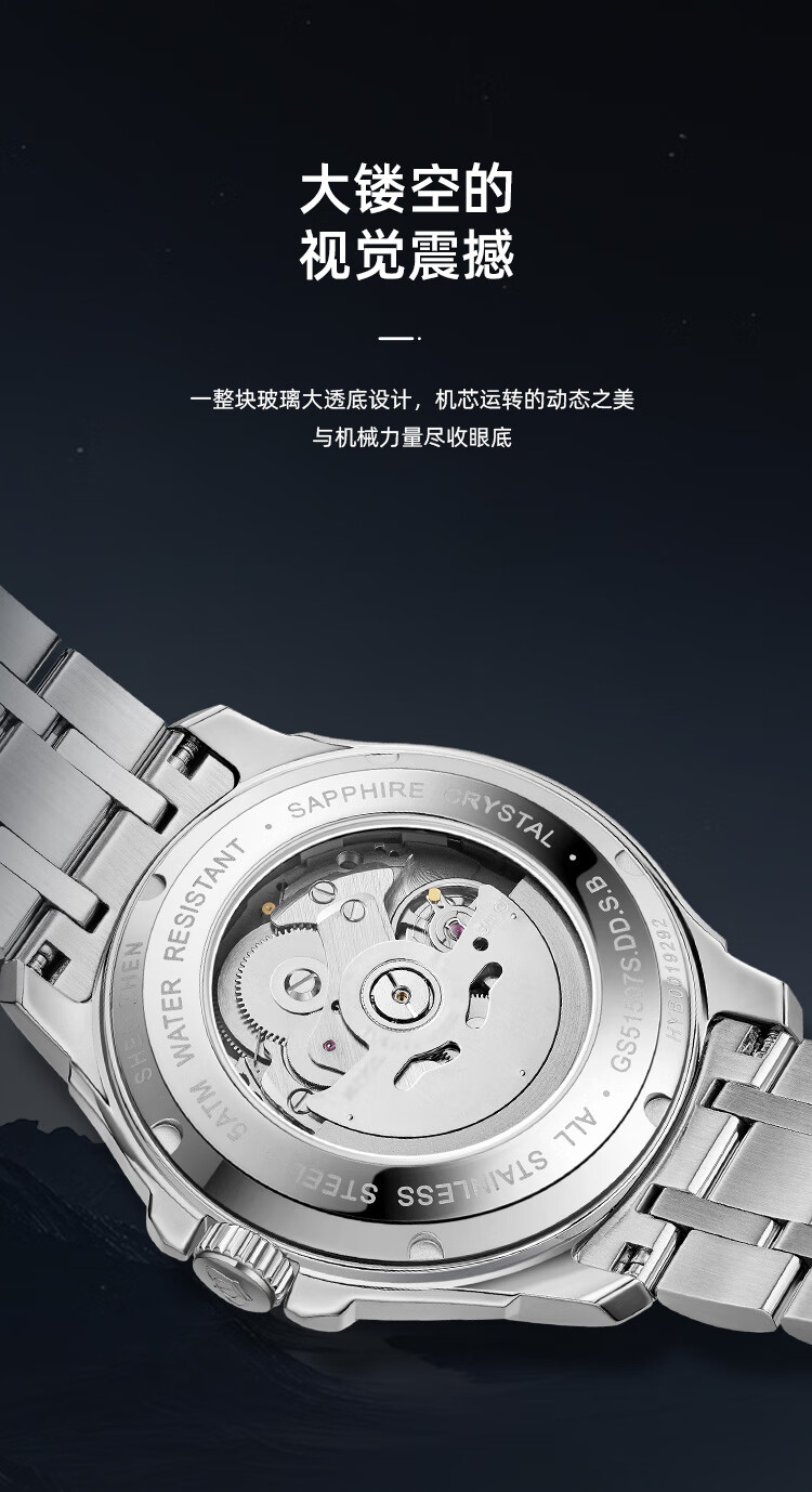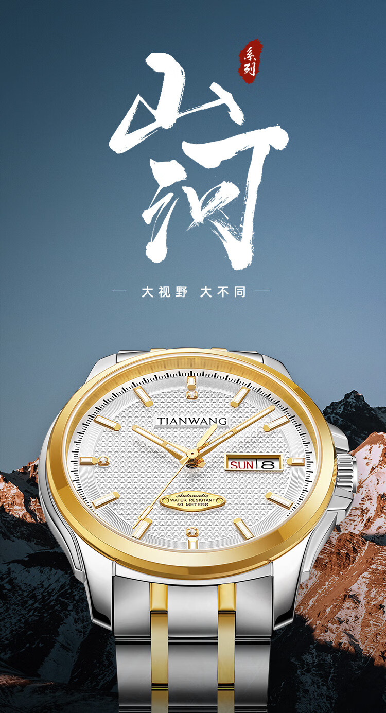 天王(TIAN WANG)男士手表自动机械表皮带蝴蝶扣防水表生日礼物GS51363S.D.LB.W
