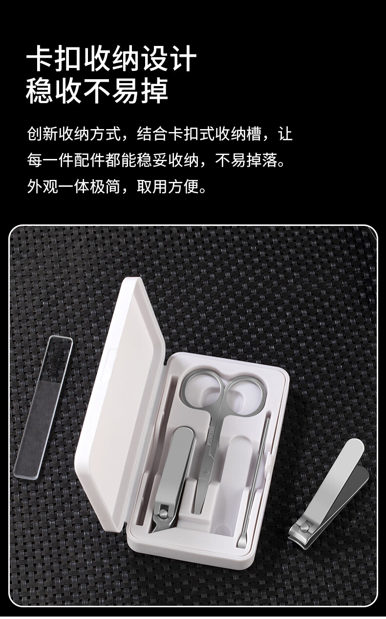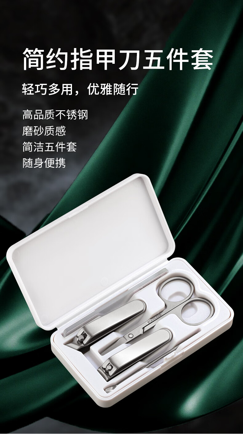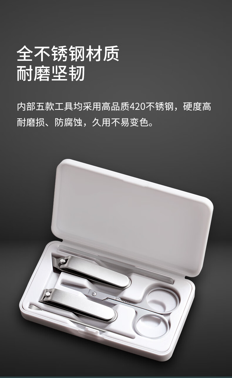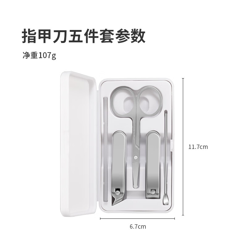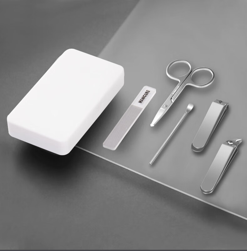 利皇作指甲刀套装工具5件套简约款指甲剪指甲钳挖耳勺掏耳朵修指甲锉 小米白指甲刀5件套