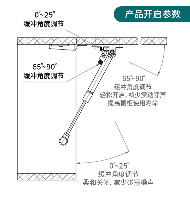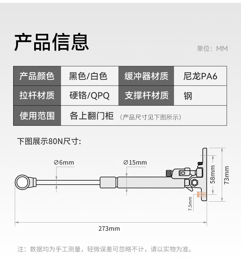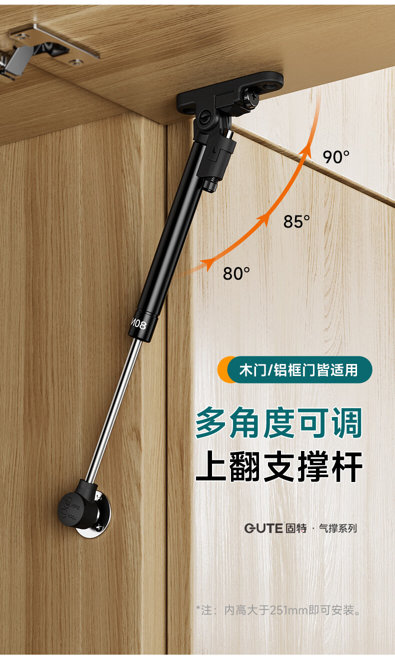 固特上翻门支撑杆液压橱柜拉杆铝框门木门双用随意停气压杆 上翻门白色80N