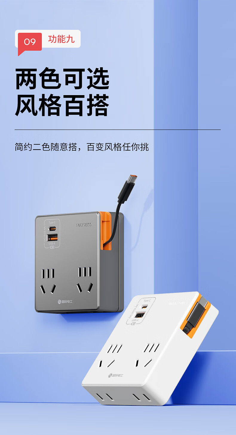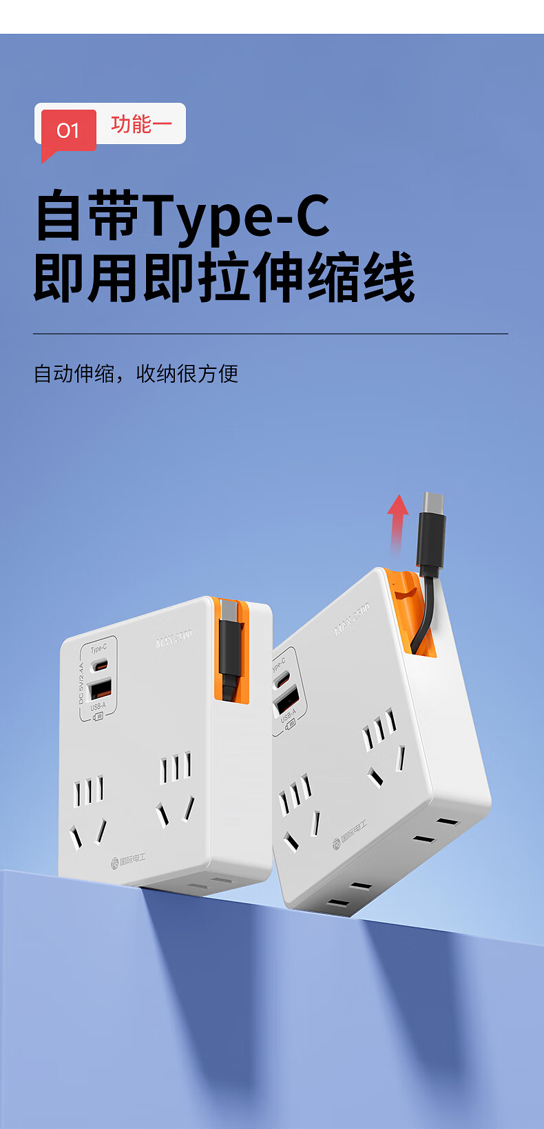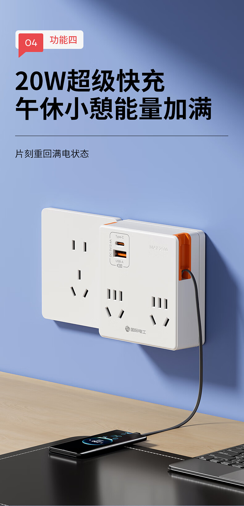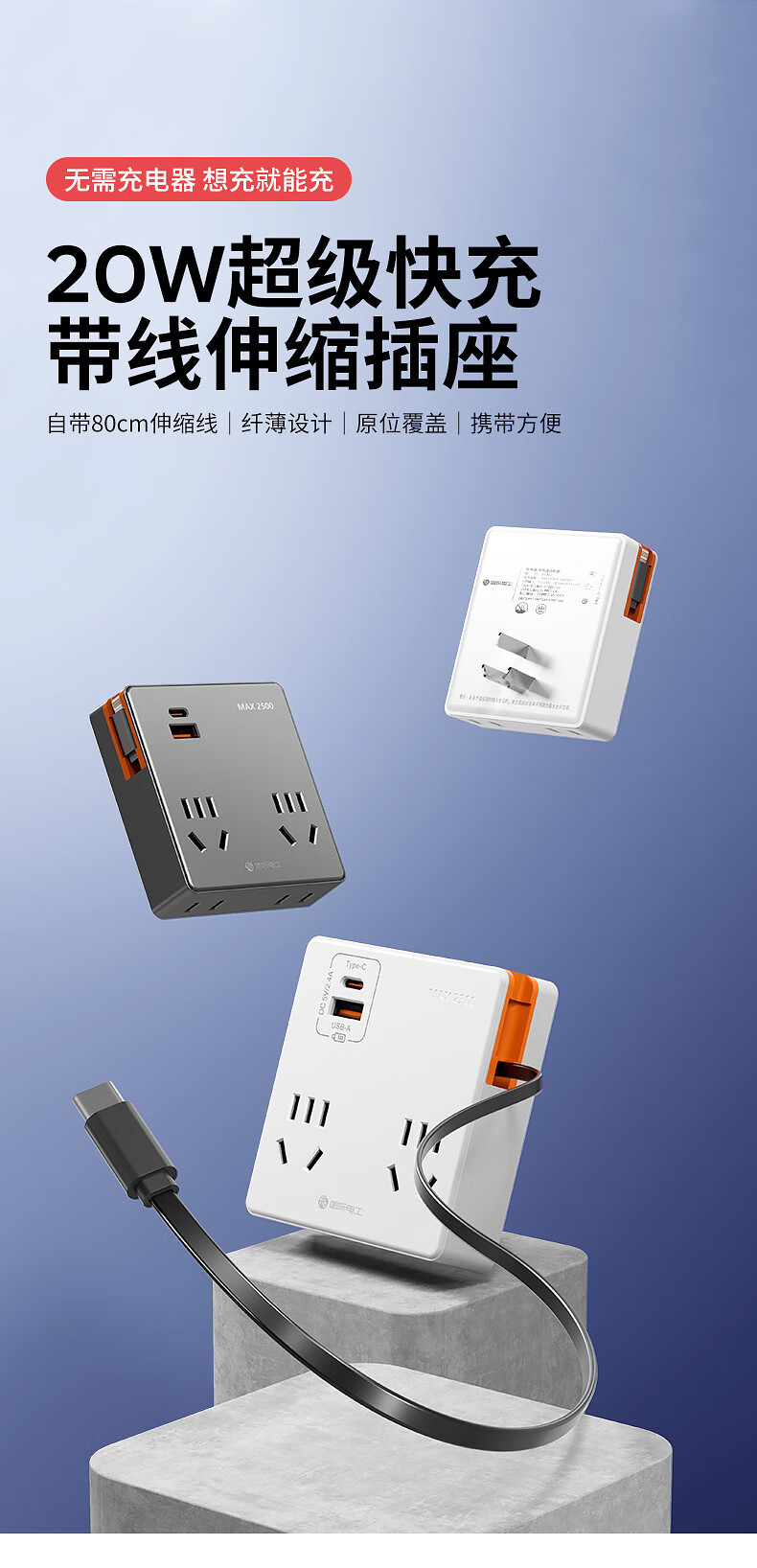 FDD国际电工20W快充带伸缩线86型直插转换器插座多功能一转四插板二合一接口 带C伸缩线一转四【A+C】白色