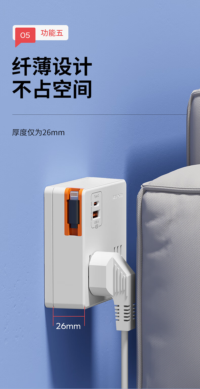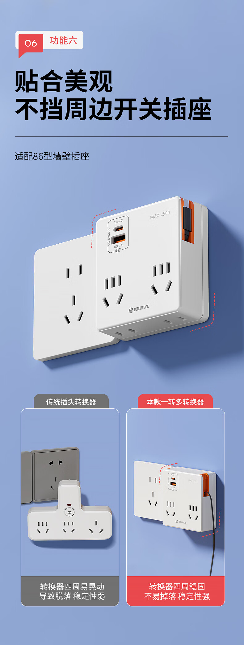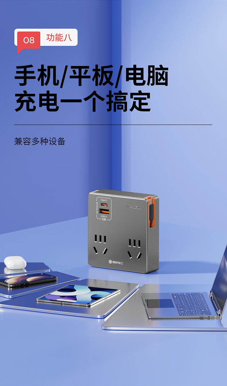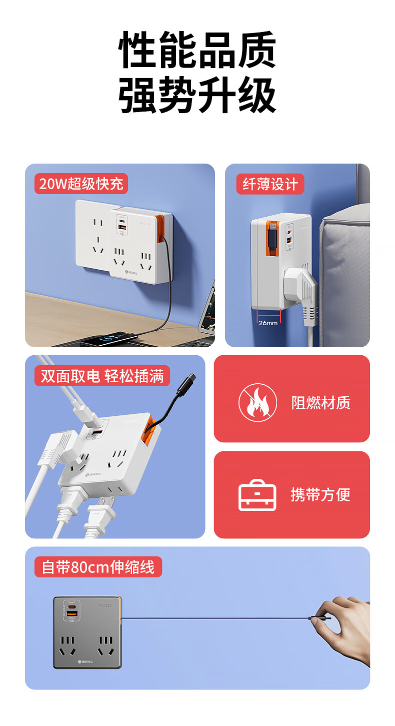 FDD国际电工20W快充带伸缩线86型直插转换器插座多功能一转四插板二合一接口 带C伸缩线一转四【A+C】白色