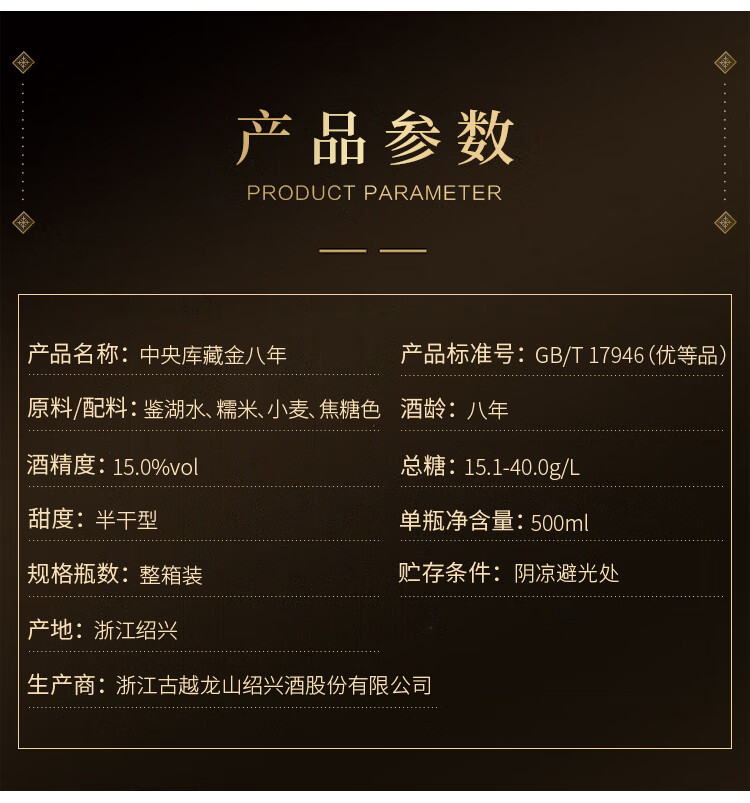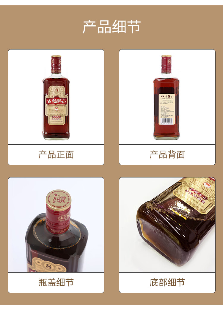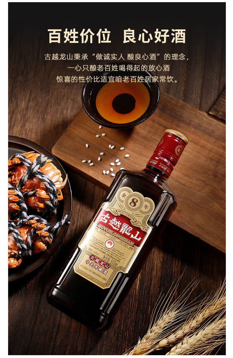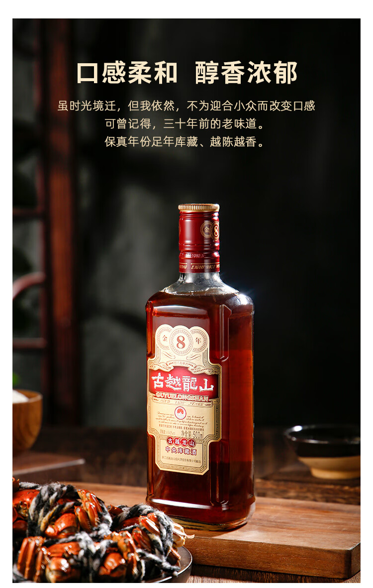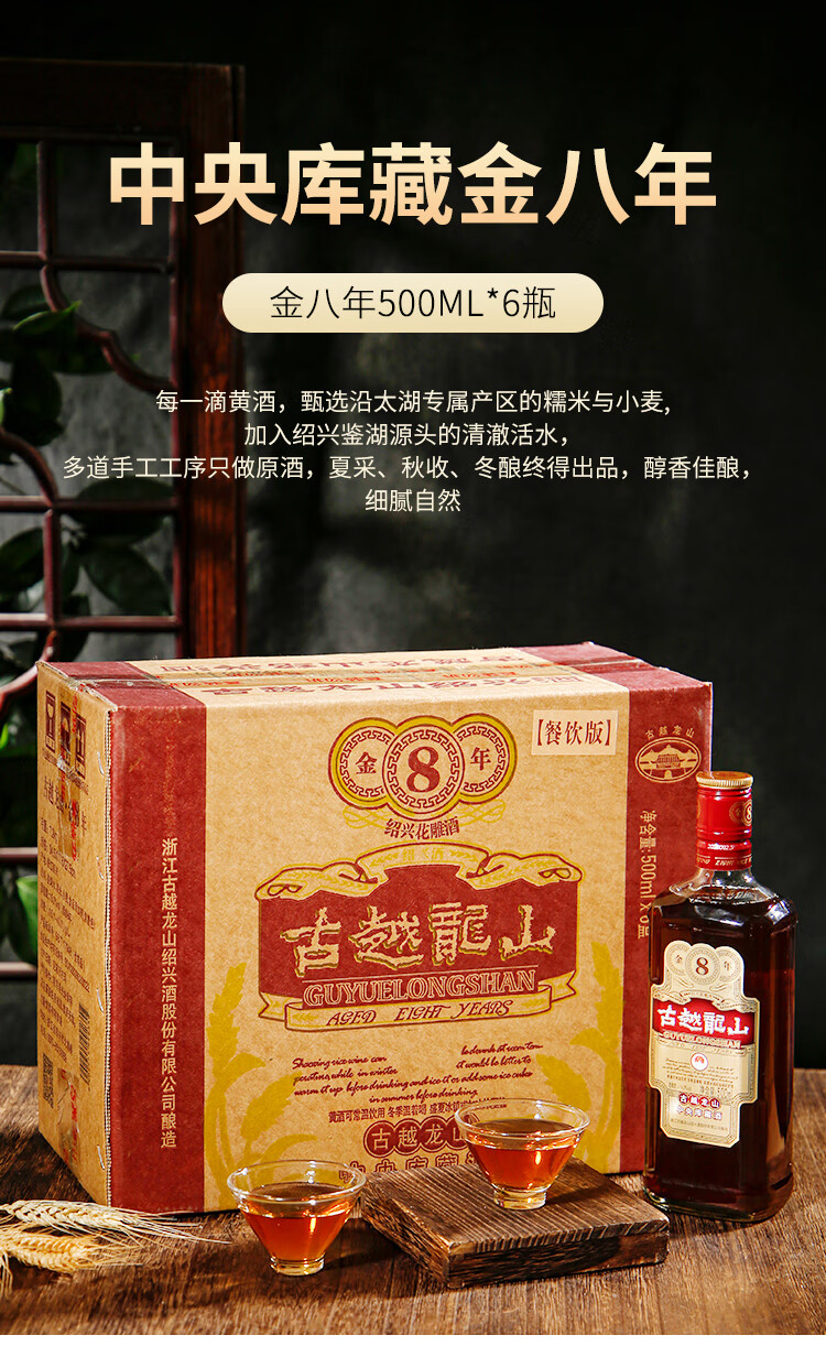 古越龙山 库藏金八年 半干型 绍兴黄酒 500ml*6瓶 整箱装