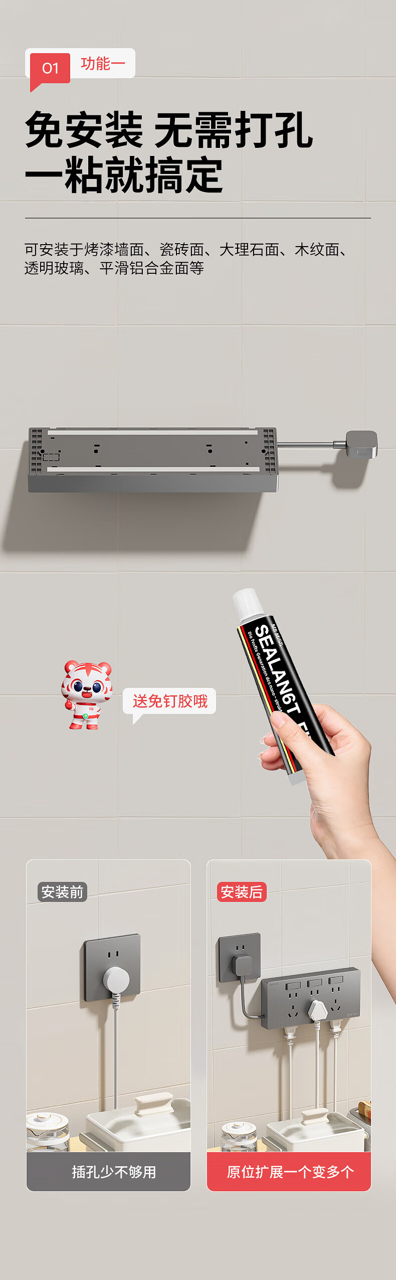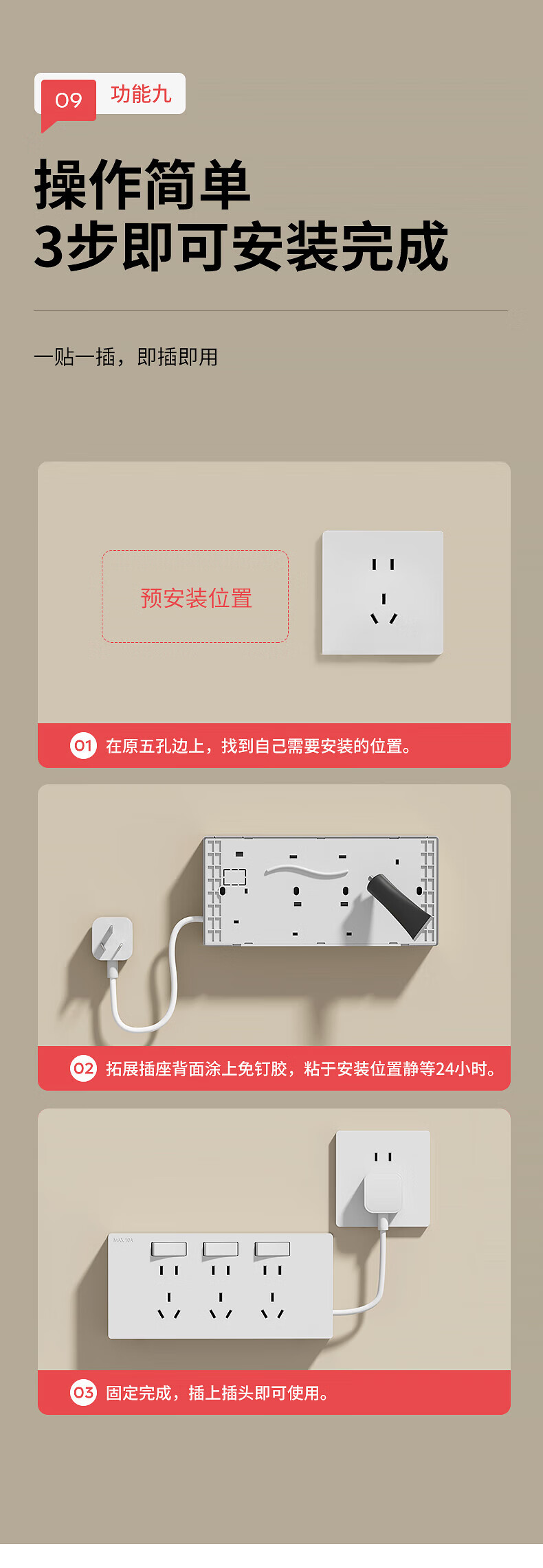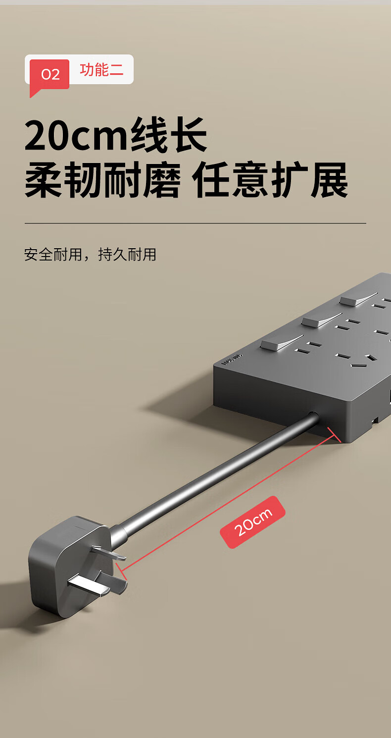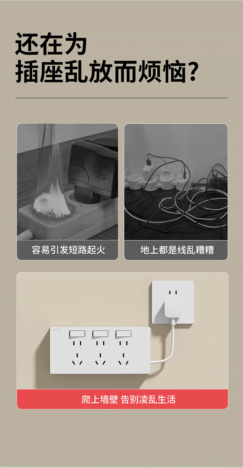 国际电工(FDD)厨房扩展插座多功能明装带线插板墙壁免打孔分控开关电源插排 白色三开21孔-向左扩展-带电源线