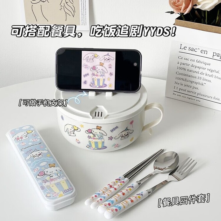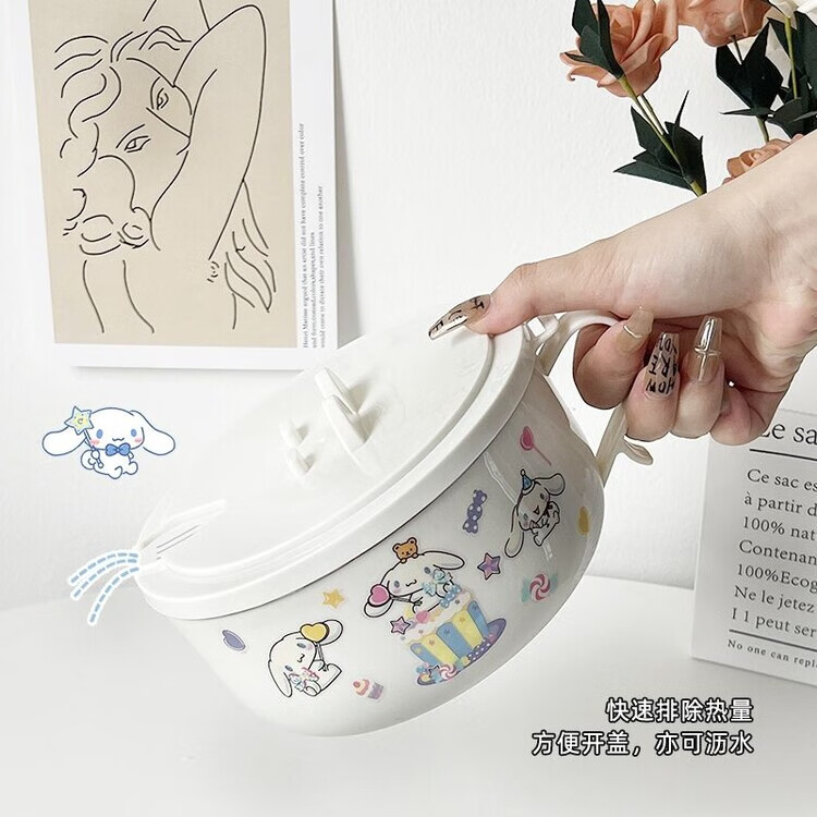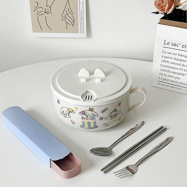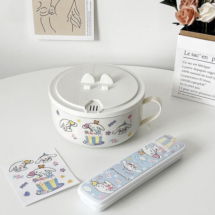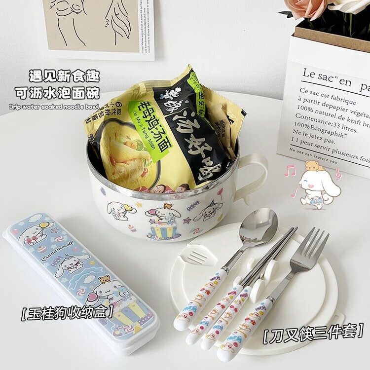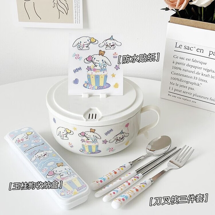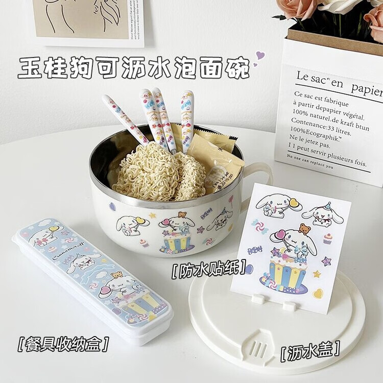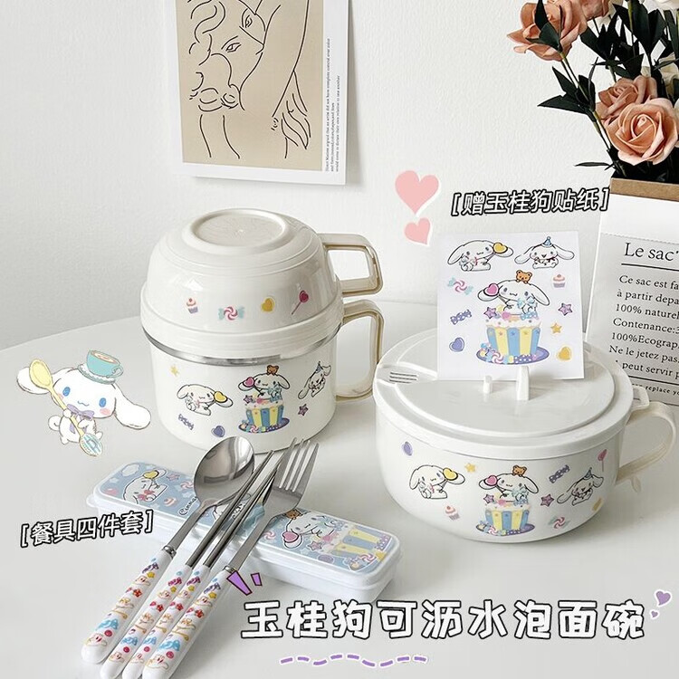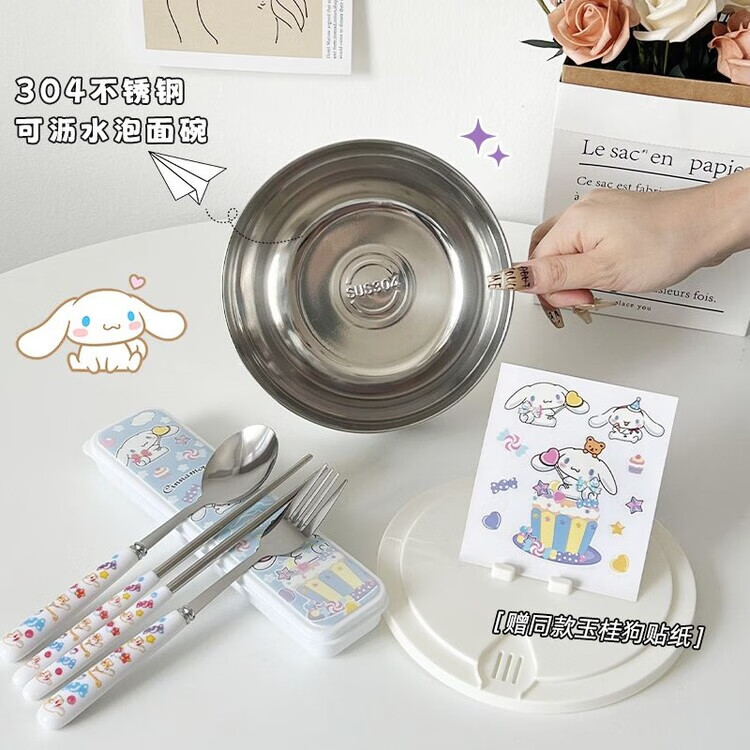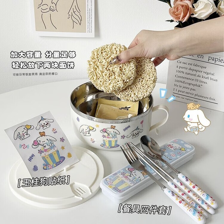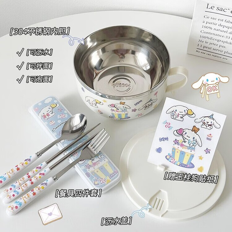 DEATKN德国玉桂狗304不锈钢泡面碗带盖ins日系大容量可沥水方便面碗学生 【304内胆】1300毫升口径17CM 碗配支架盖【贈玉桂狗贴纸】