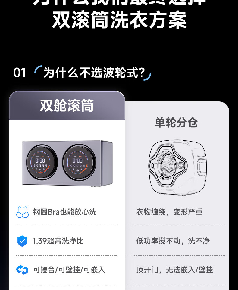KANGYAN壁挂式全自动双舱内衣洗衣机家用小型双桶洗烘一体内衣裤专用洗衣机迷你滚筒洗袜子神器懒人洗衣机 【奶咖色】双桶分区洗【桌面款】不锈钢内胆丨巴氏除菌