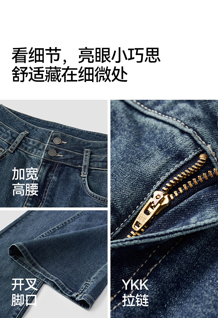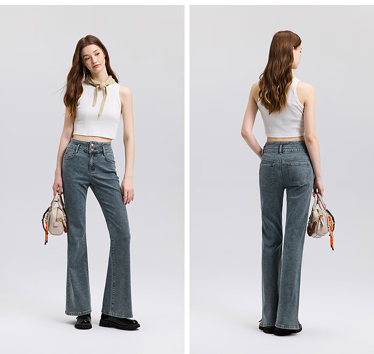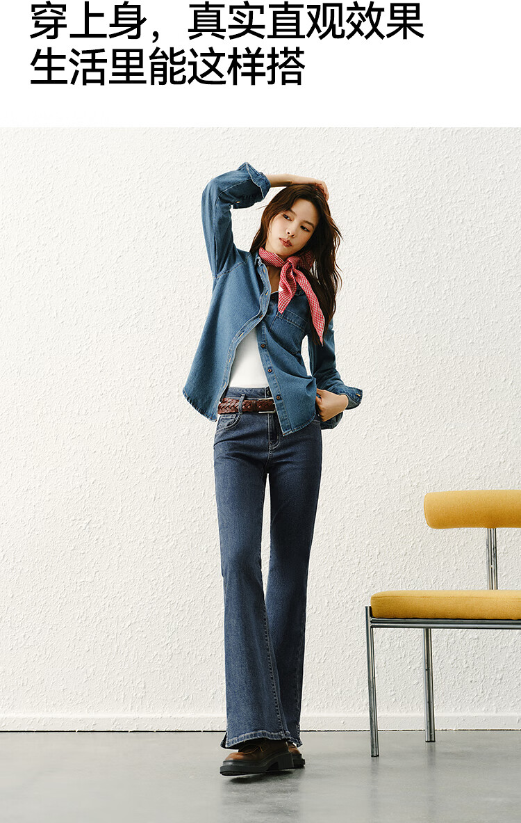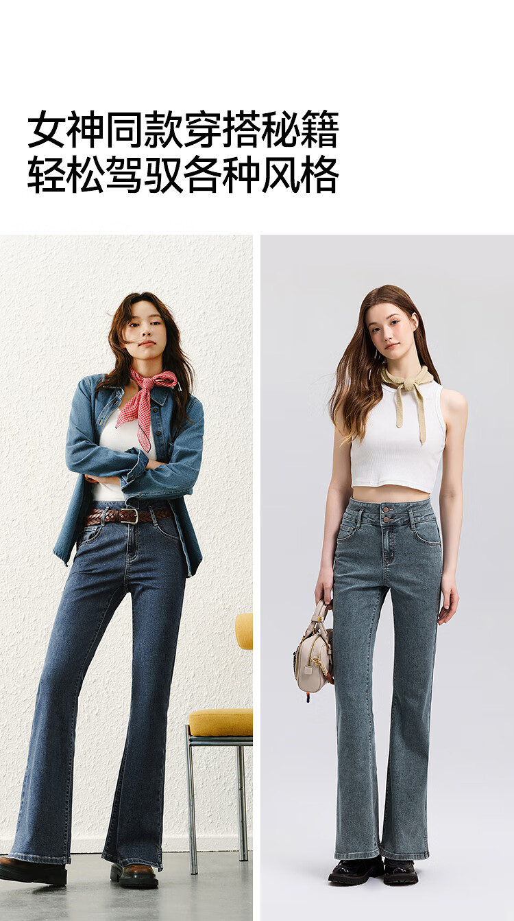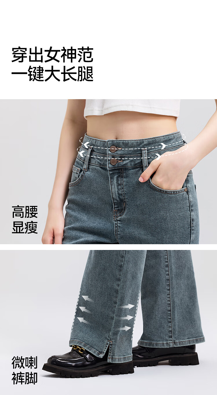森马(Semir)小黑牛|牛仔裤女高腰开叉长裤2025春森柔牛仔喇叭裤109125124007
