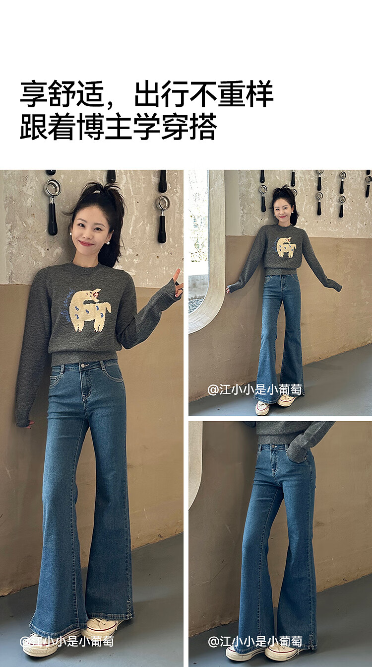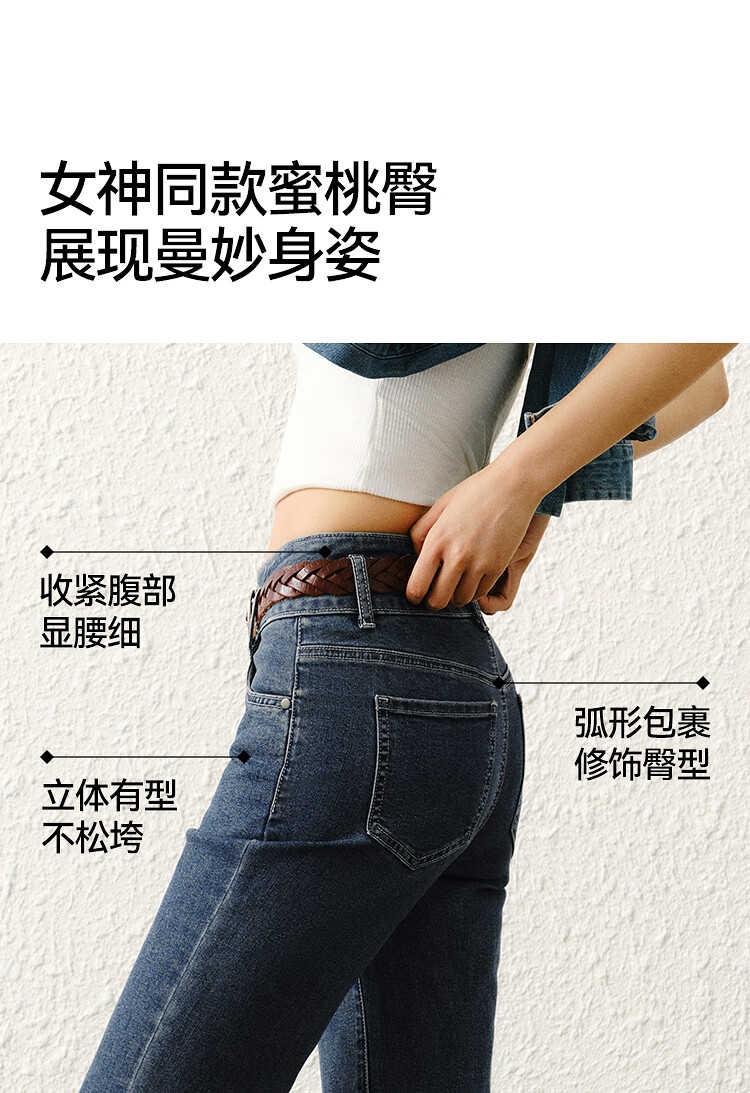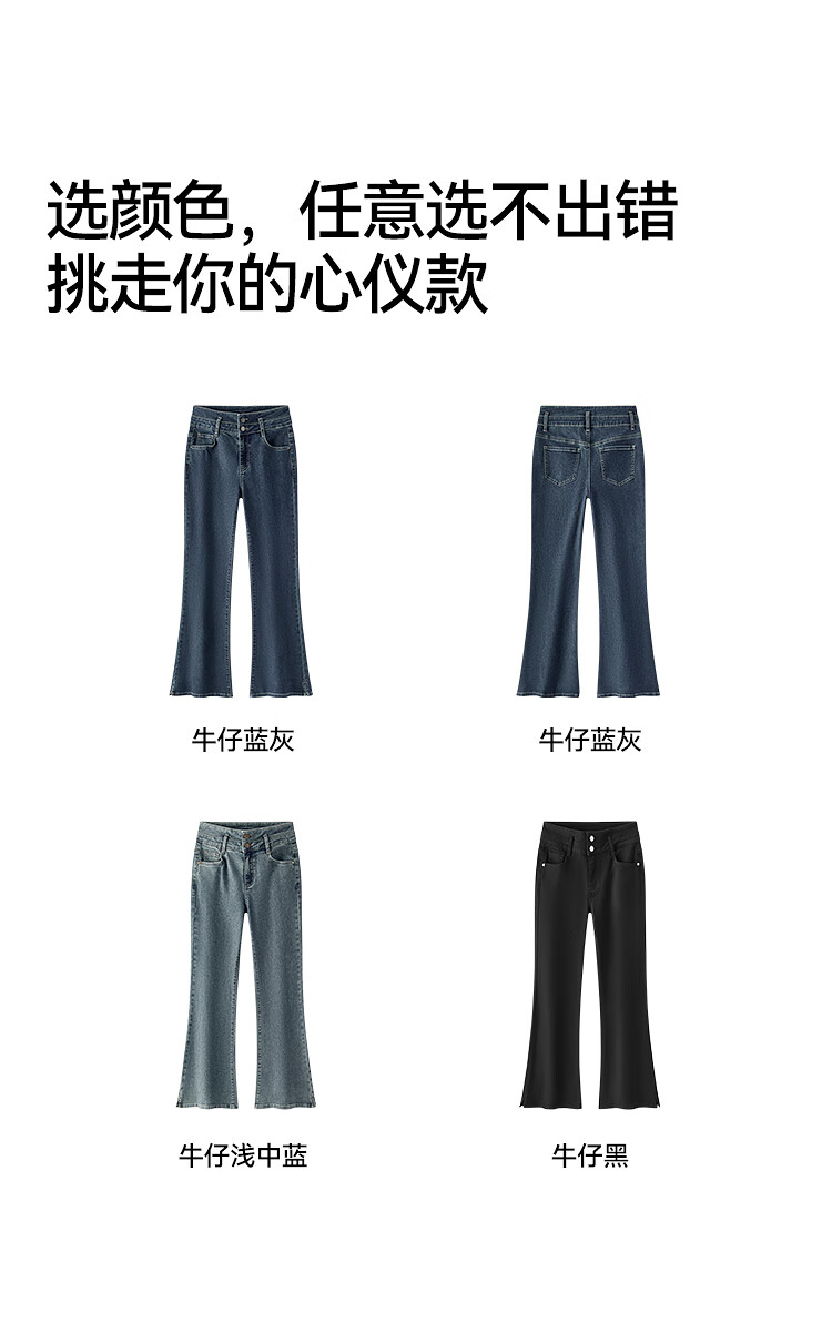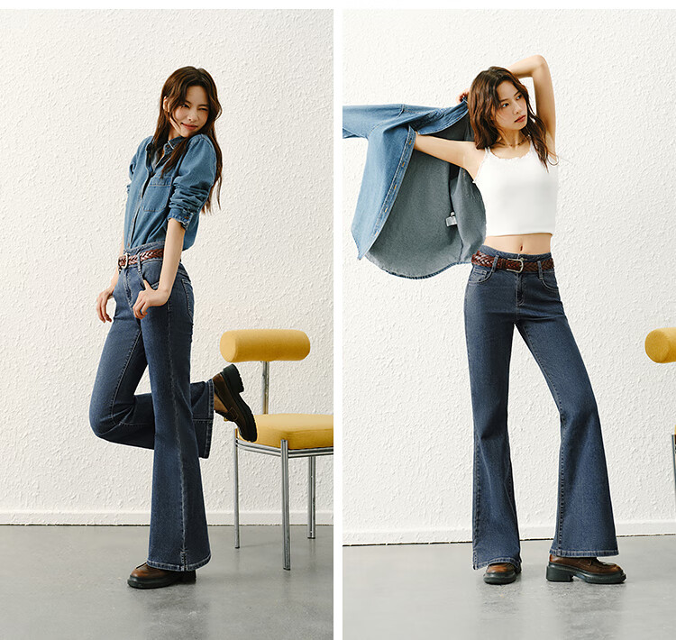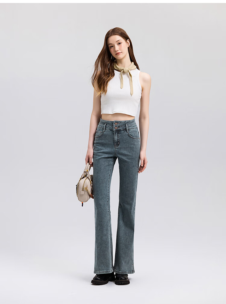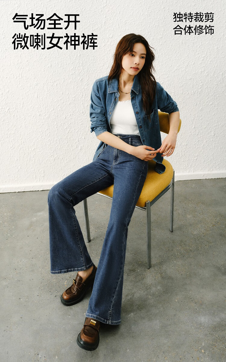 森马(Semir)小黑牛|牛仔裤女高腰开叉长裤2025春森柔牛仔喇叭裤109125124007