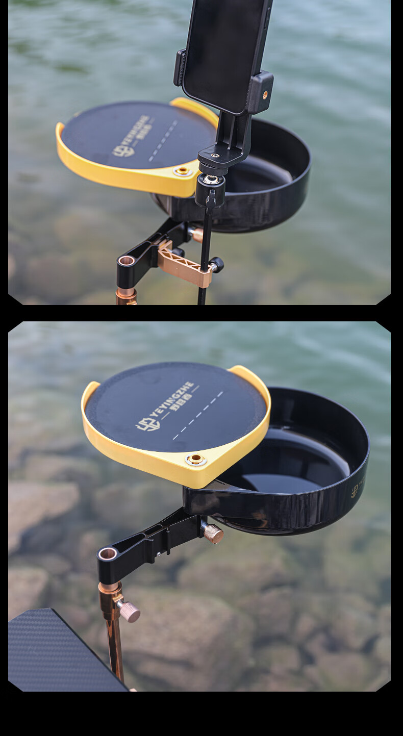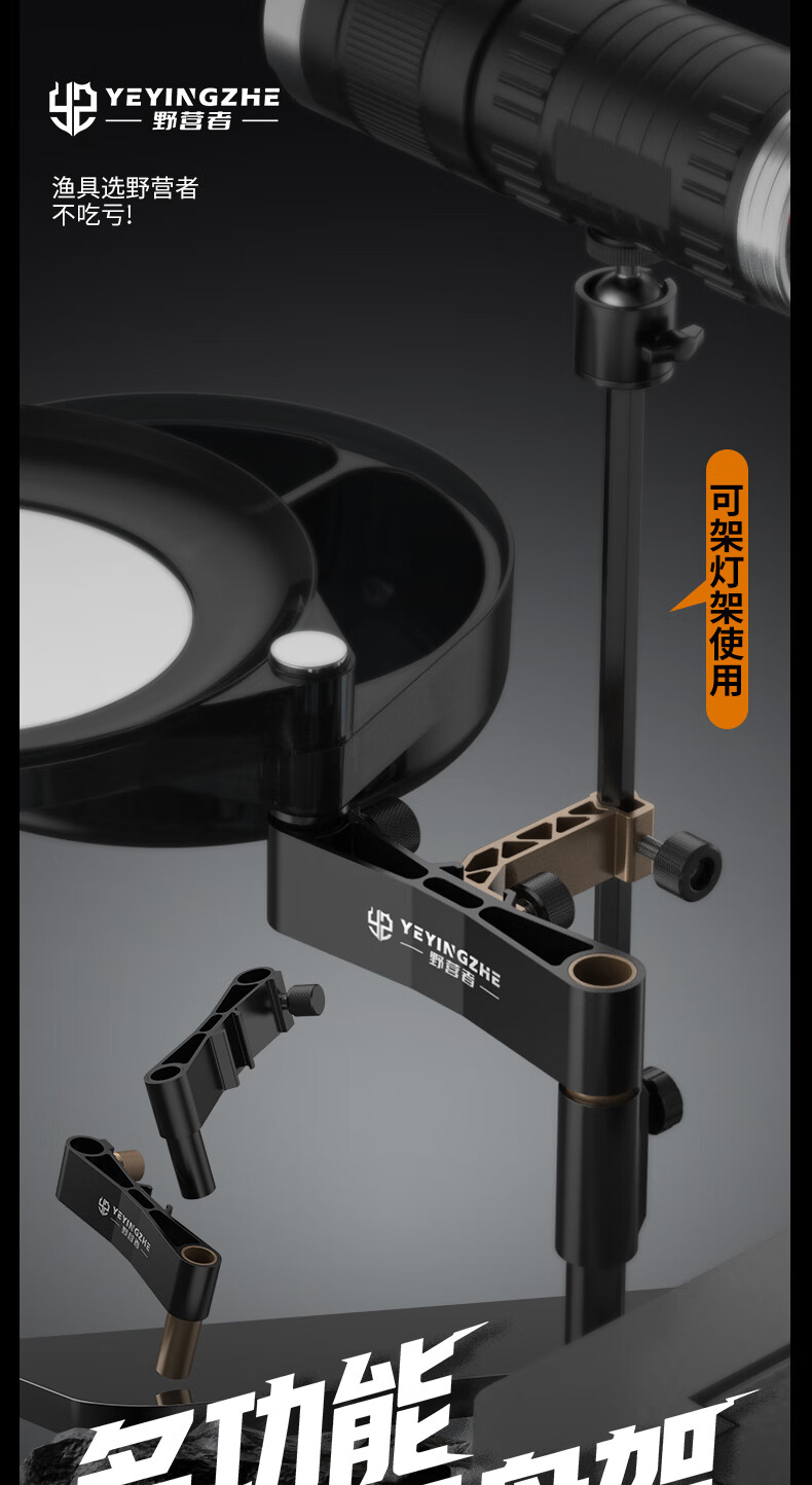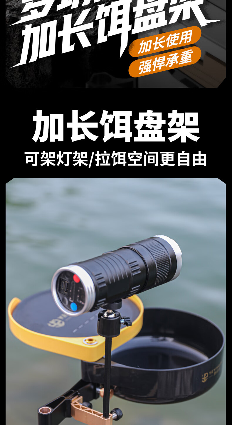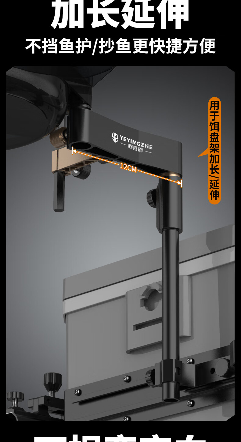 野营者加长饵盘架延长臂夜钓灯架加高拓展臂钓箱钓椅食盒架饵盒架 黑金-加长【饵盘架延长臂】+夜钓灯架+手机架